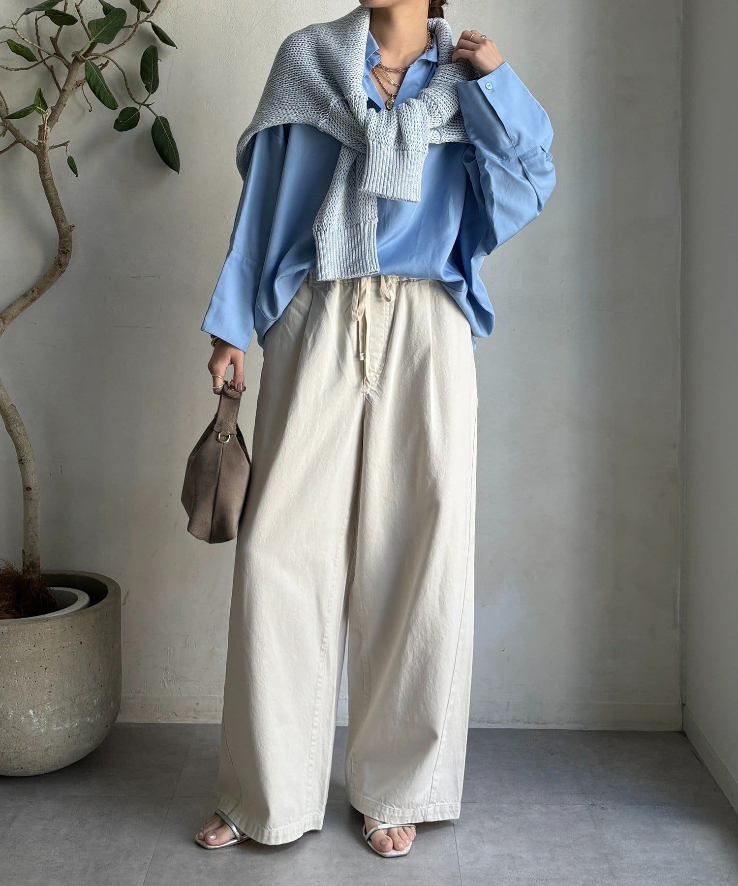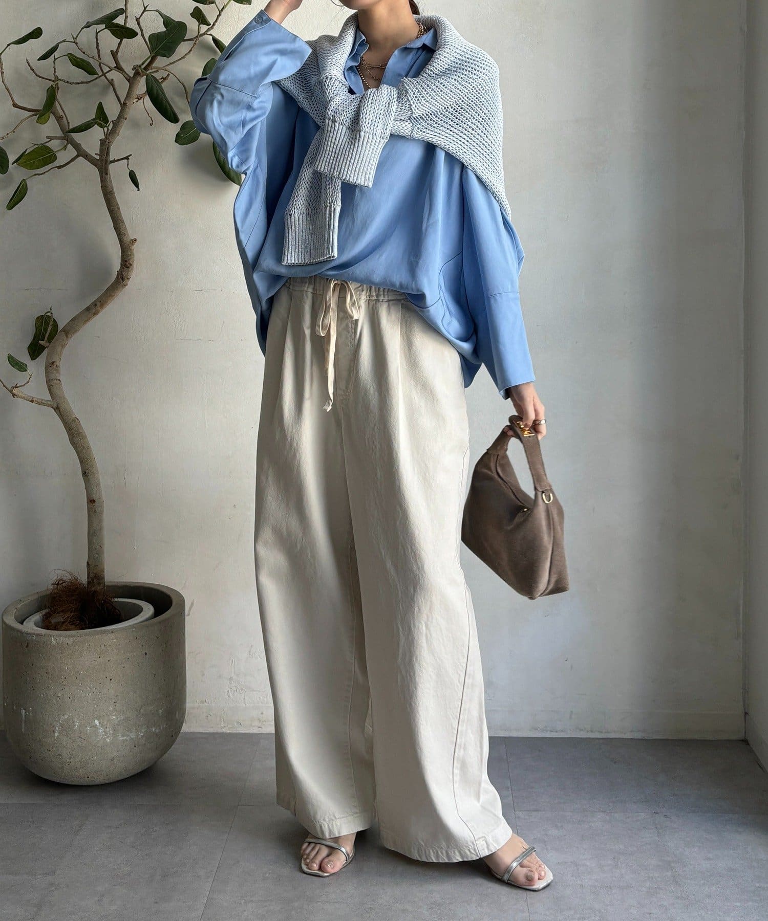 こなれ感のでる1着は、フロントの紐デザインもポイントに。