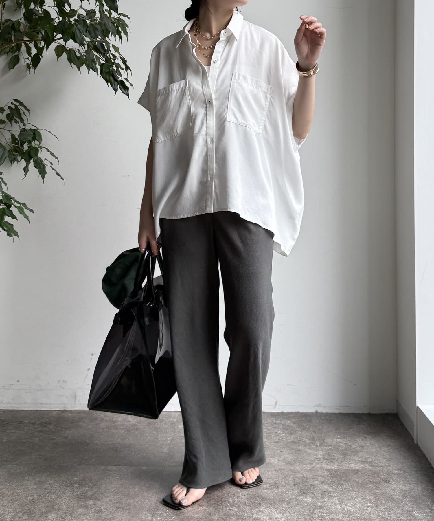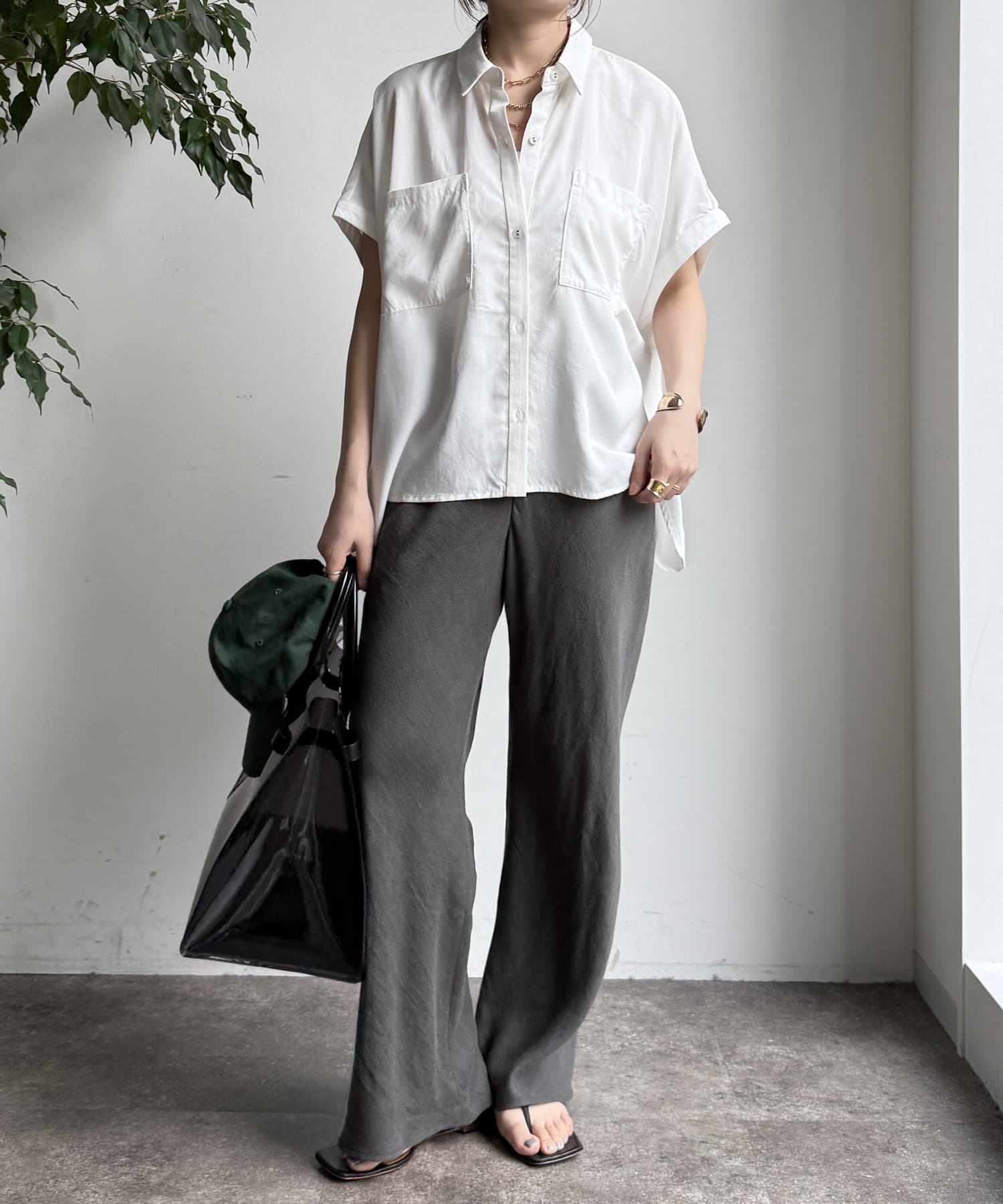 とろみのある質感は、肌に優しく上品な落ち感です。汗ばむ季節でも快適な着心地◎