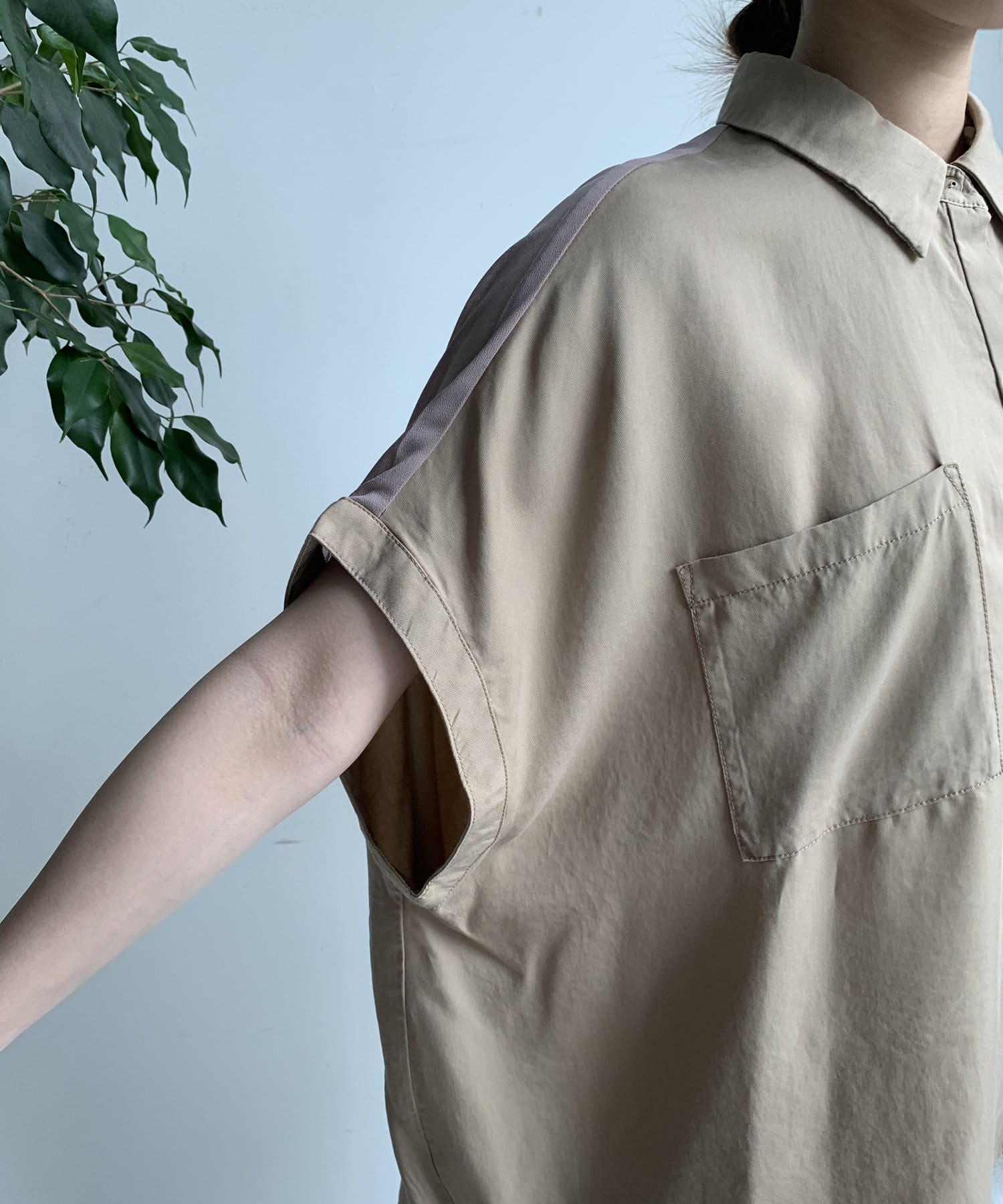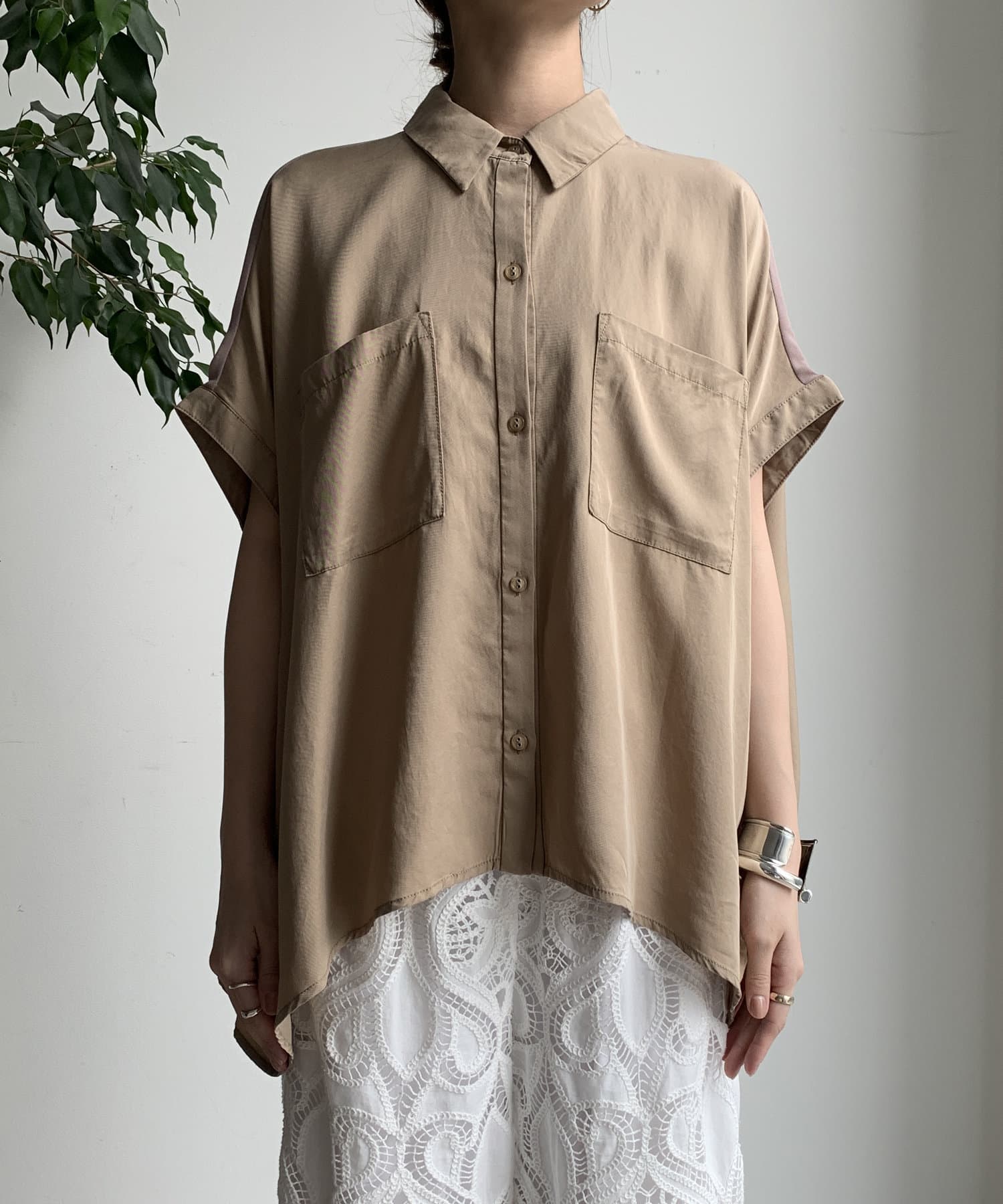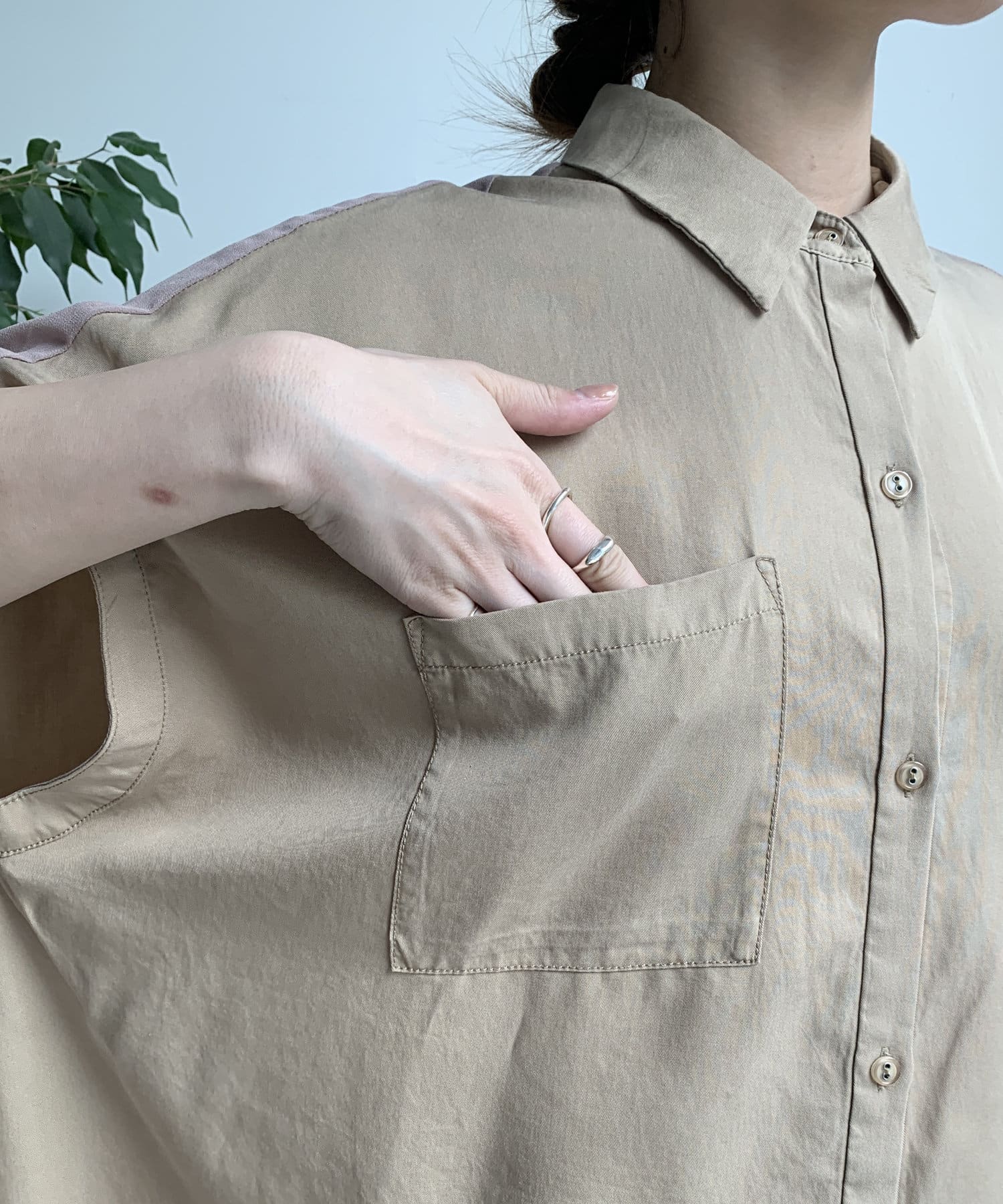 【WEB限定】リヨセル×ジョーゼット切替シャツ