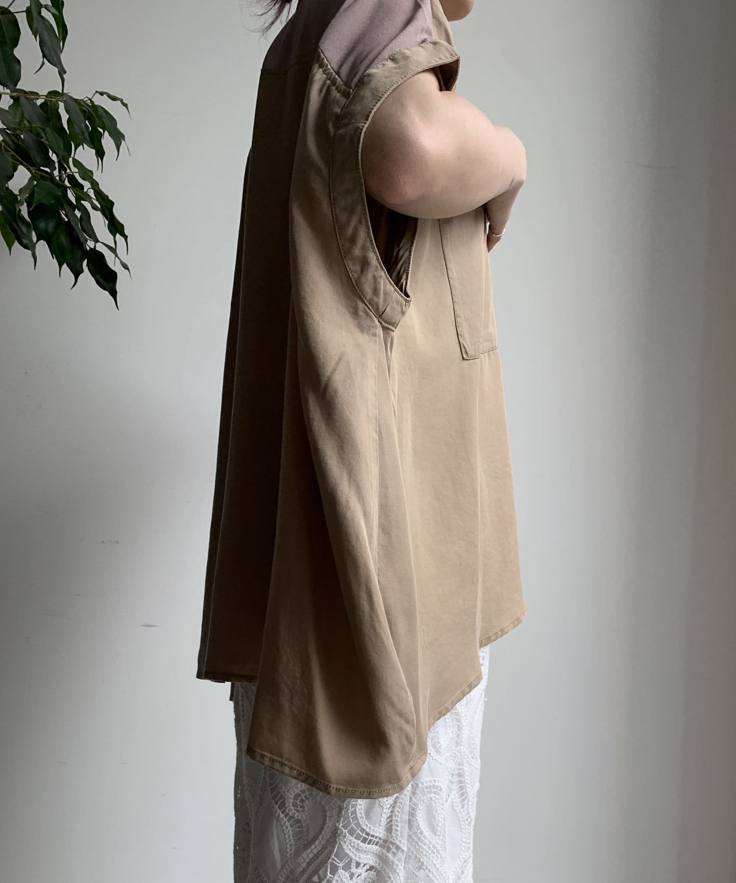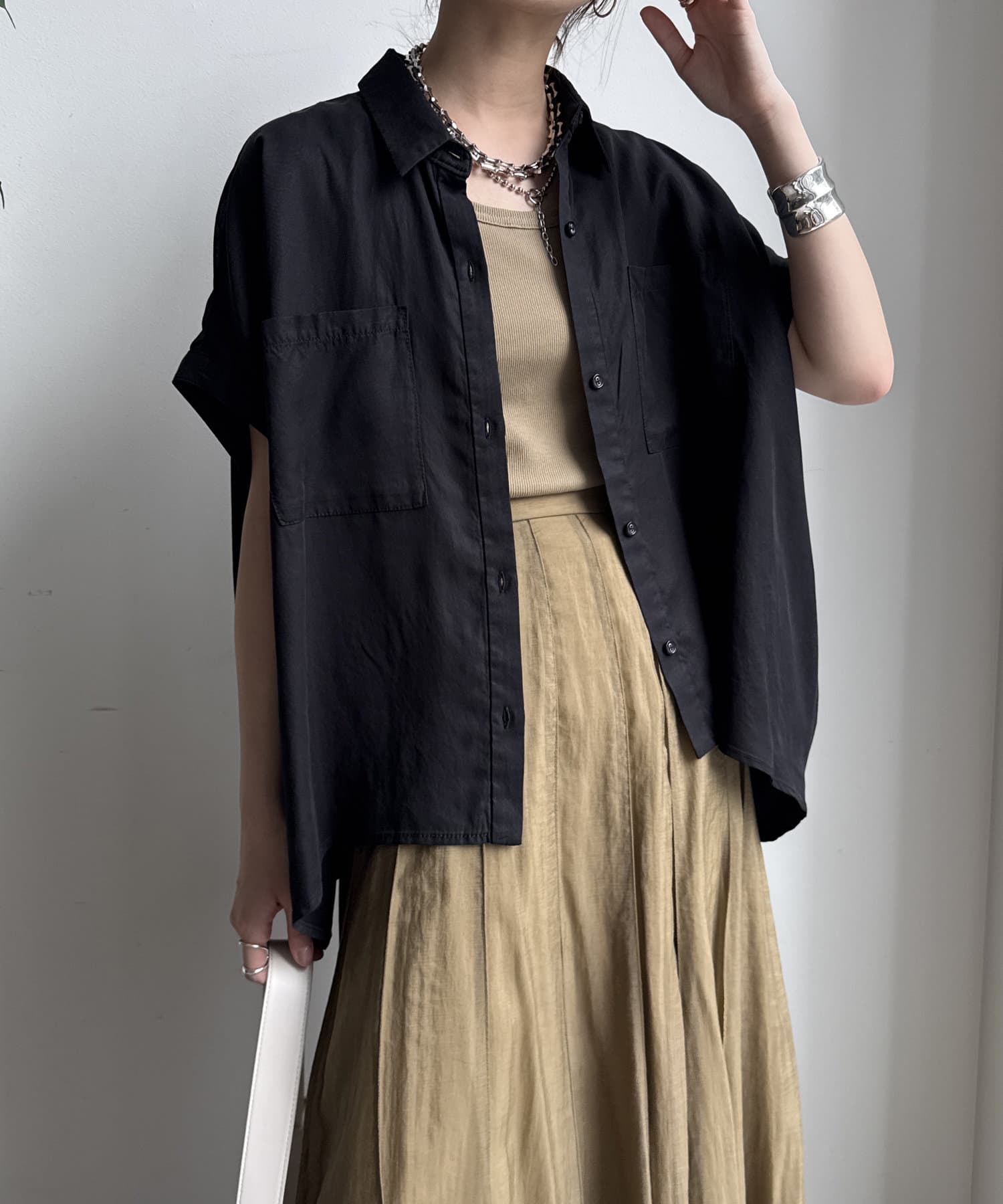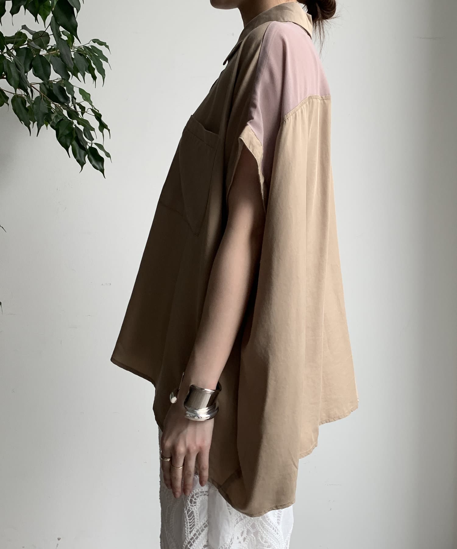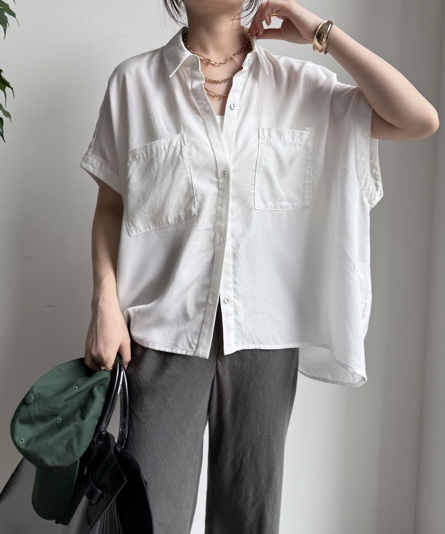 【WEB限定】リヨセル×ジョーゼット切替シャツ