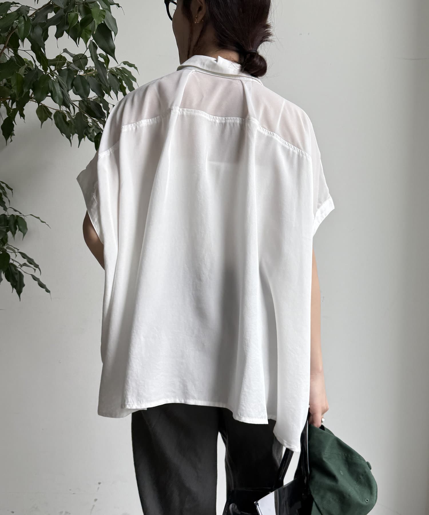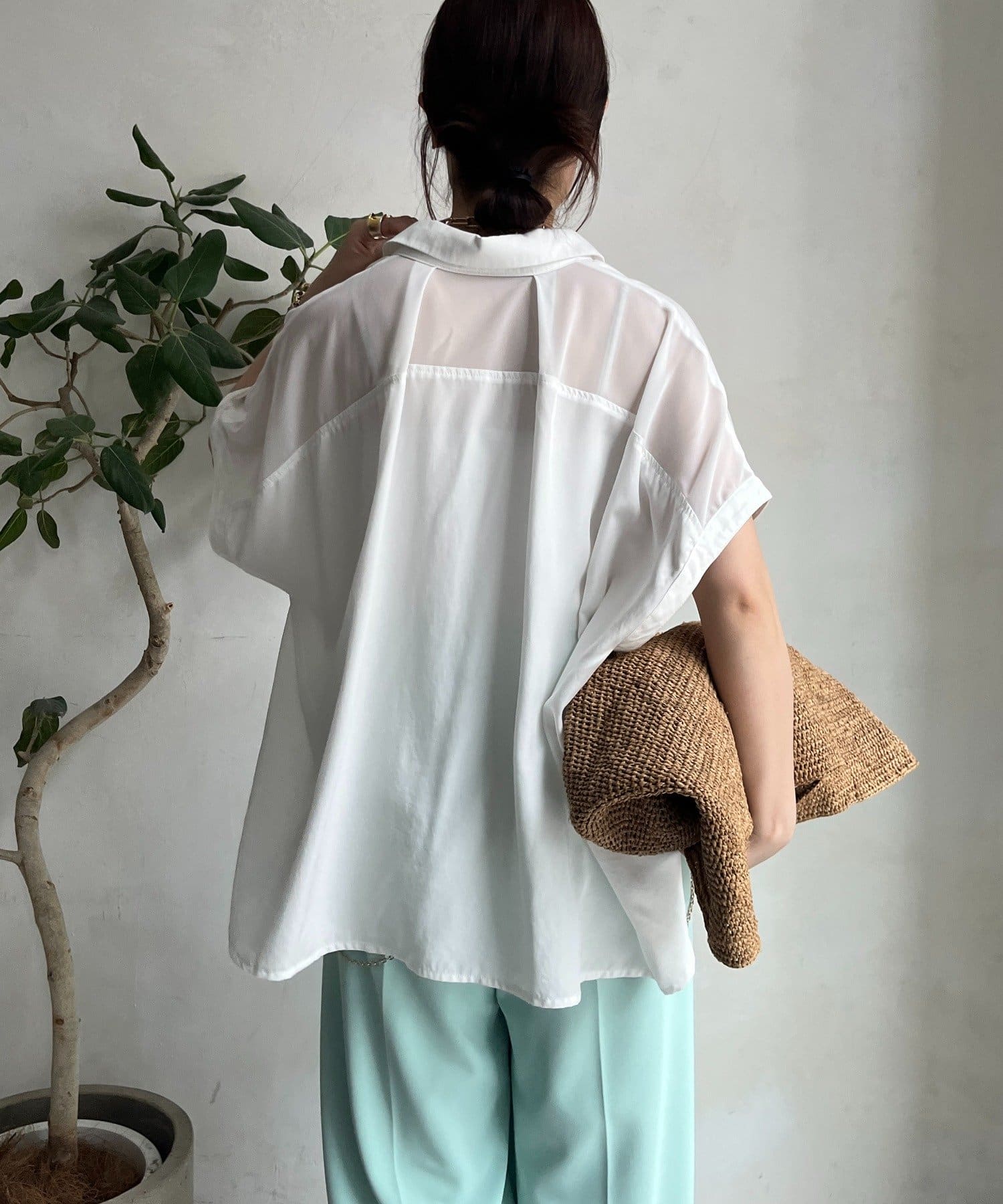 バックスタイルは、ヨーク部分に透け感のあるシアー素材の切り替え。