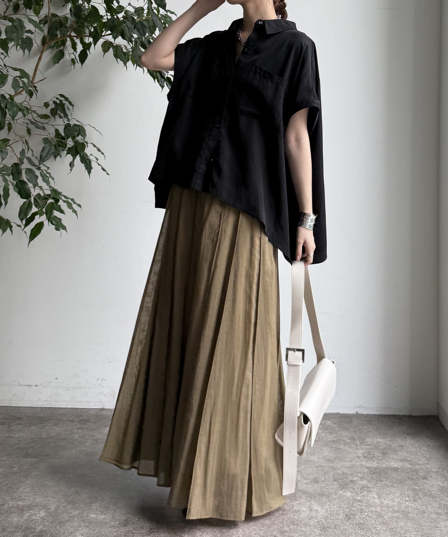このシアーな質感が、後ろ姿に軽やかさをプラス。涼しげで女性らしい印象に!