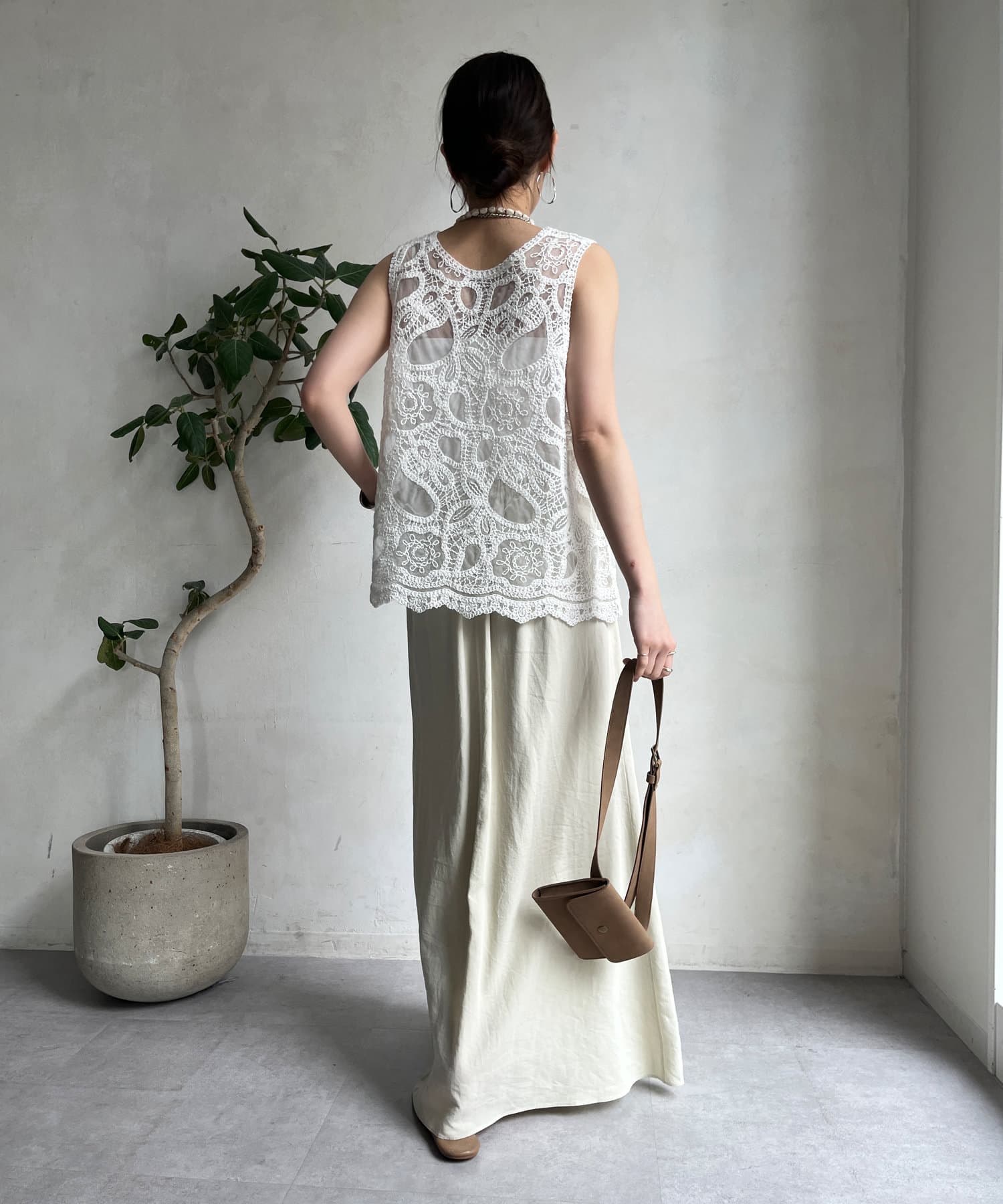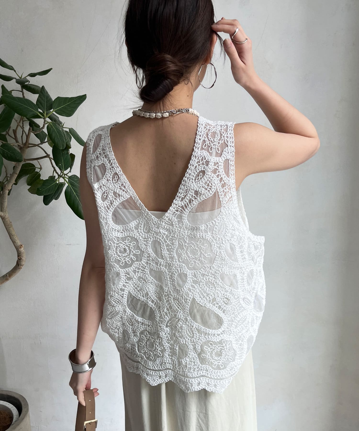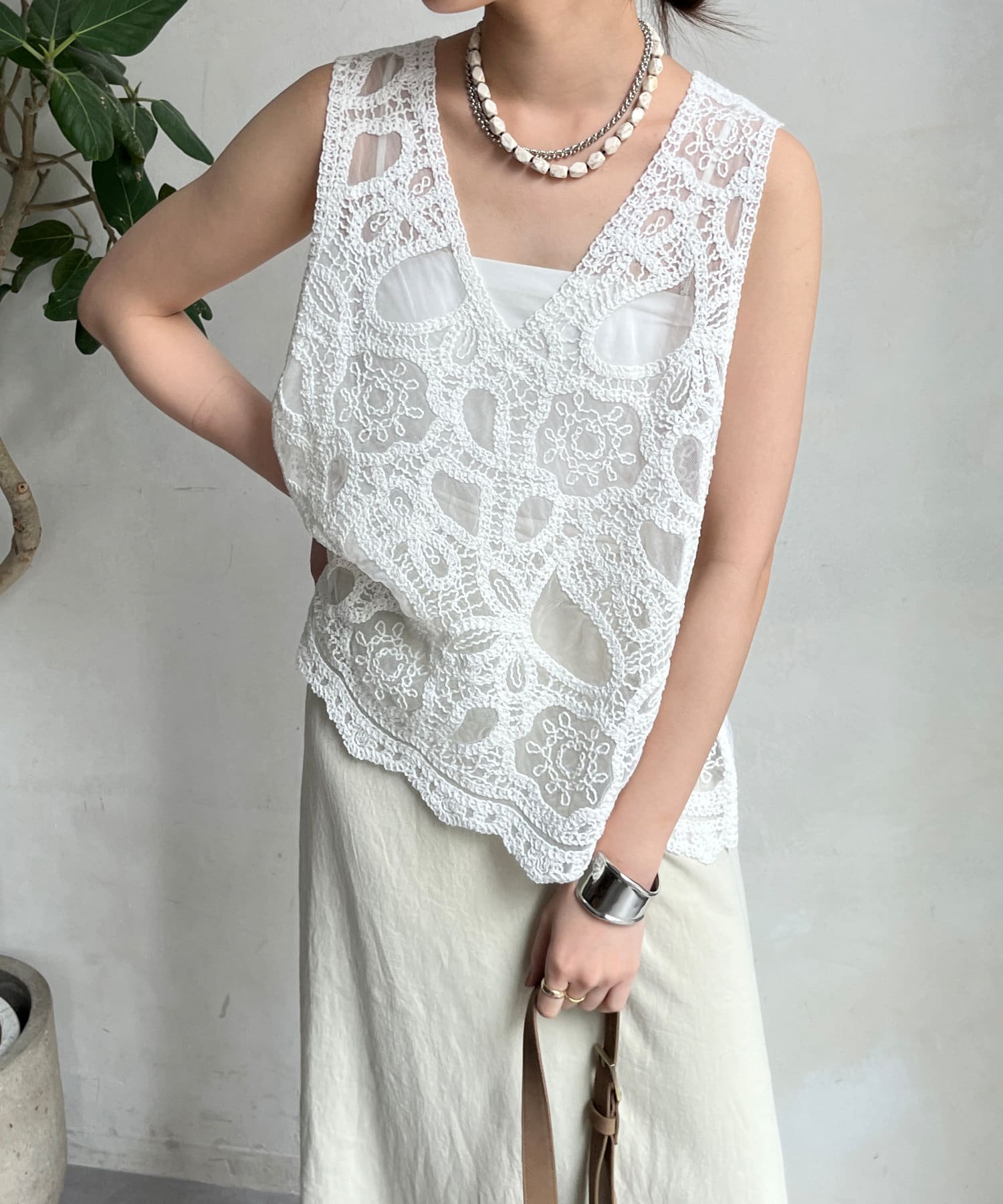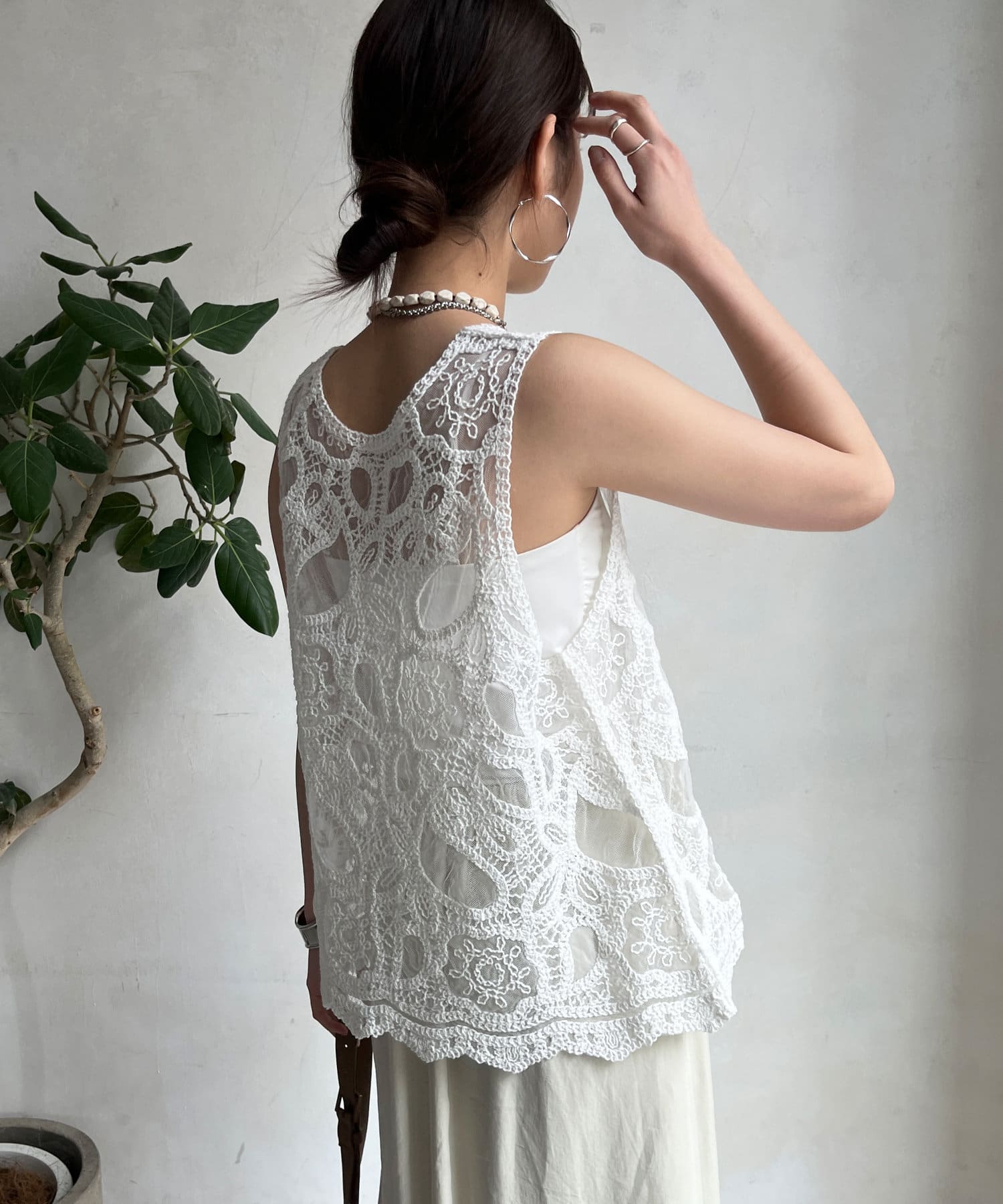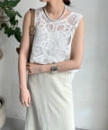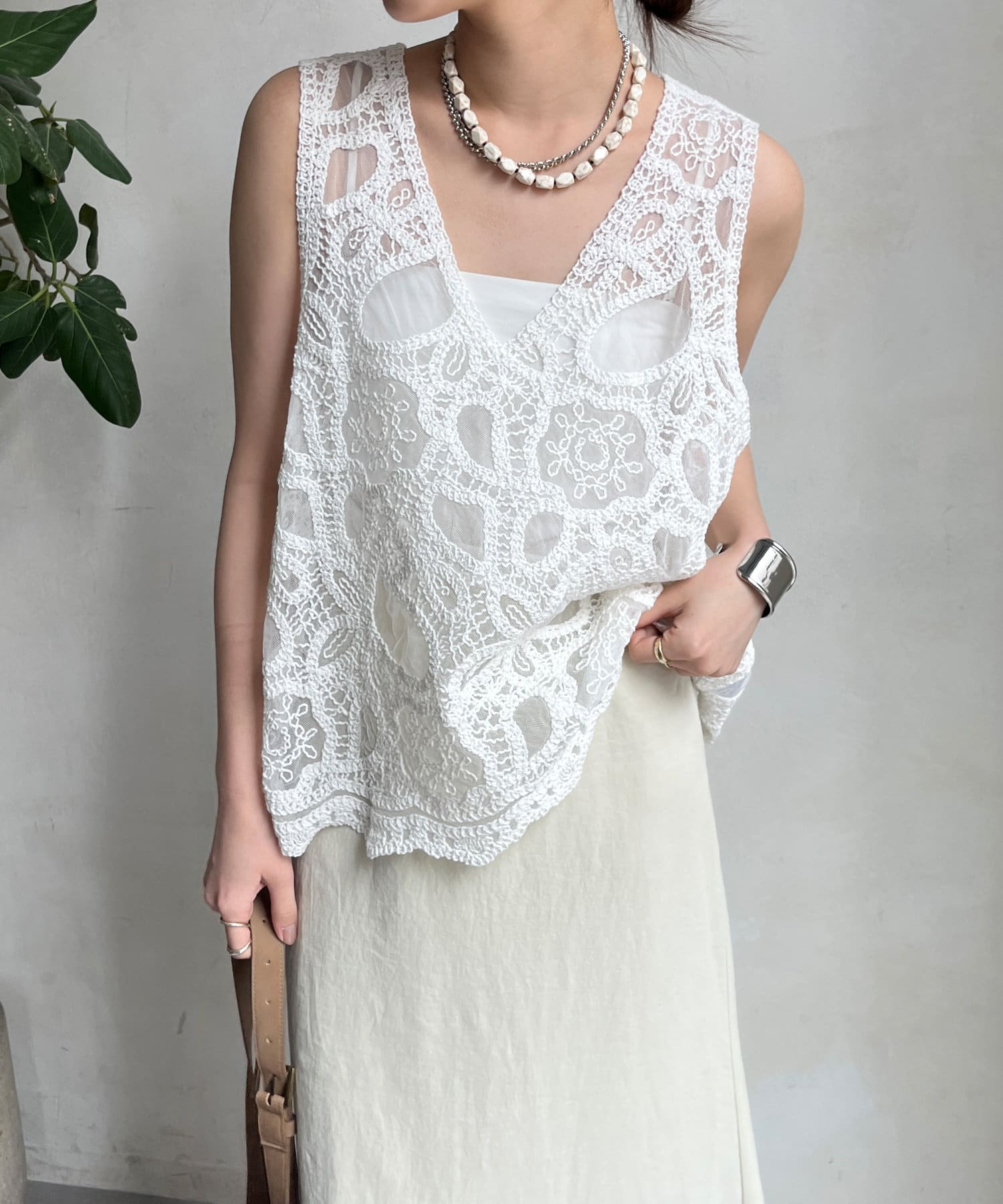 存在感のあるレースの素材がレディライクな主役級トップス。