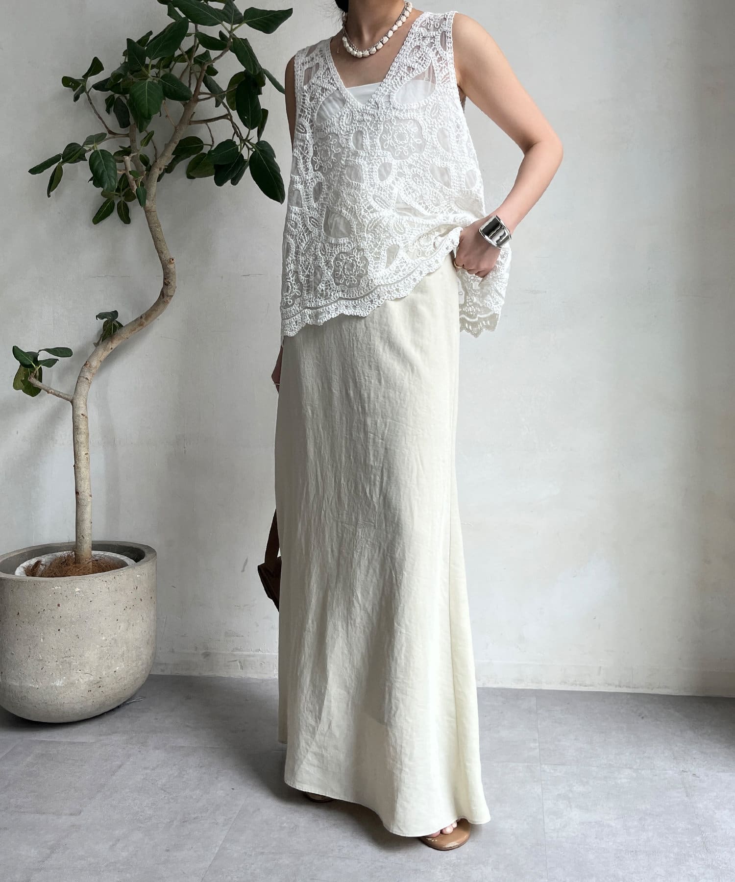 カジュアルなパンツや、レディライクなマーメイドスカートまで幅広く着こなしていただけますよ。