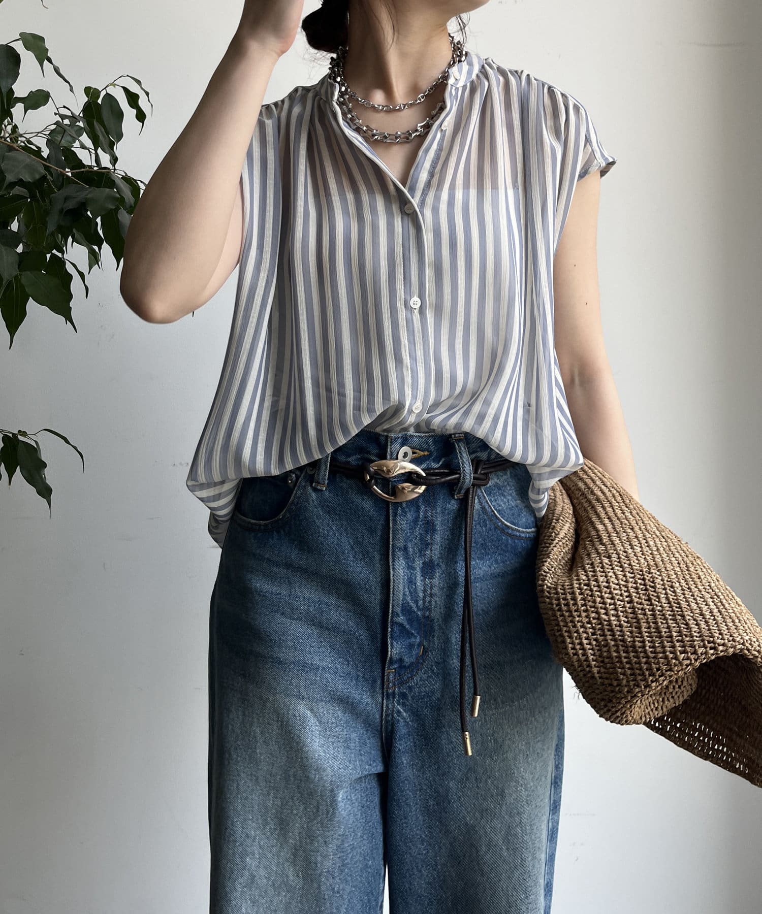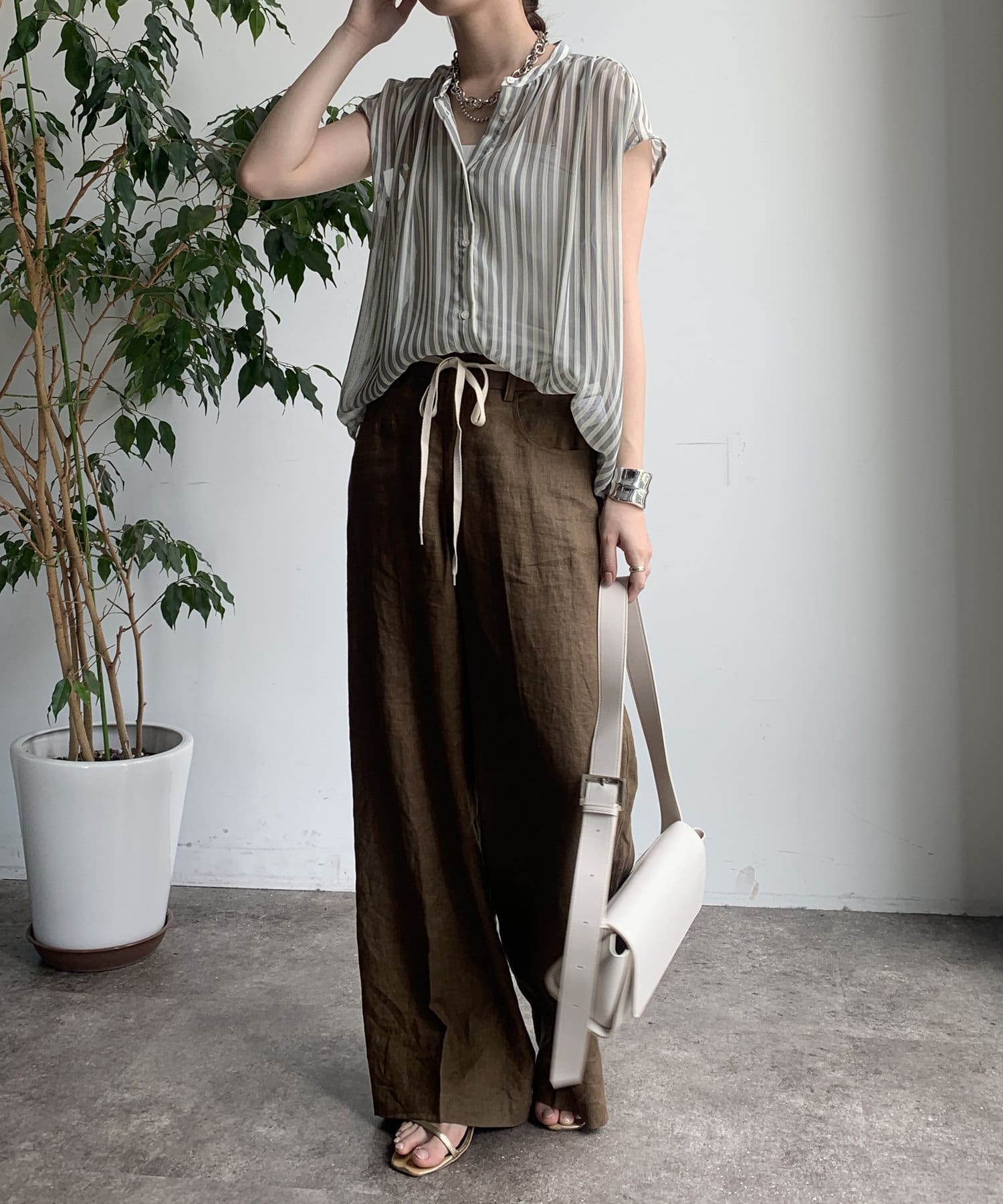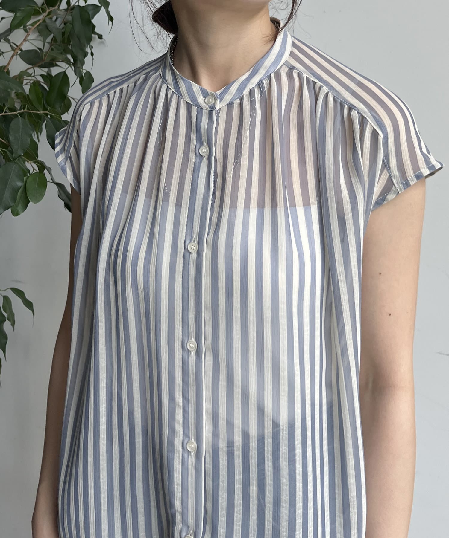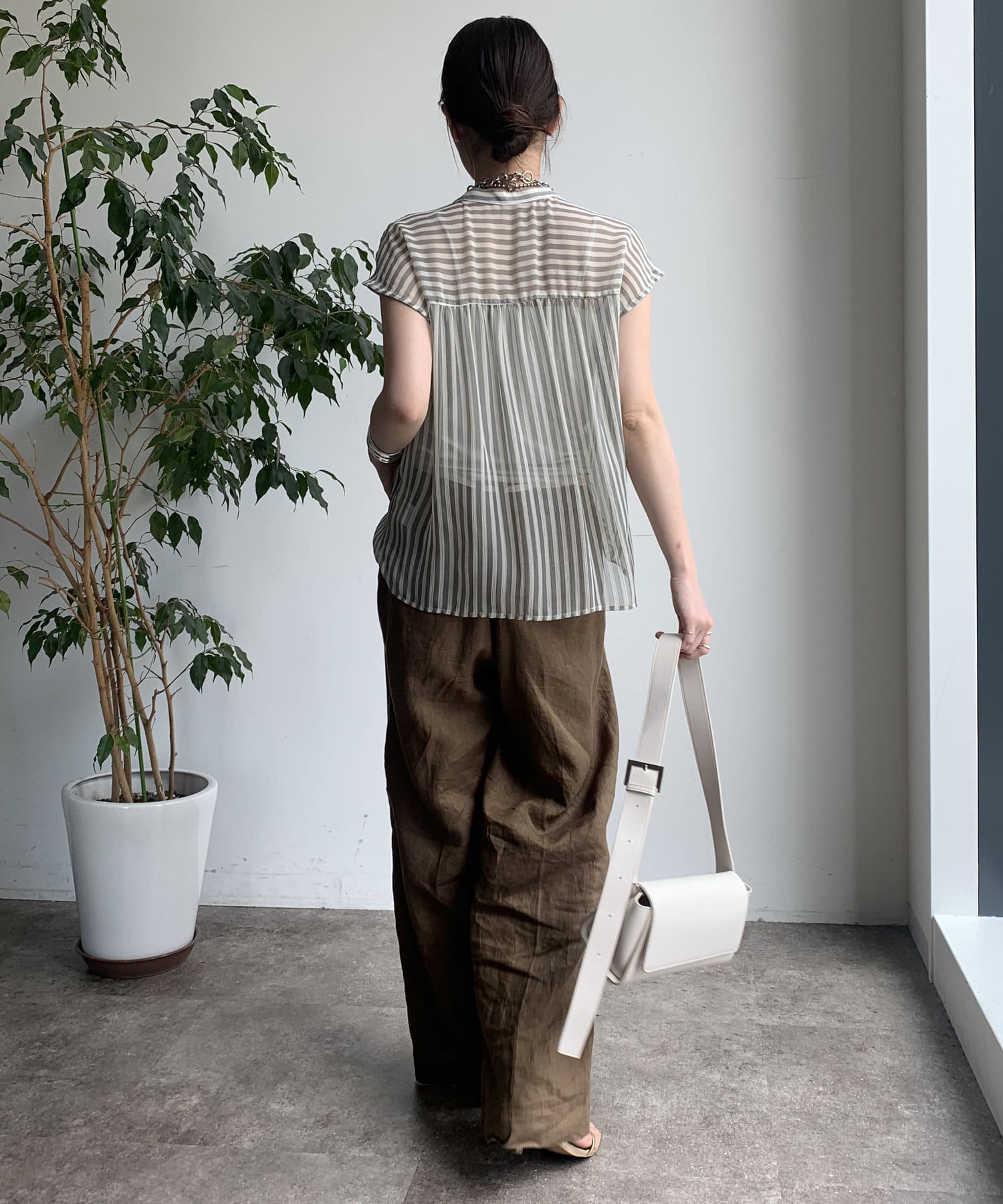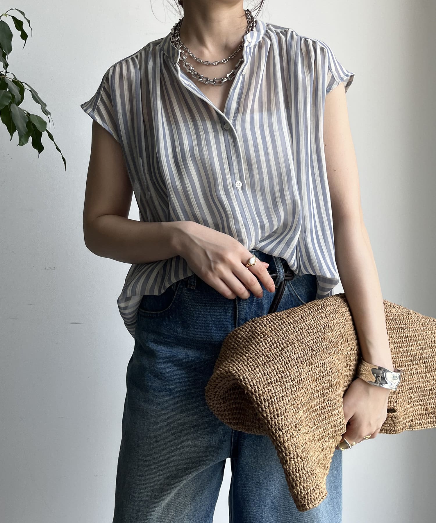 涼やかで洗練された夏スタイル楊柳ストライプシャツ