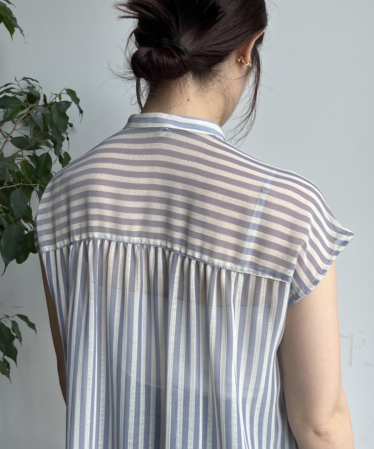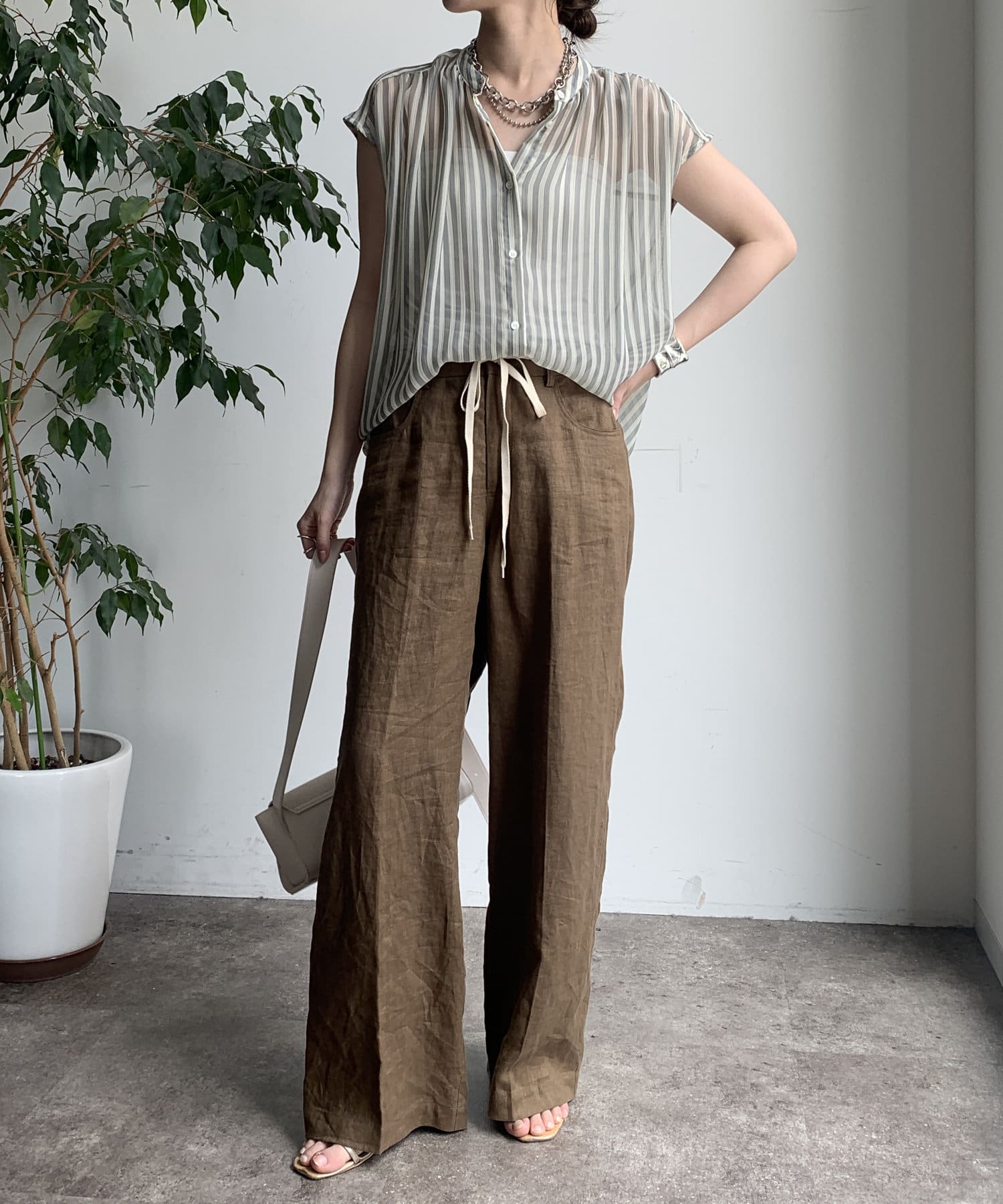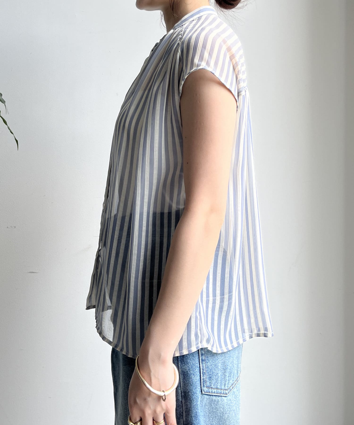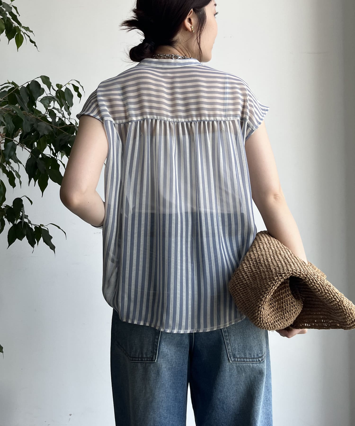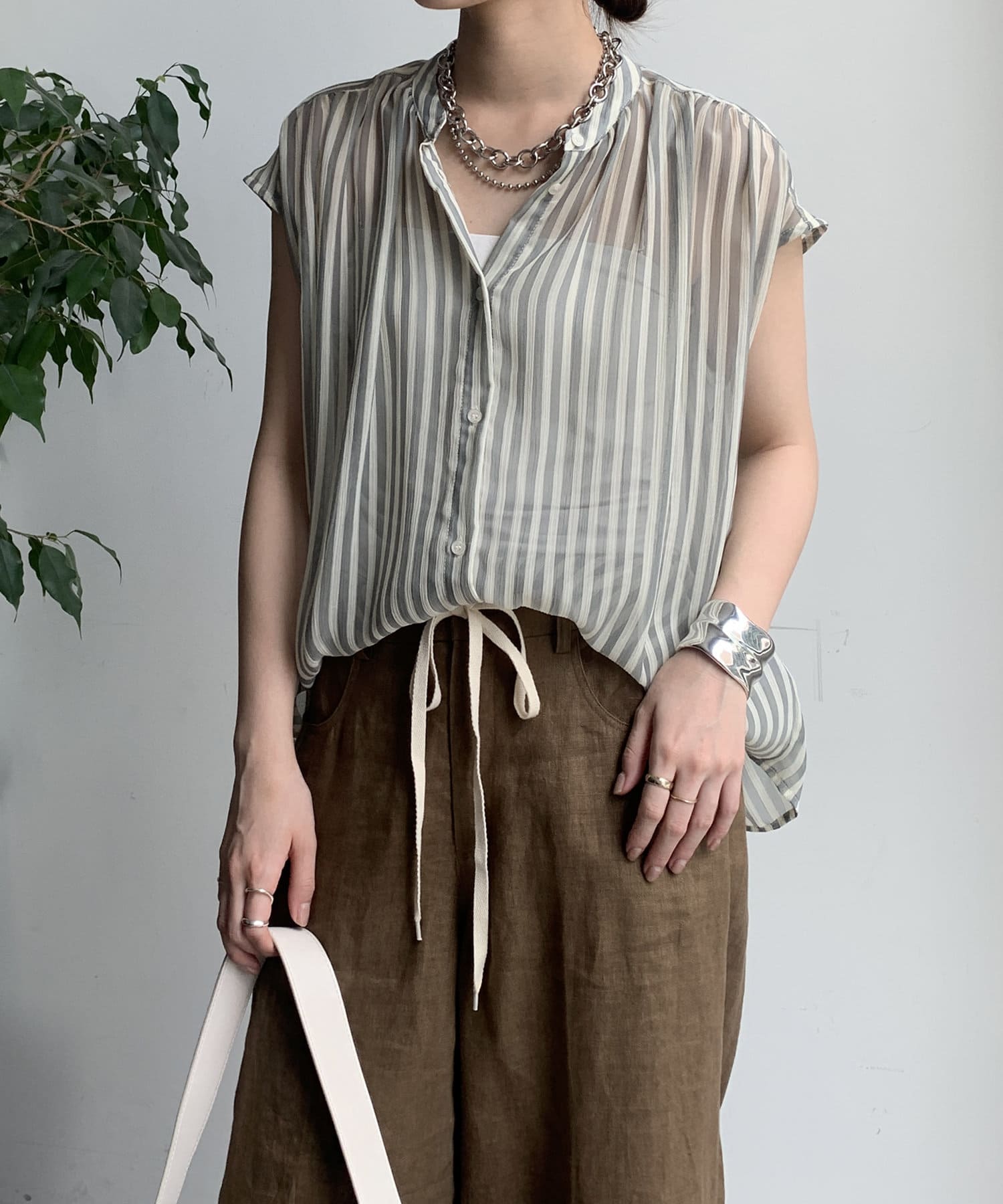 涼やかで洗練された夏スタイル楊柳ストライプシャツ