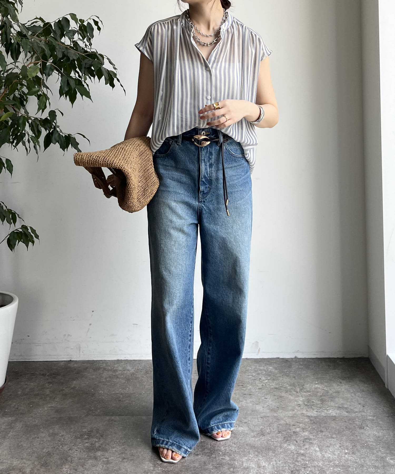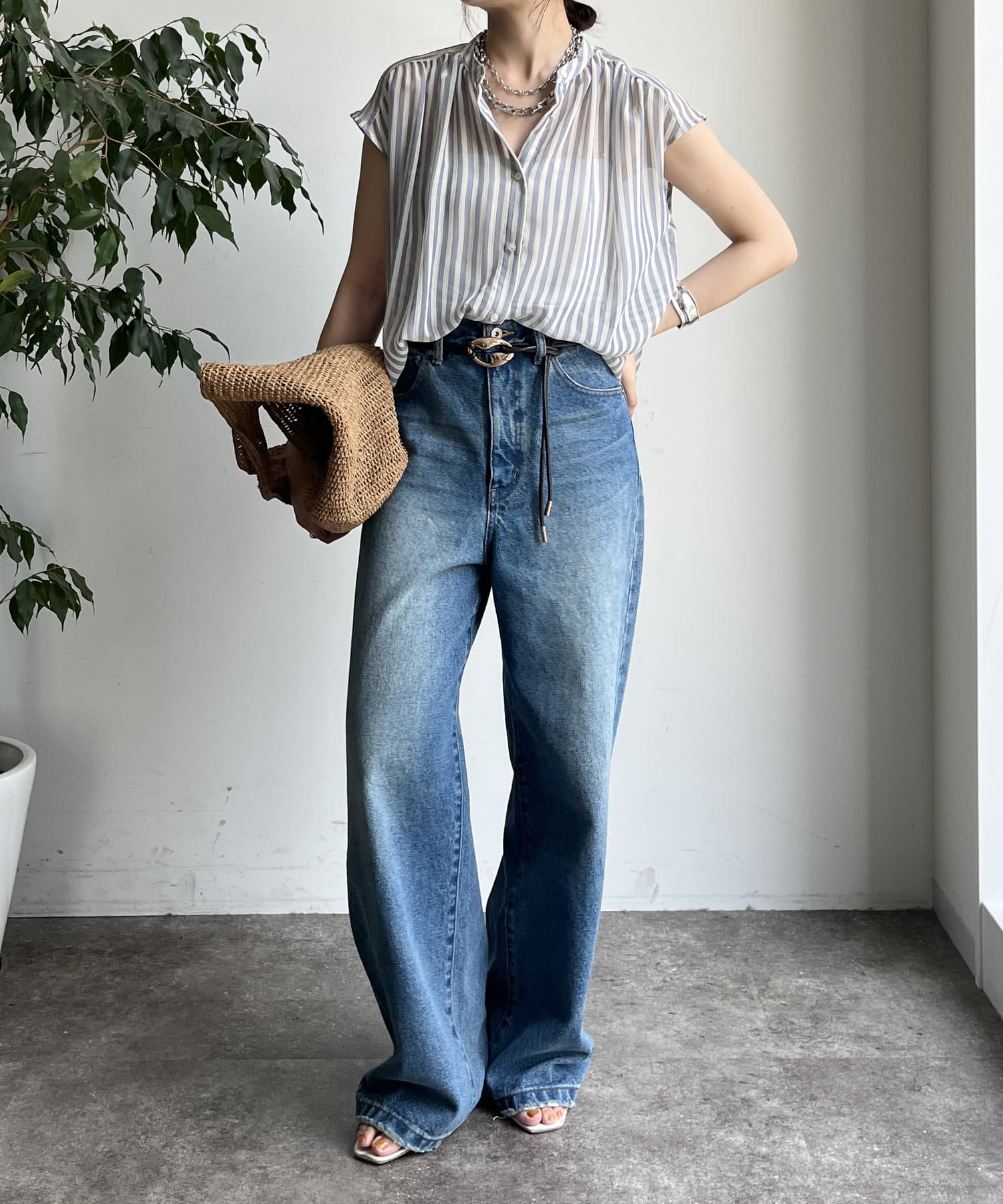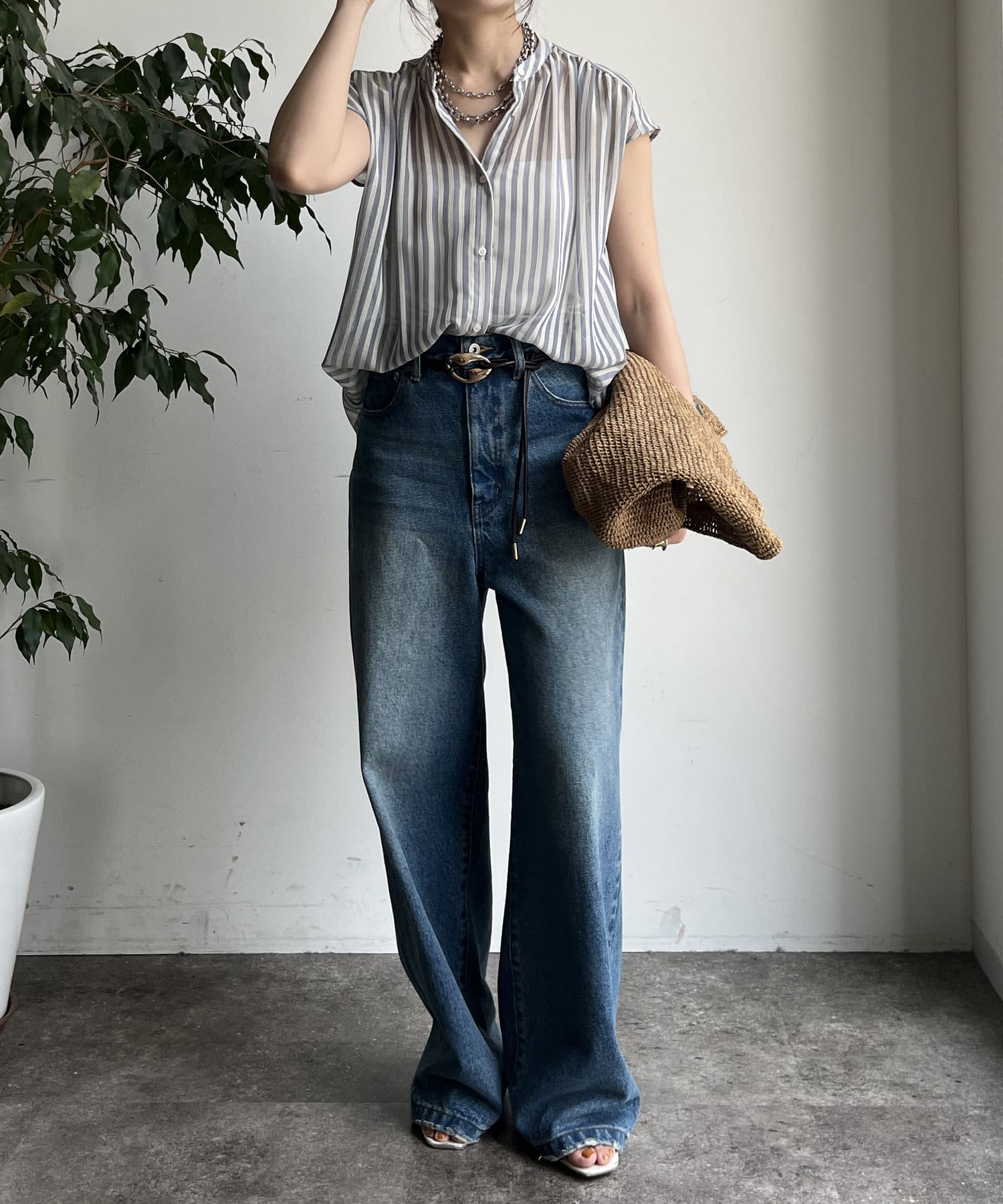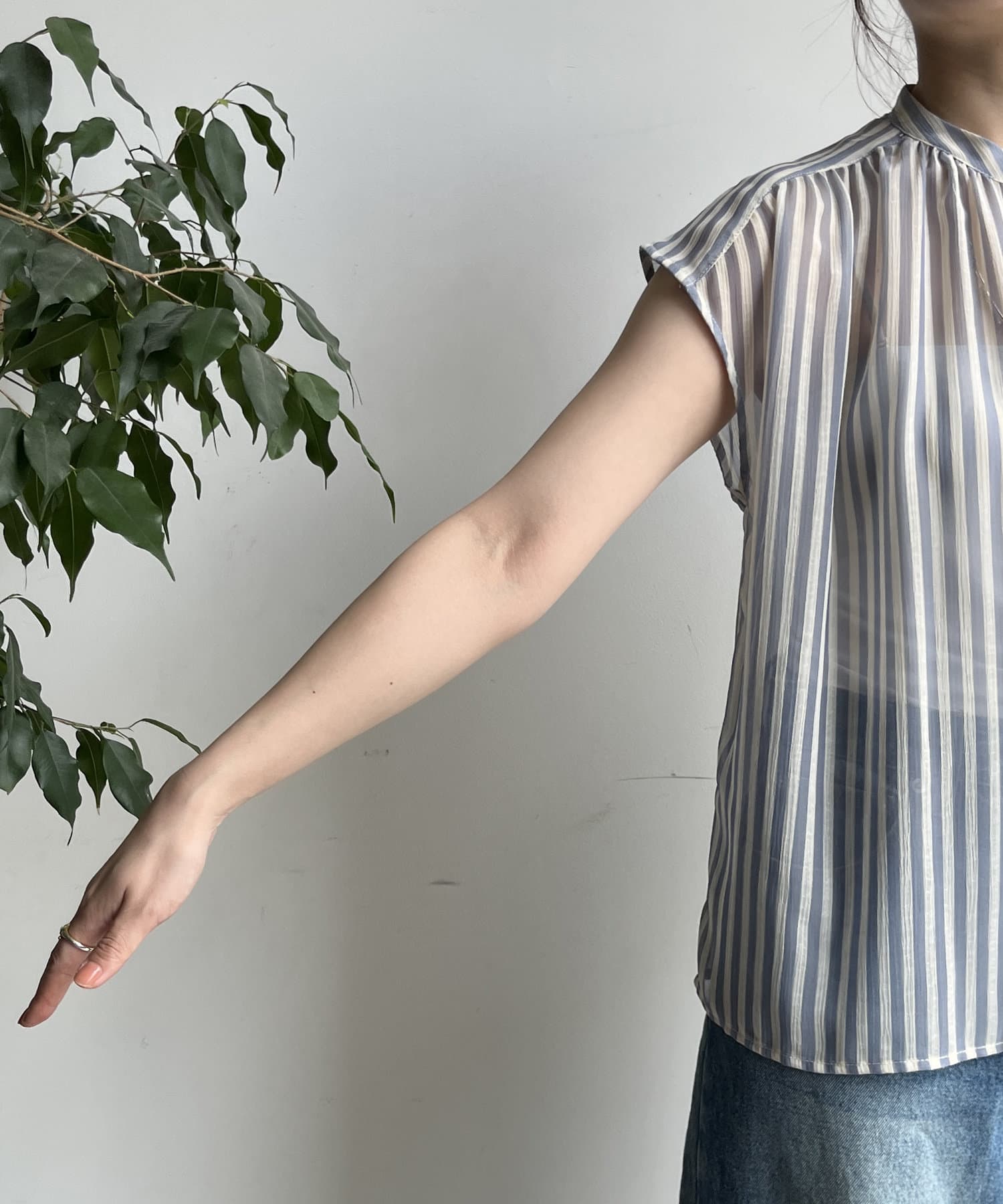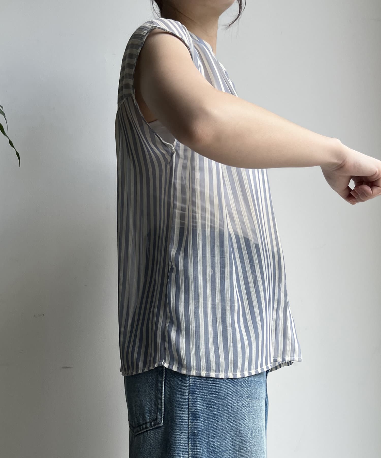涼やかで洗練された夏スタイル楊柳ストライプシャツ
