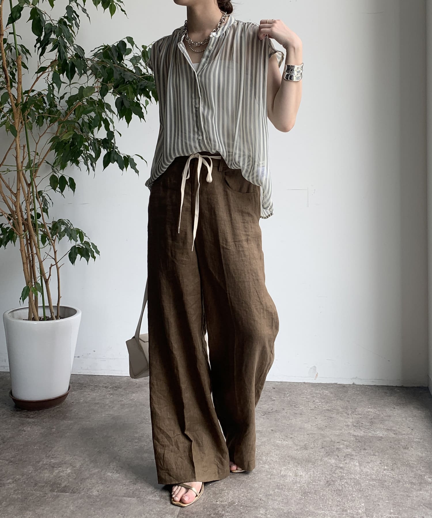 楊柳素材特有のシボ感が、肌にまとわりつかず、さらりとした着心地を実現。
