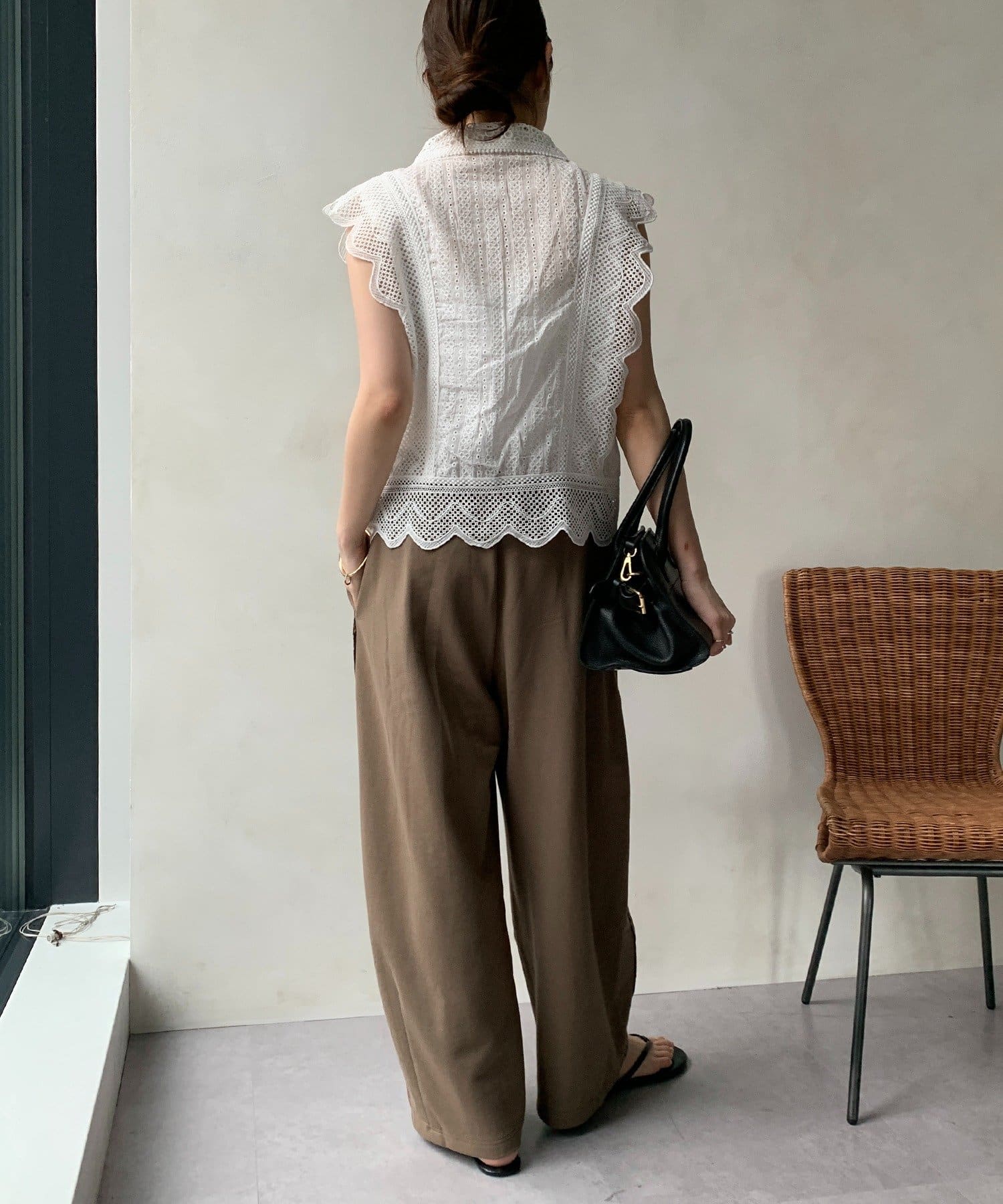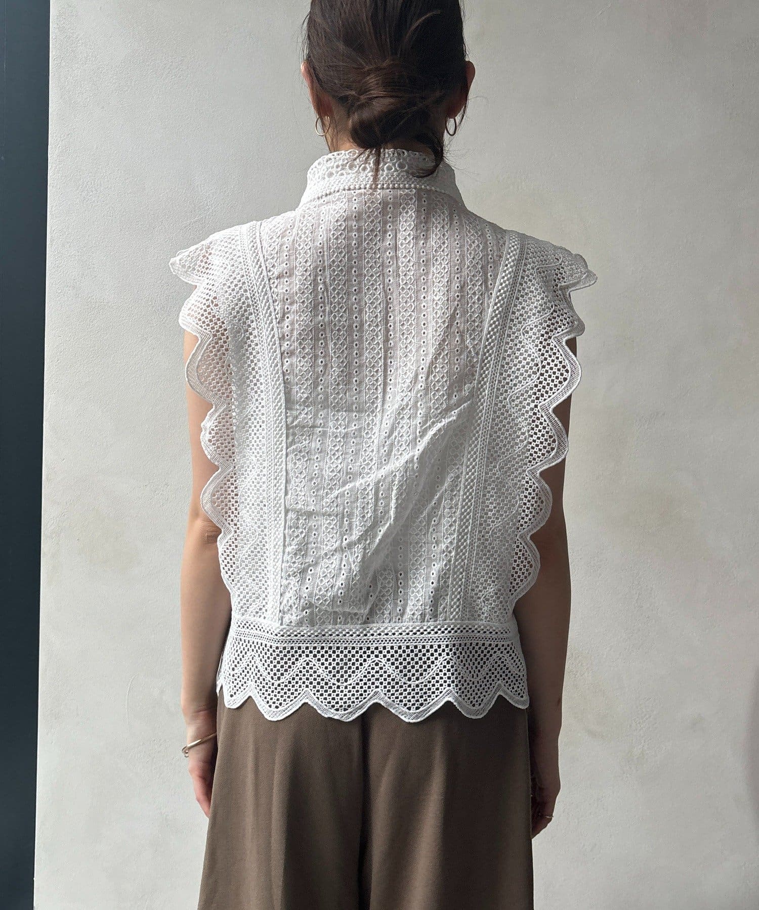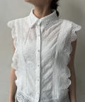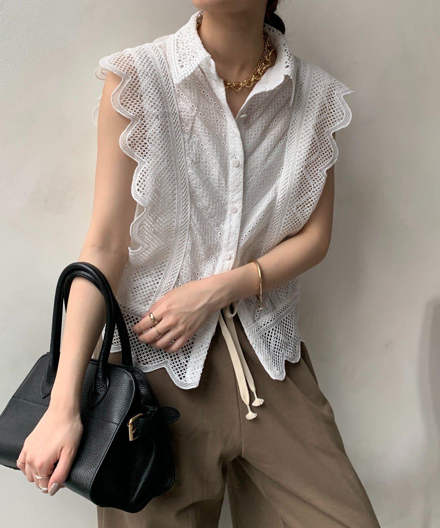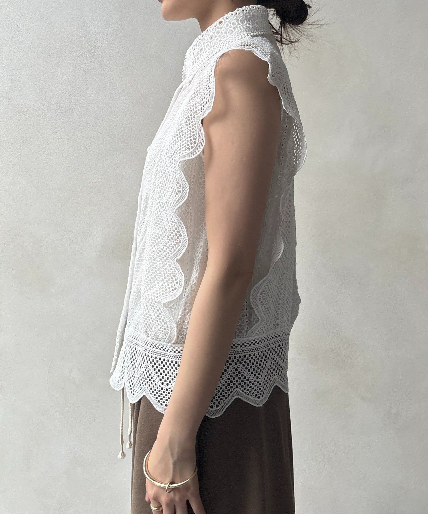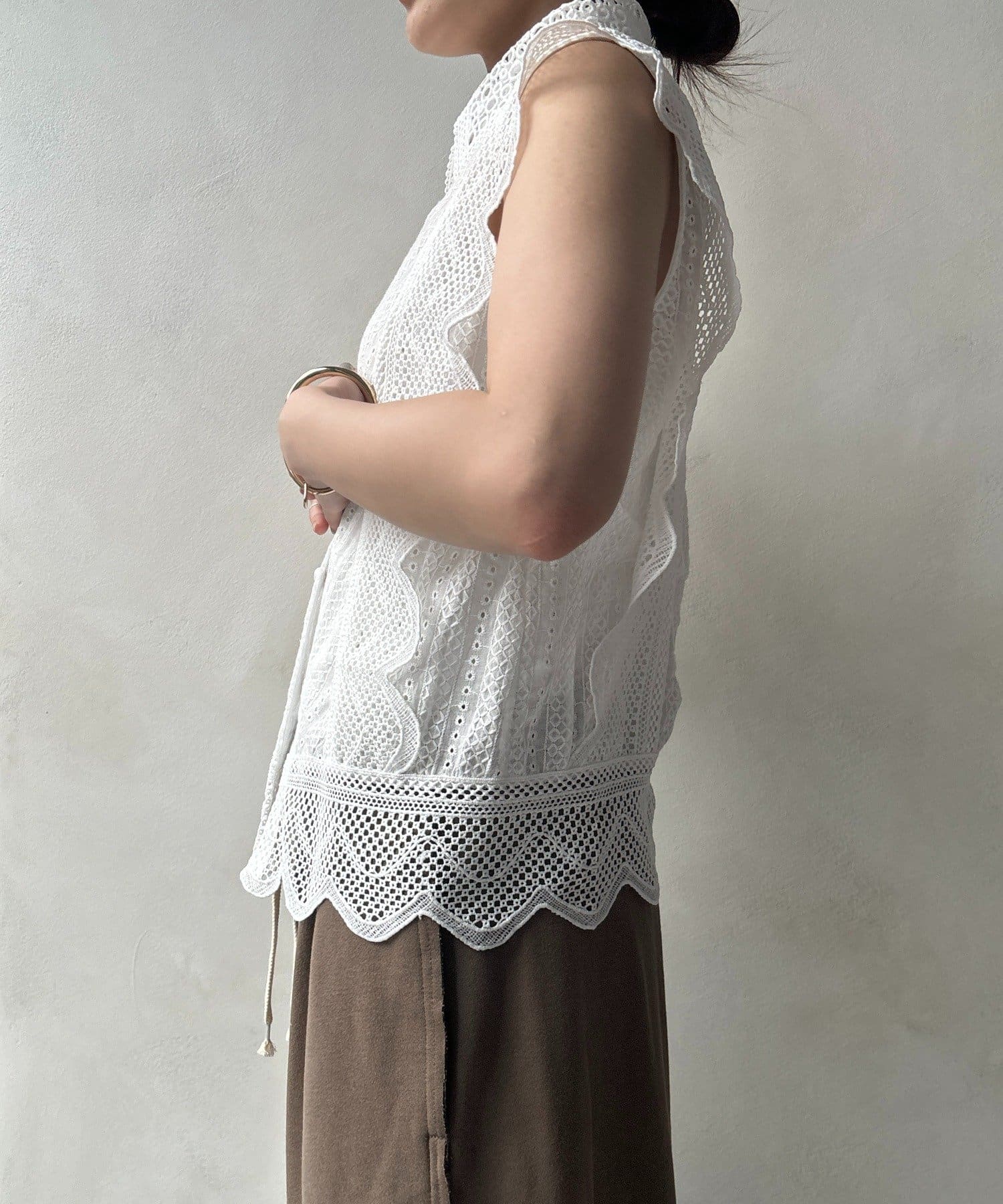 繊細なレース使いが目を引く、大人の女性のための上品なタンクトップブラウスです。