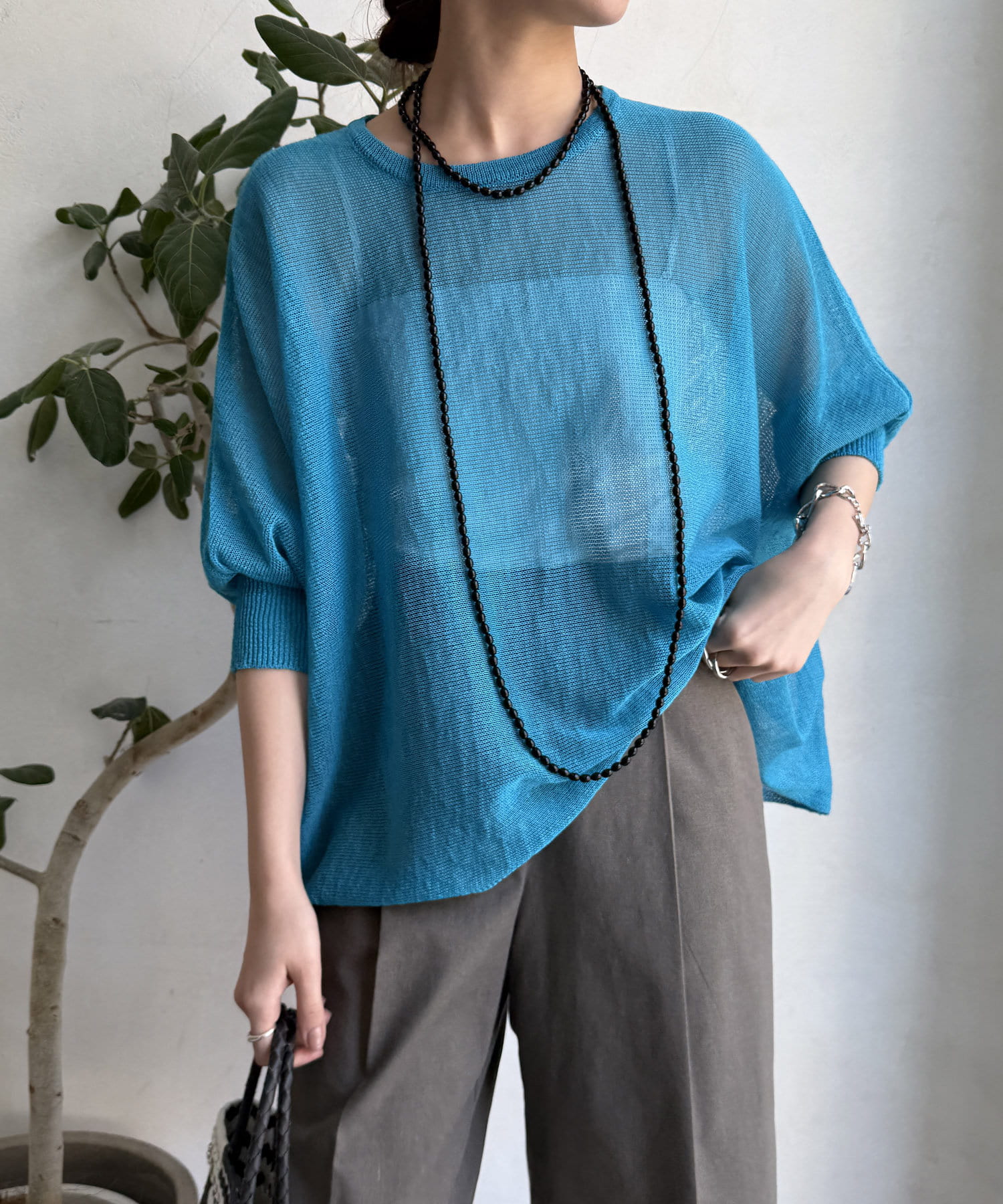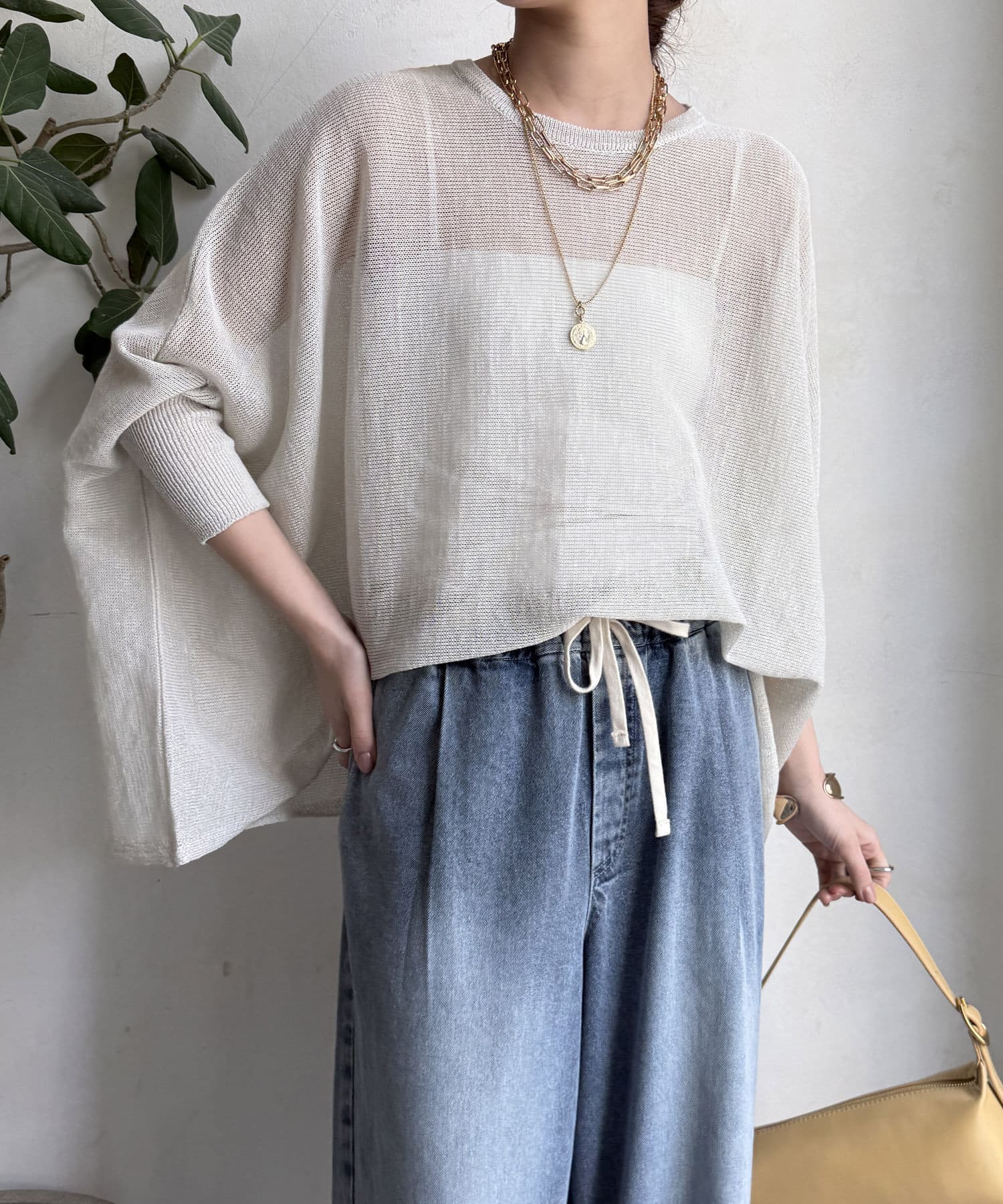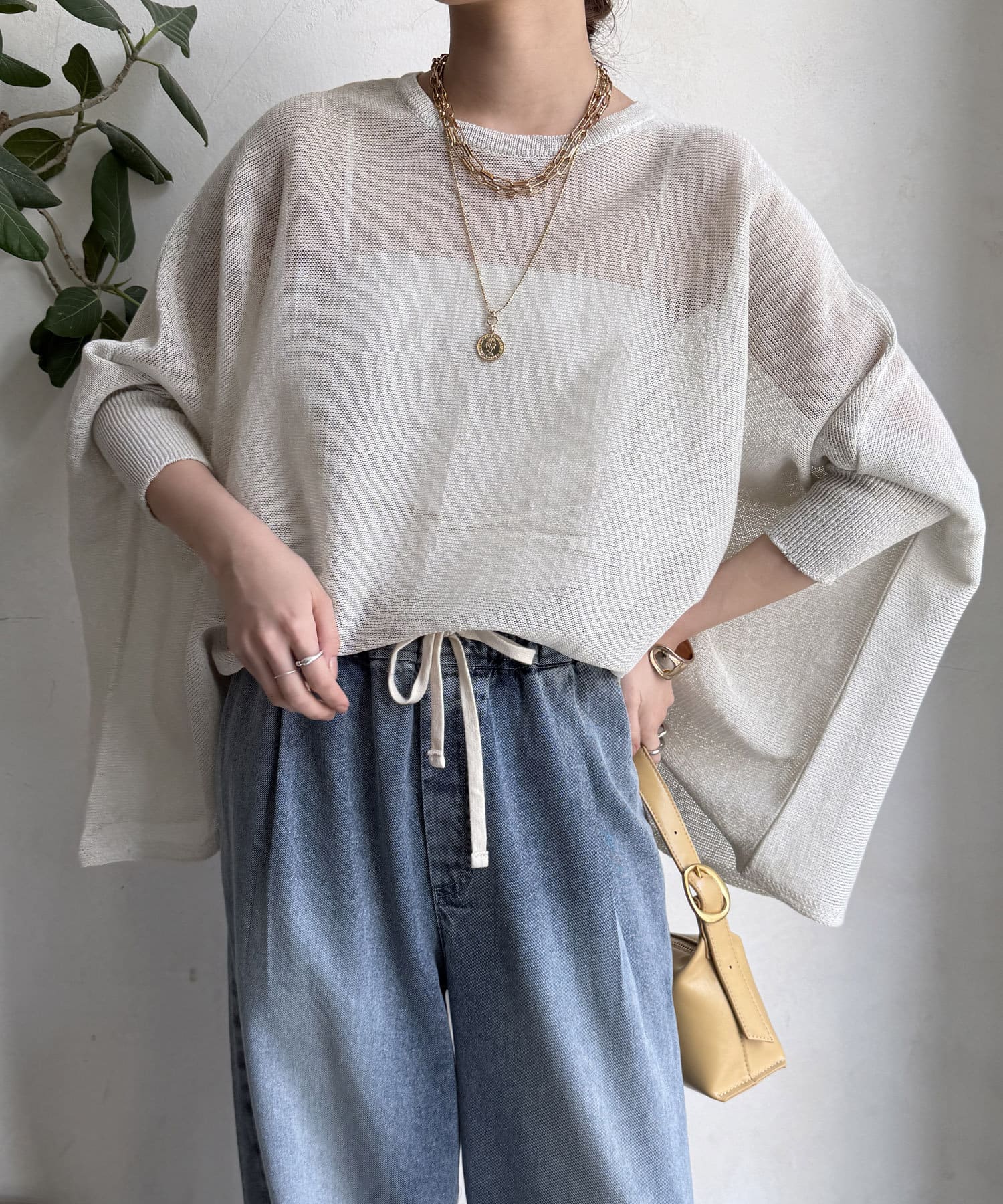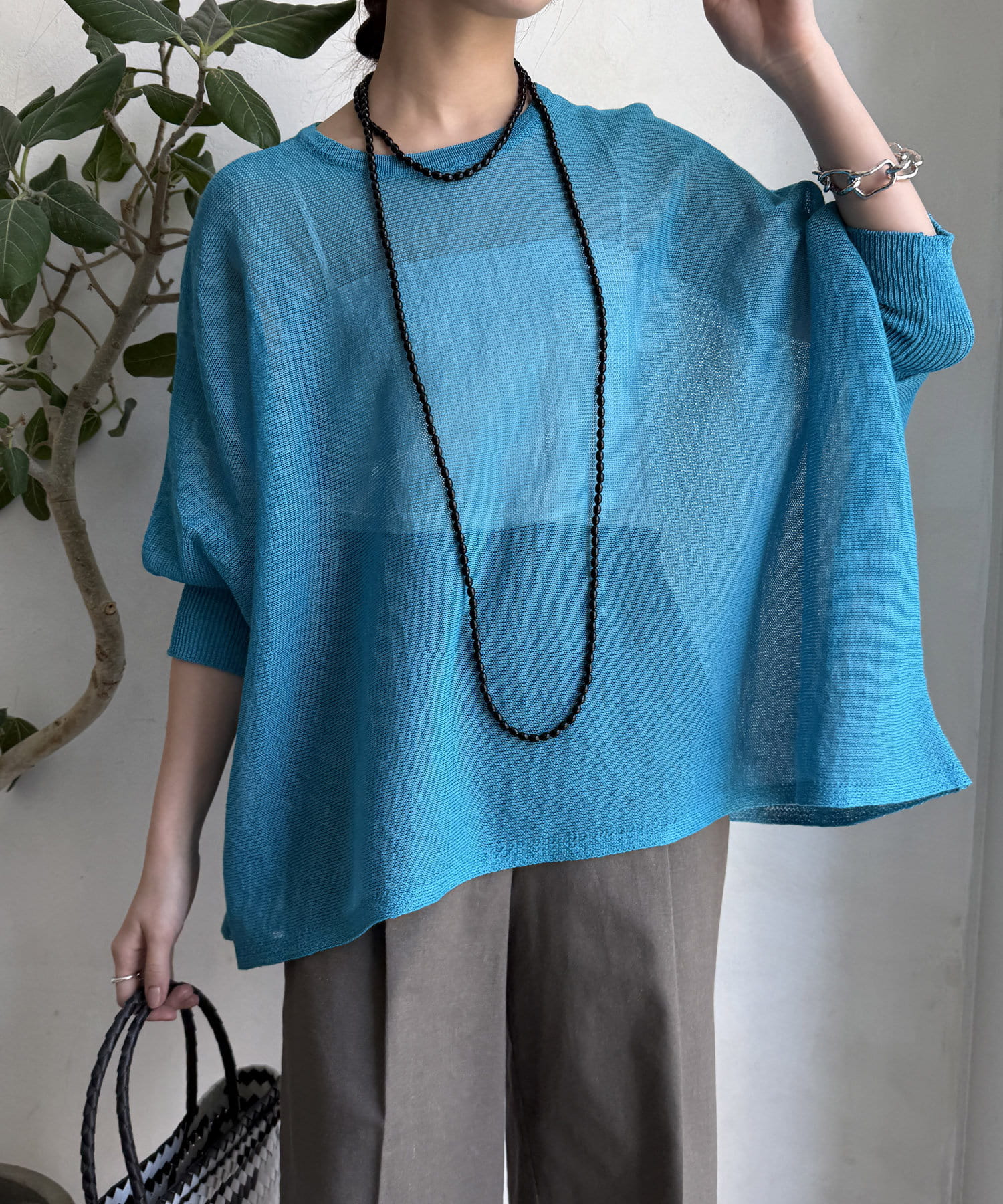 ナチュラルで清涼感あふれる風合いが魅力のストローヤーンポンチョニット