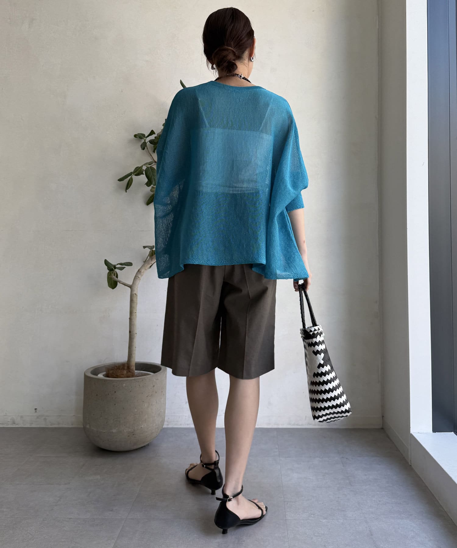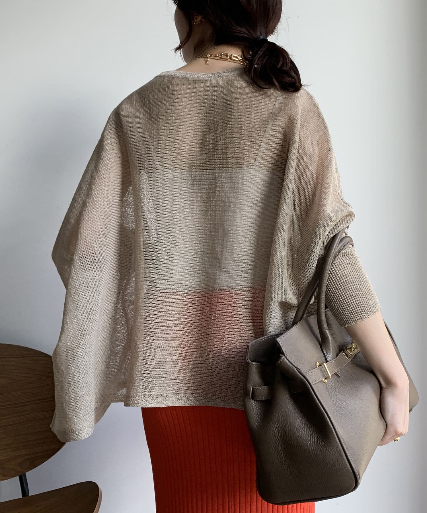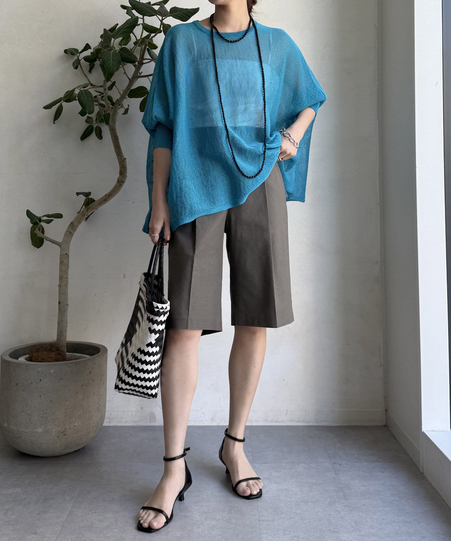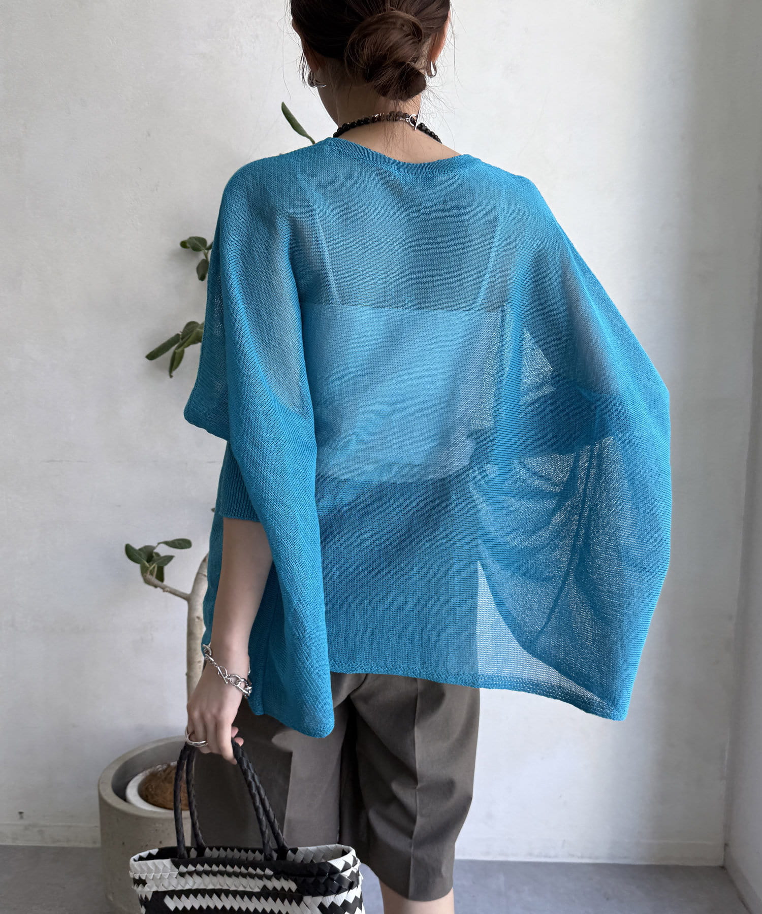 ナチュラルで清涼感あふれる風合いが魅力のストローヤーンポンチョニット