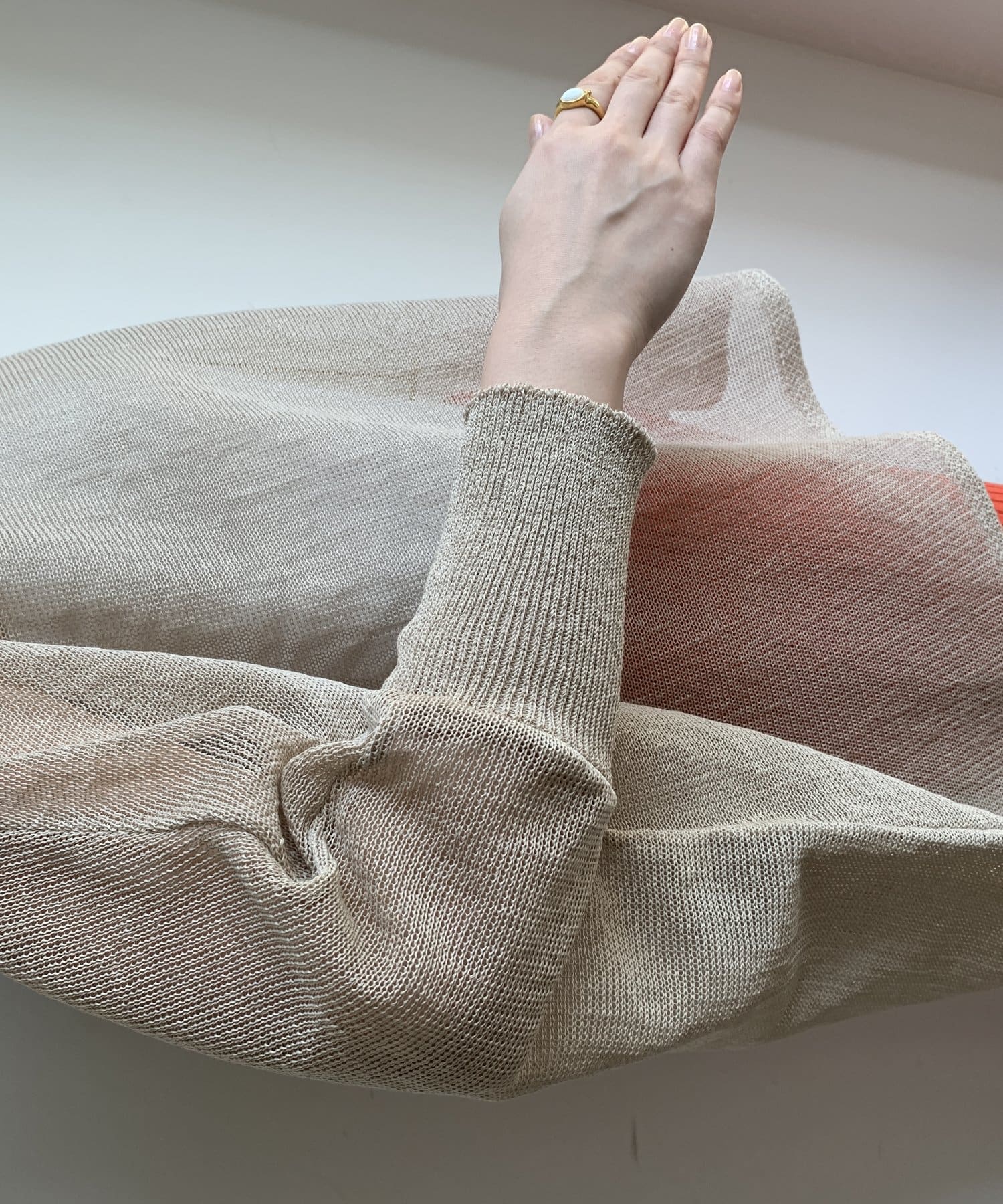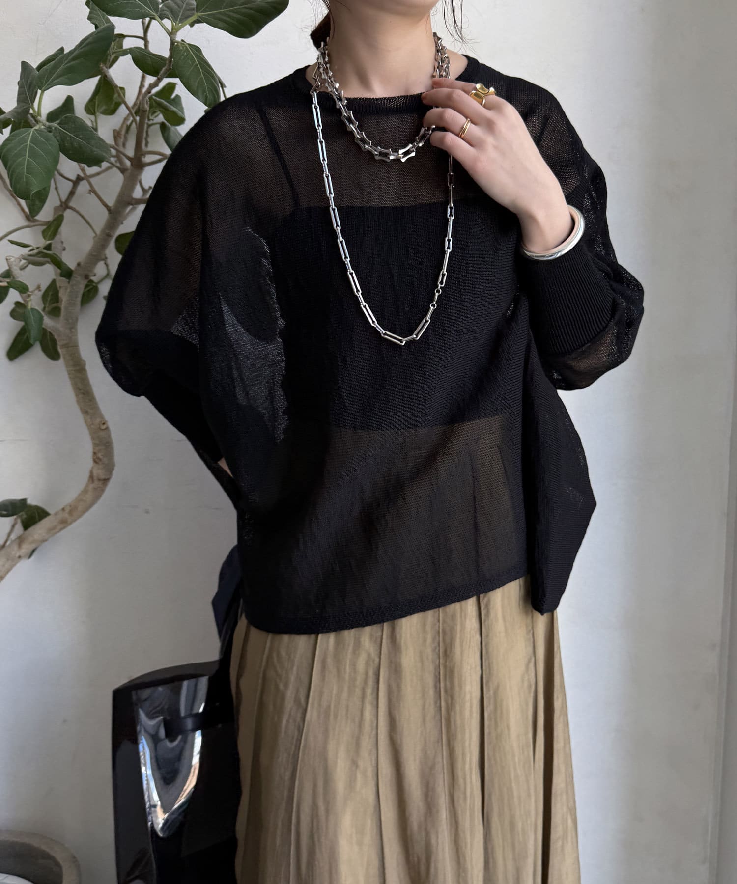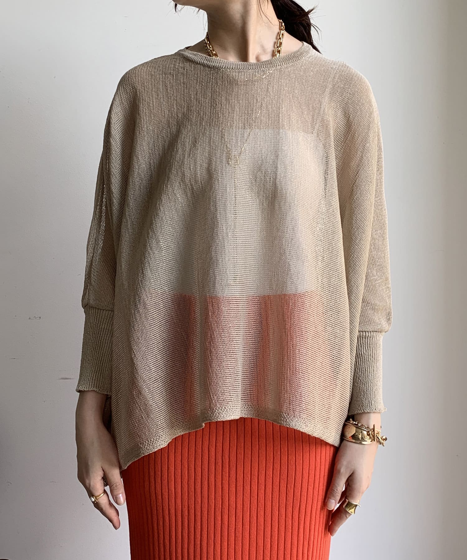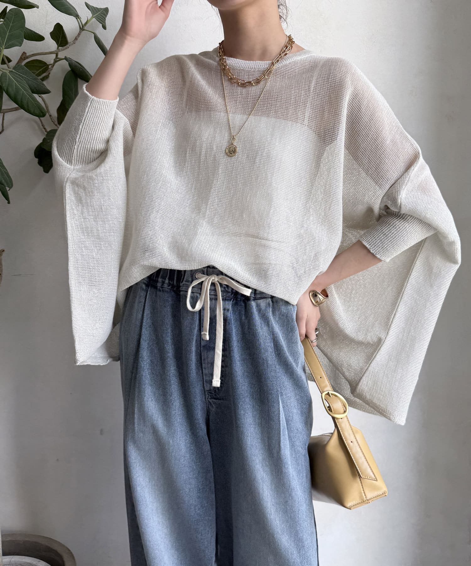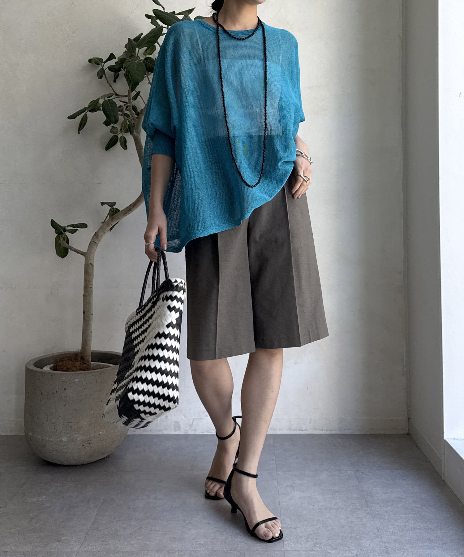 ナチュラルで清涼感あふれる風合いが魅力のストローヤーンポンチョニット