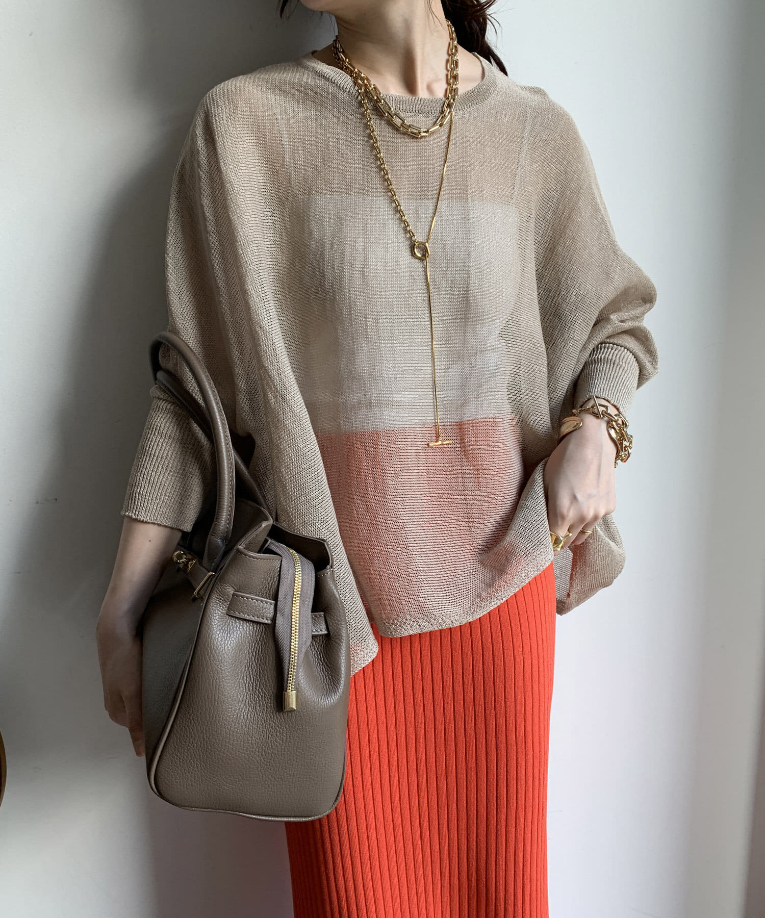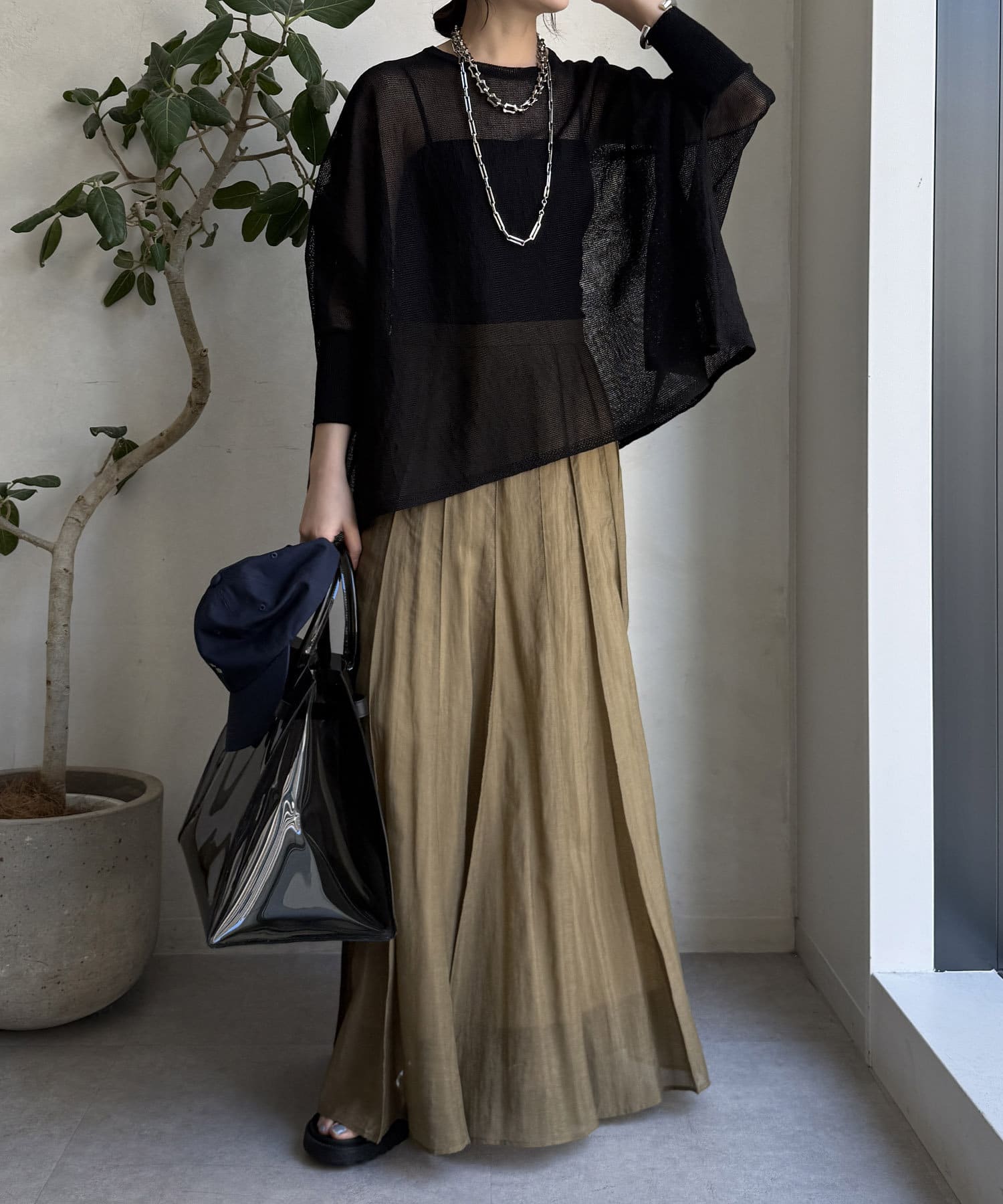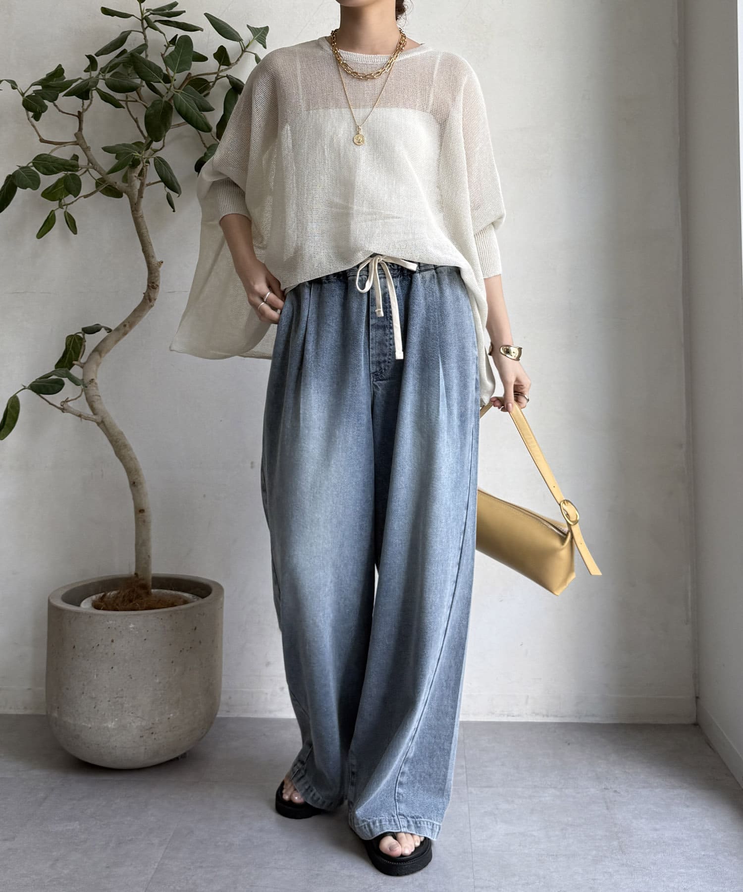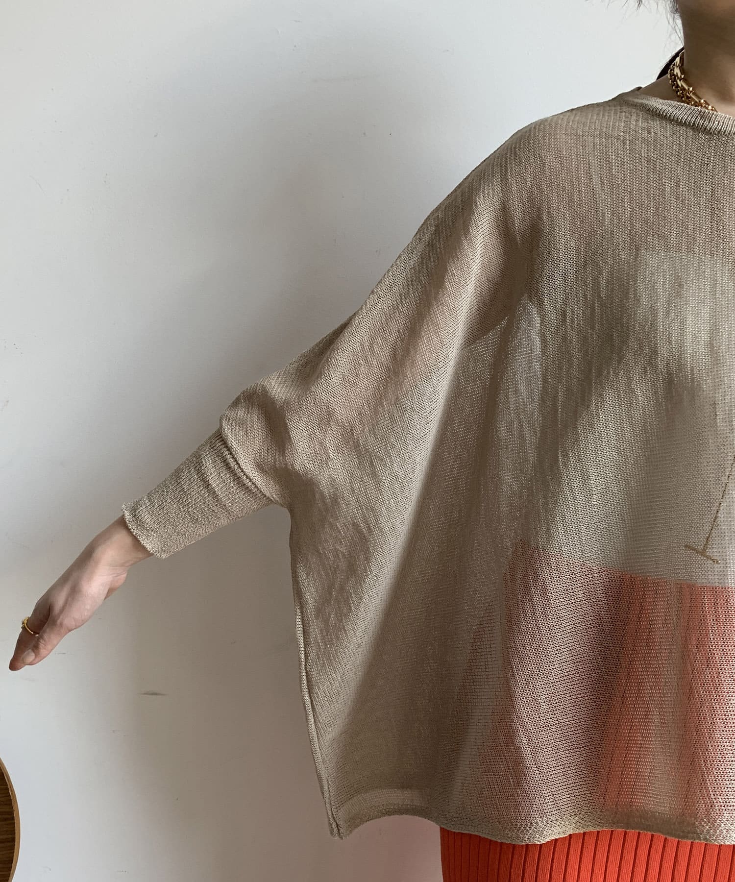ナチュラルで清涼感あふれる風合いが魅力のストローヤーンポンチョニット
