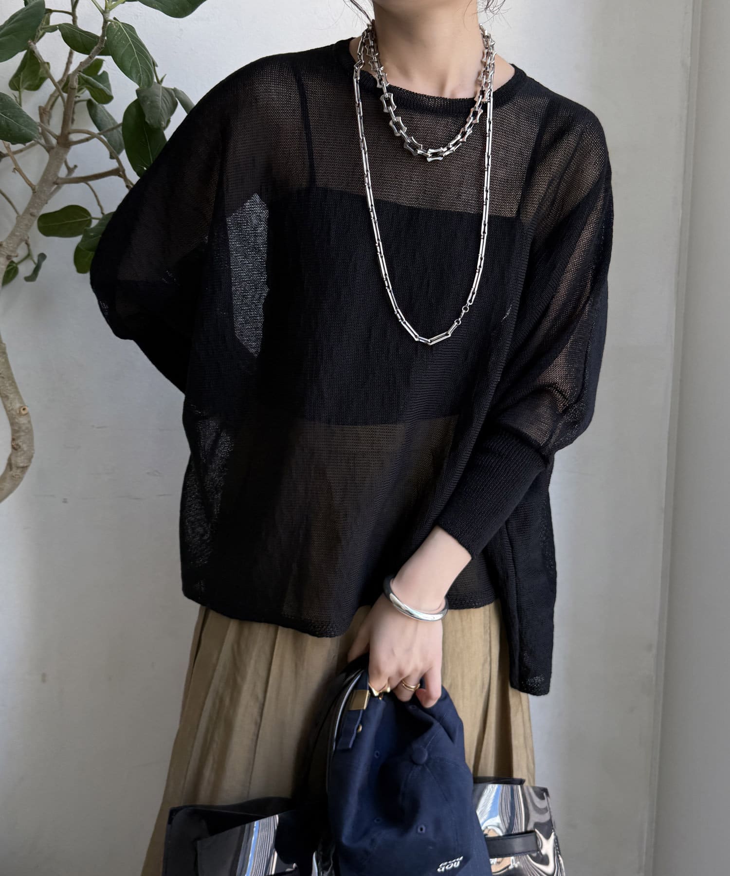 カーディガン感覚で気軽に羽織れるので、冷房対策としても重宝します。