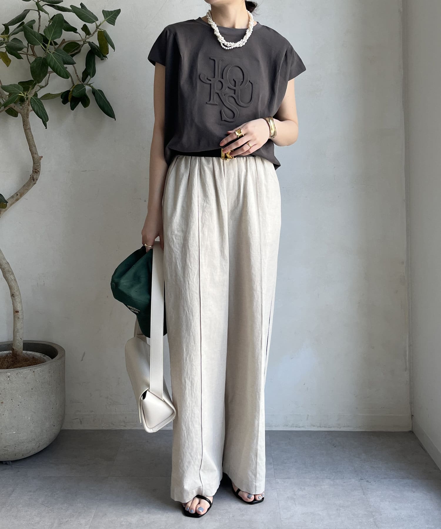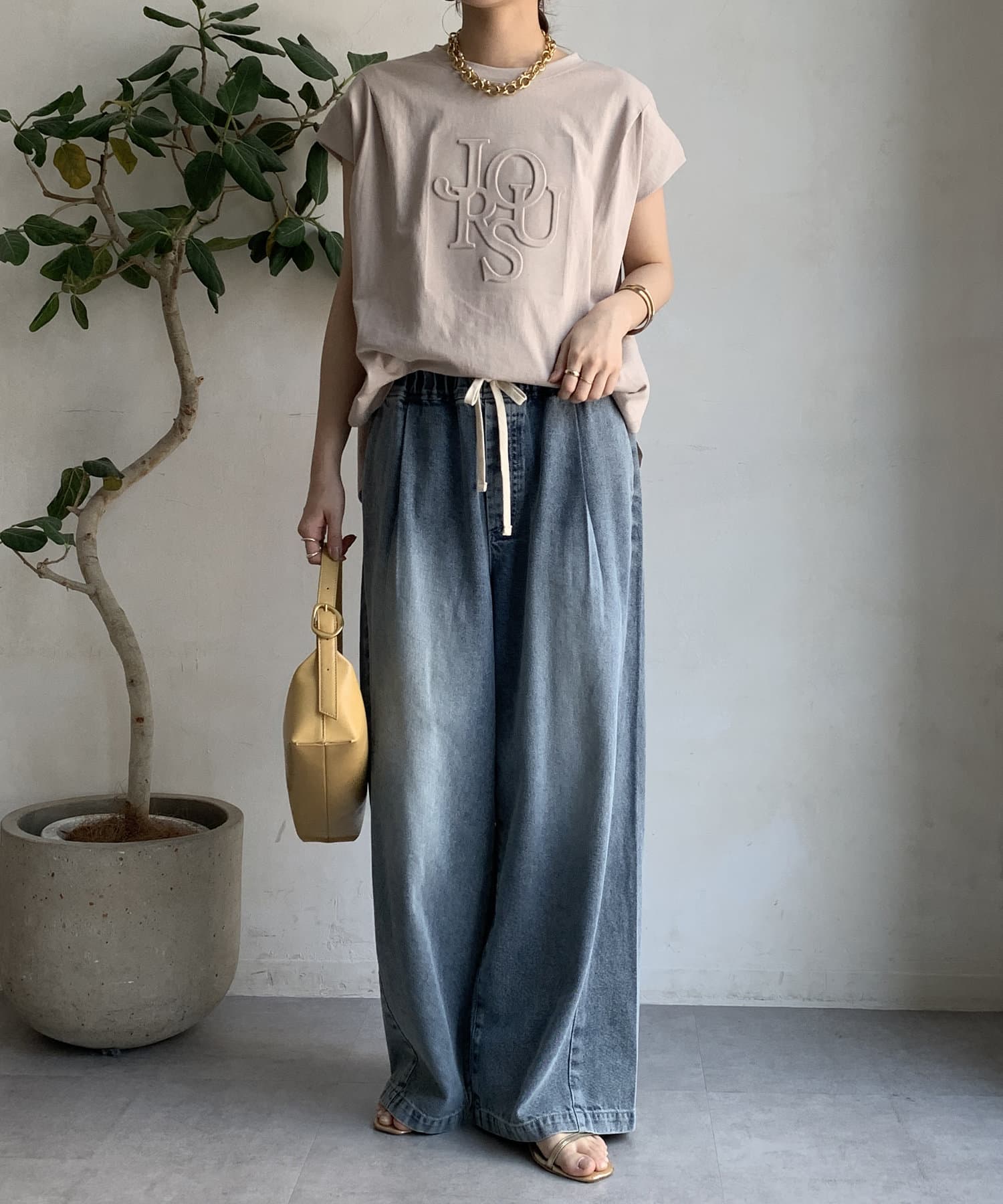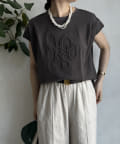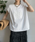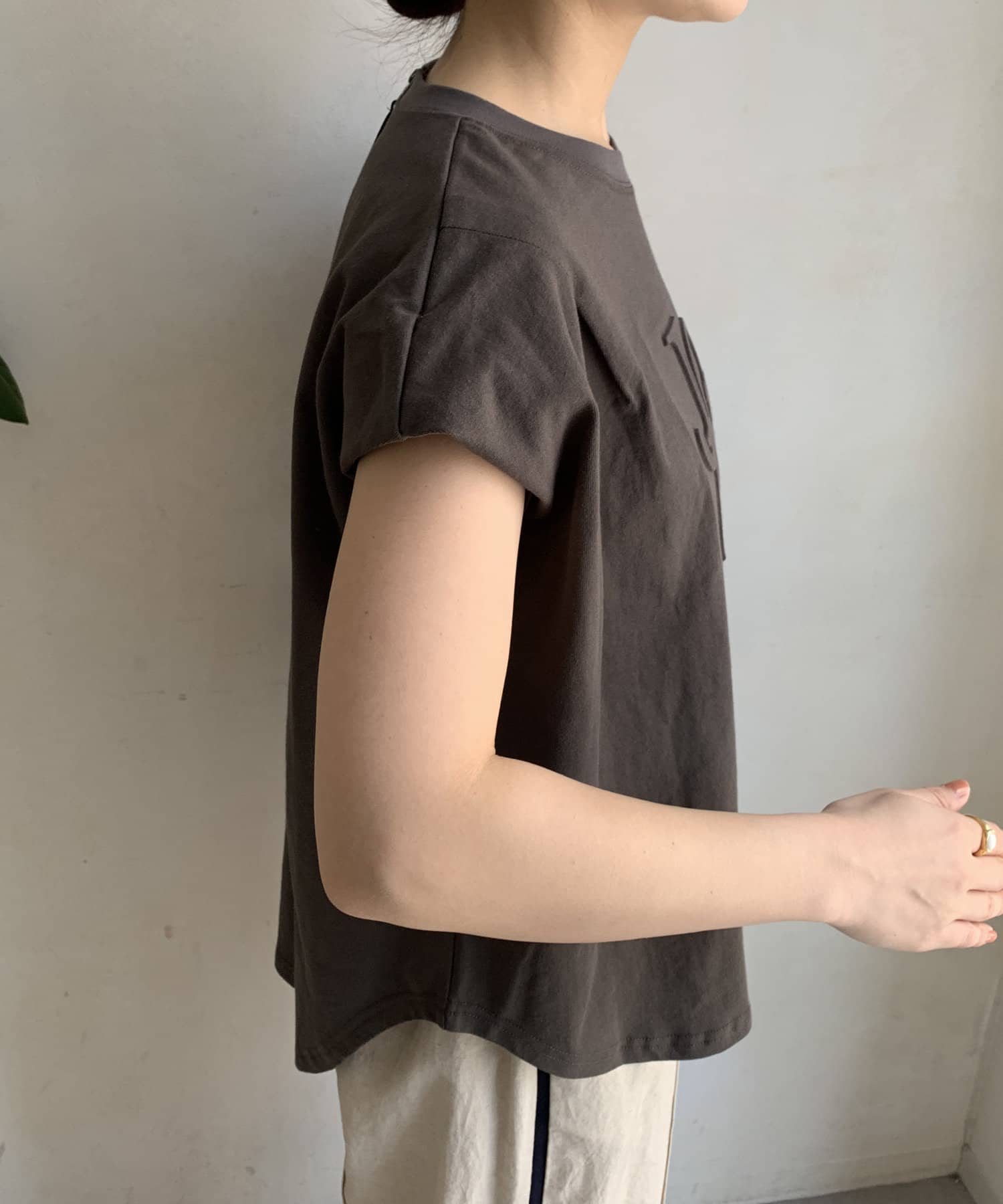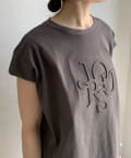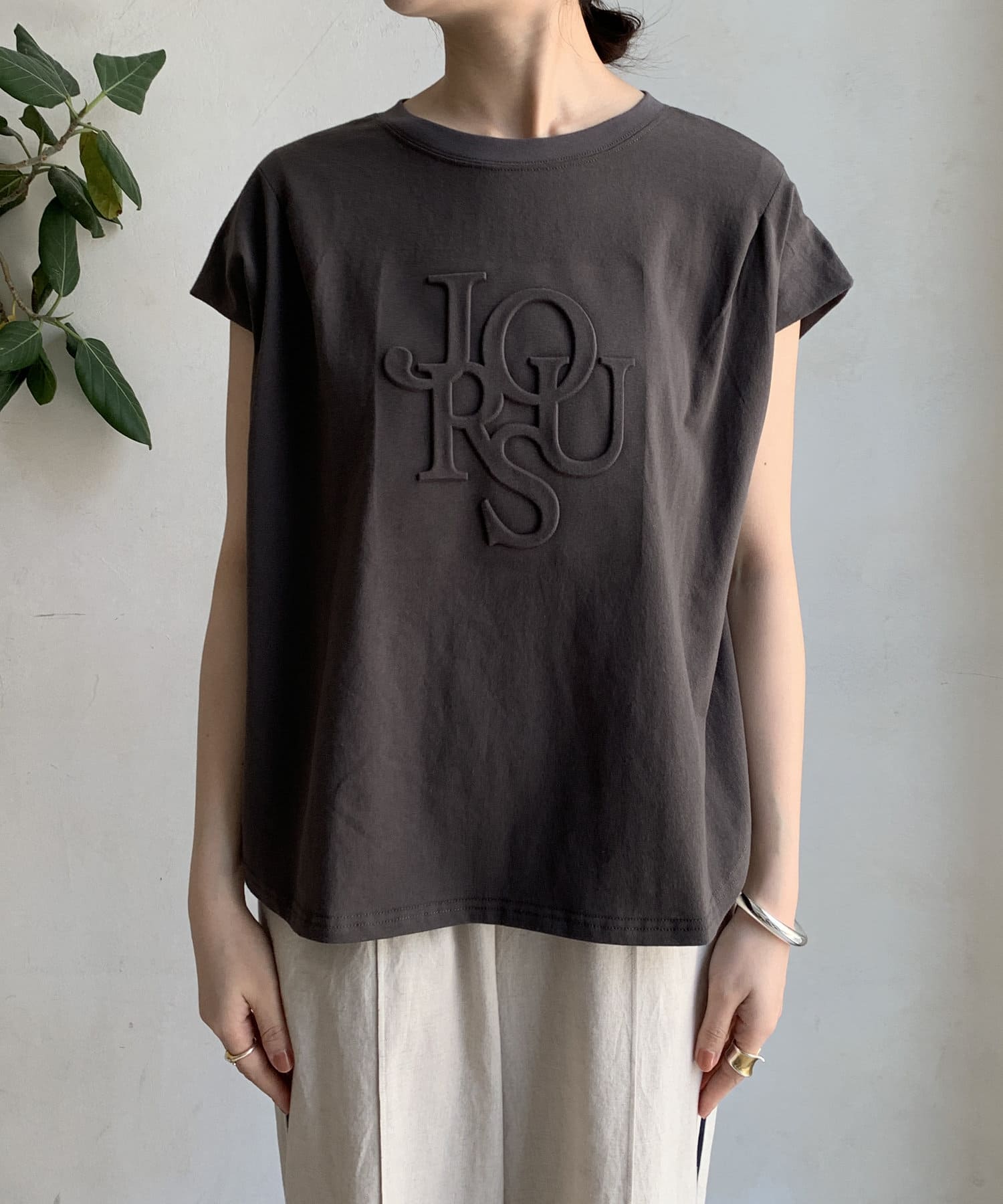 エンボスロゴがシンプルながらも存在感を放つデザイントップス