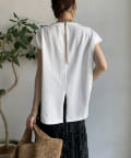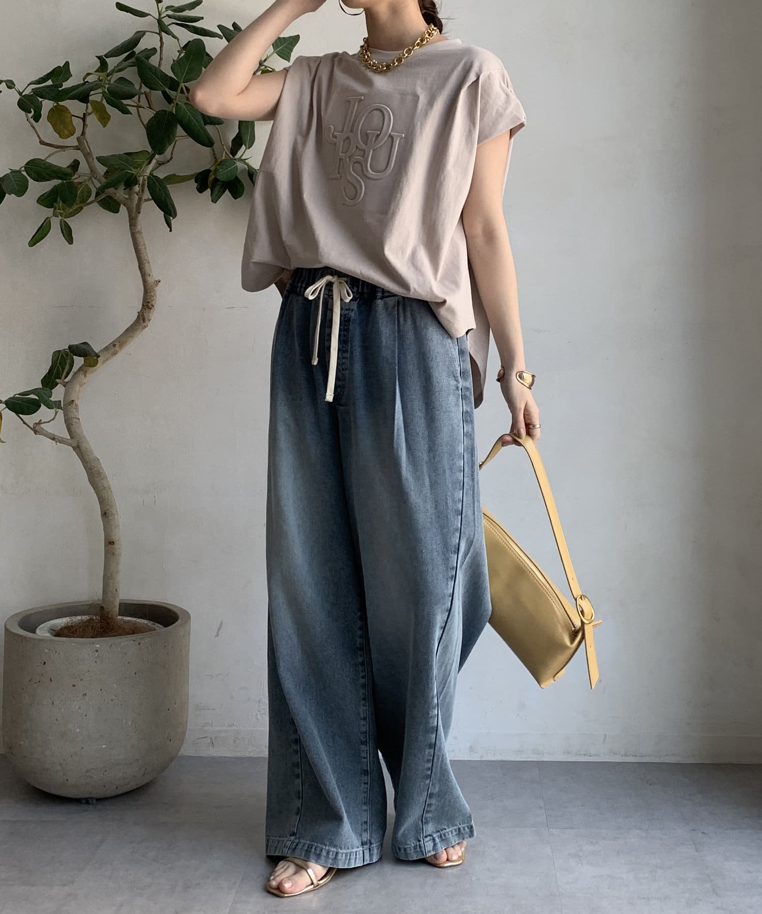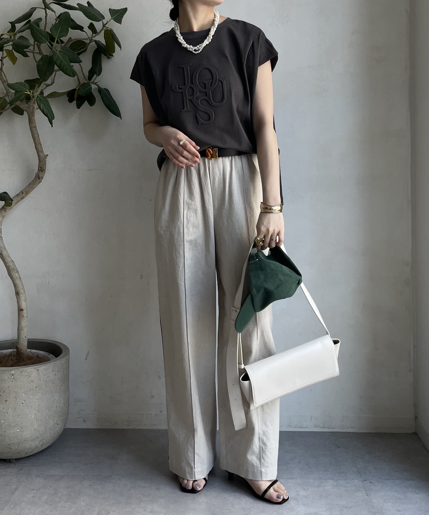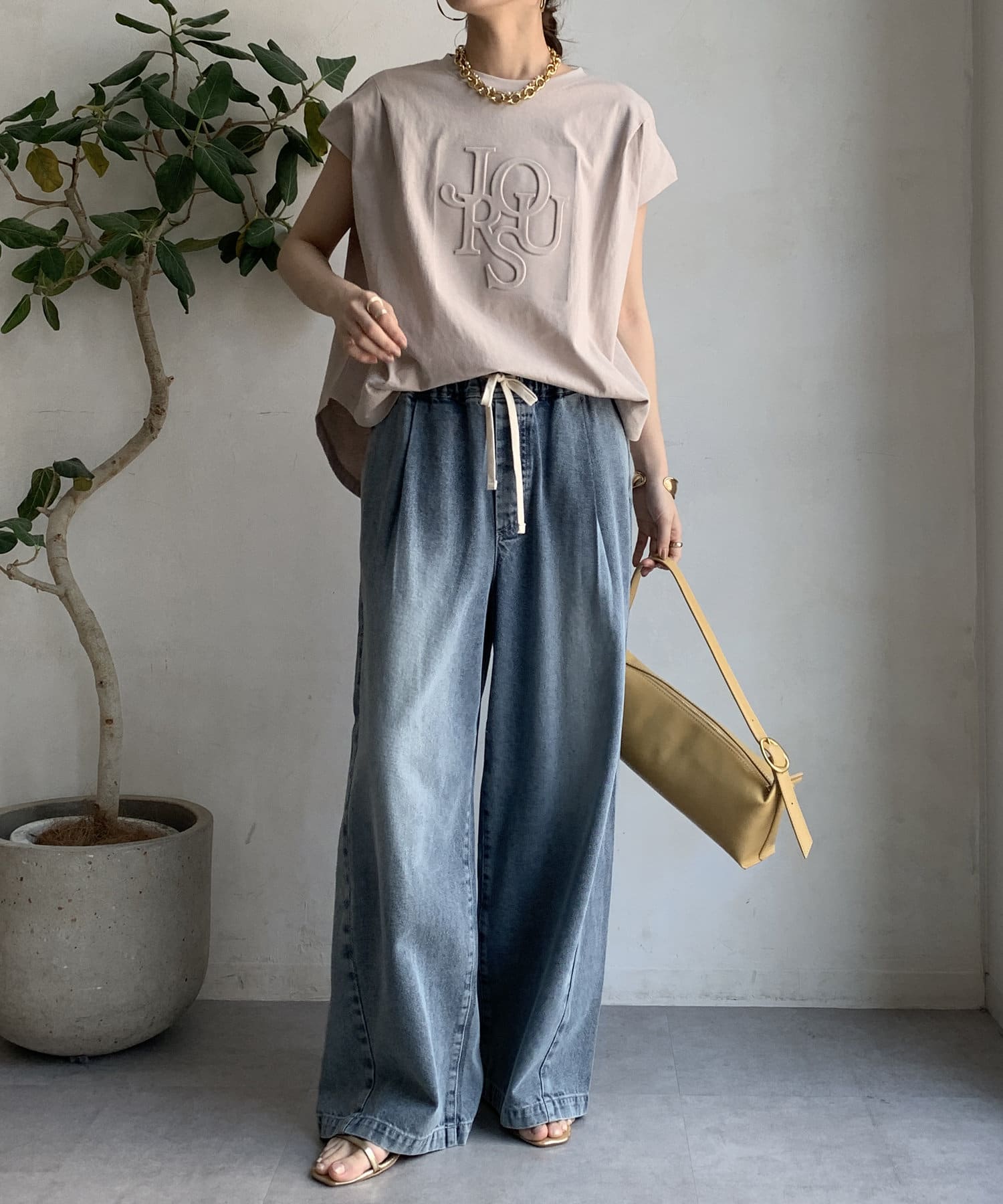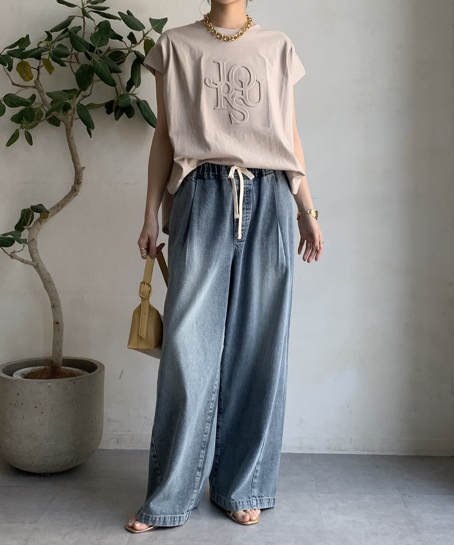 エンボスロゴがシンプルながらも存在感を放つデザイントップス