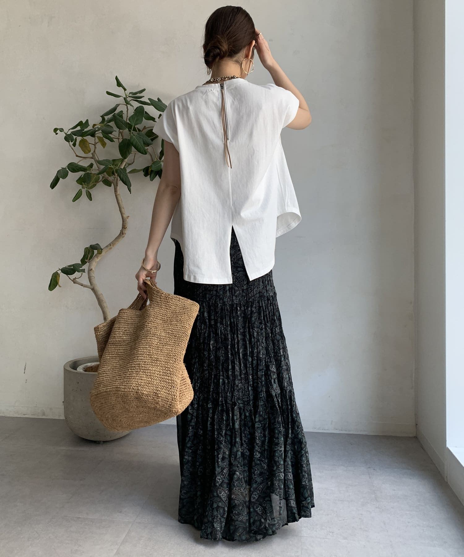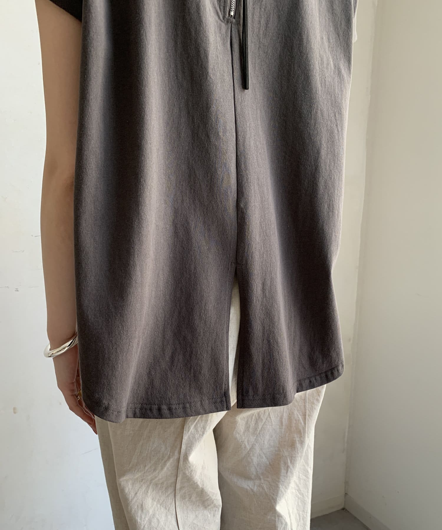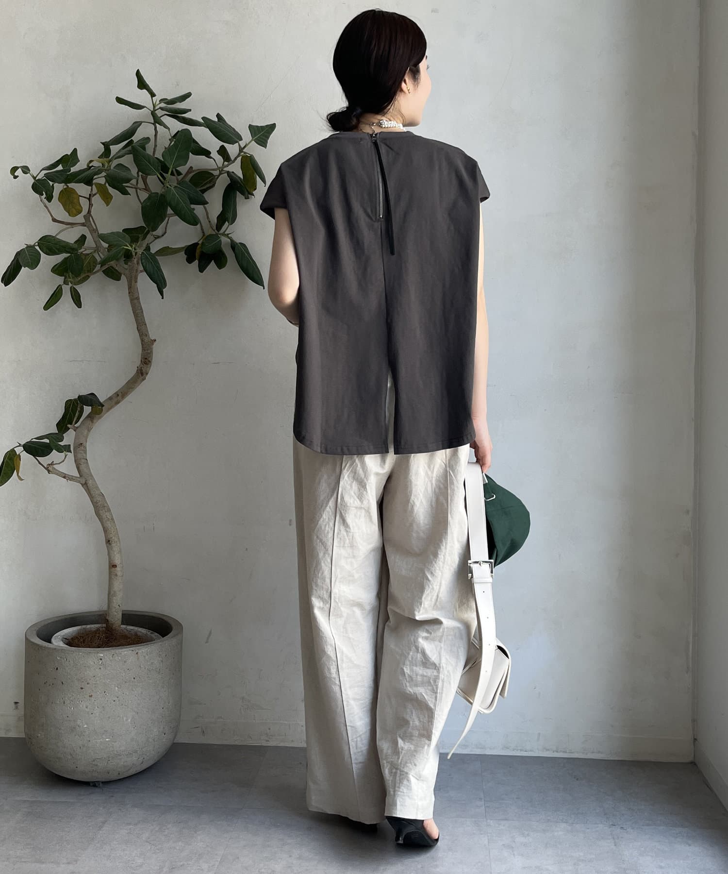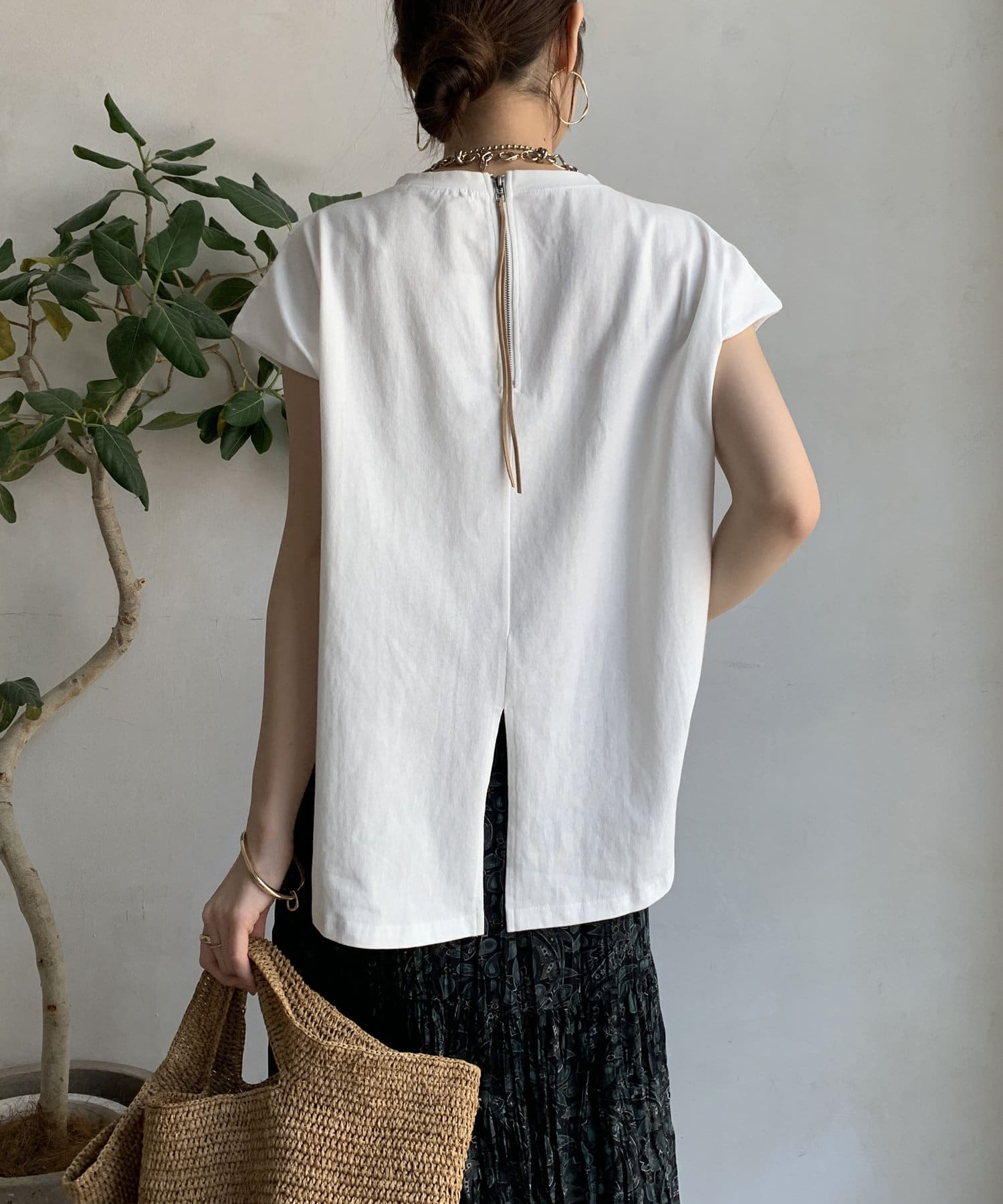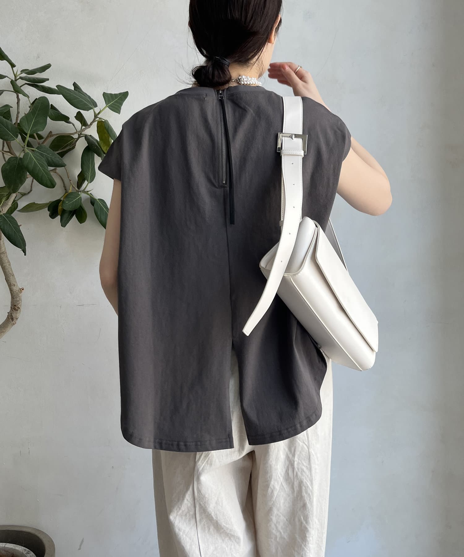 バックスタイルのデザインは首元から裾にかけて大胆に施されたジッパーと深めのスリットが、後ろ姿にアクセントをプラス。