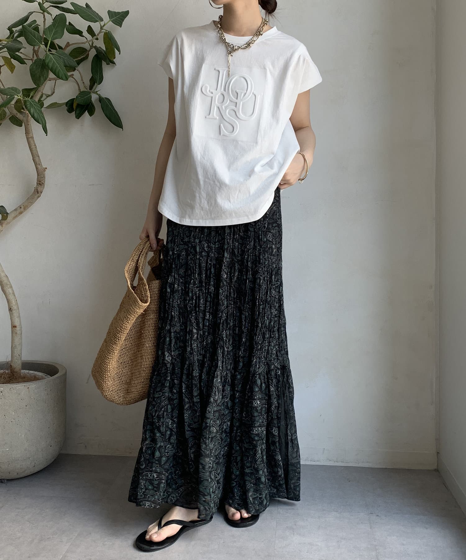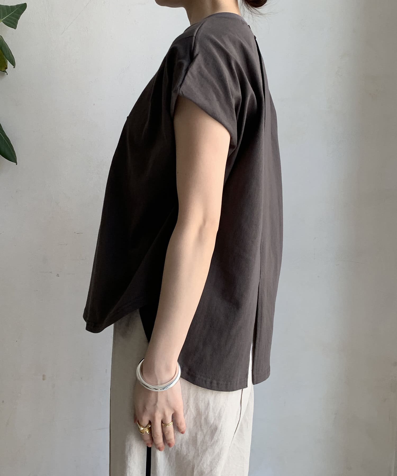 カジュアルなTシャツのイメージを覆す、洗練された雰囲気が魅力の一枚です。