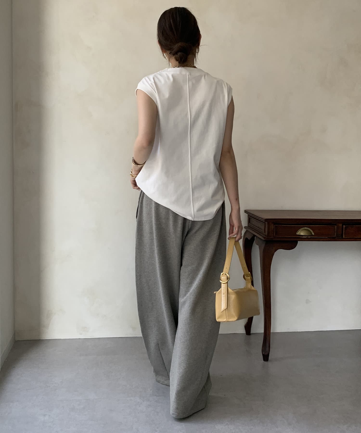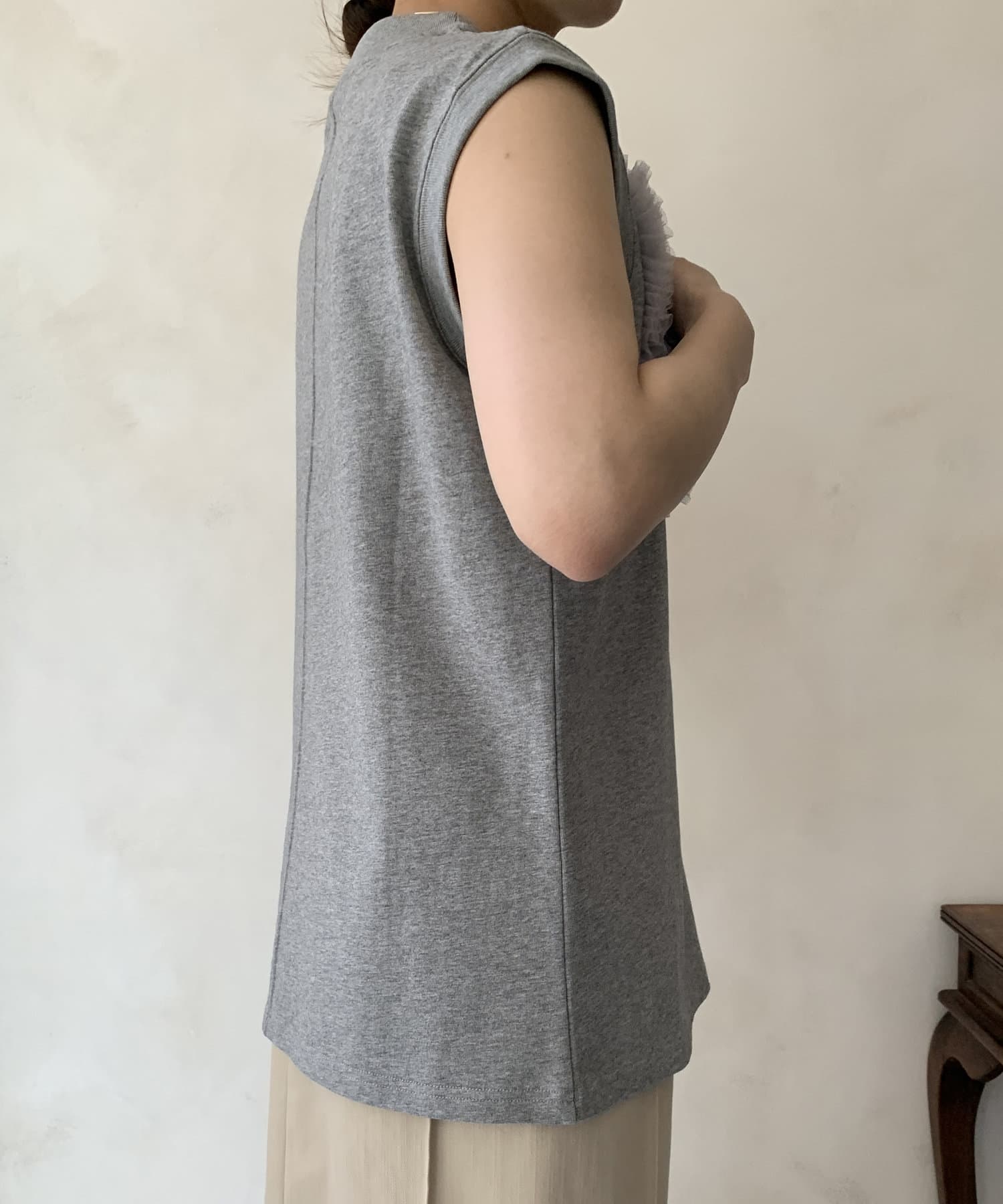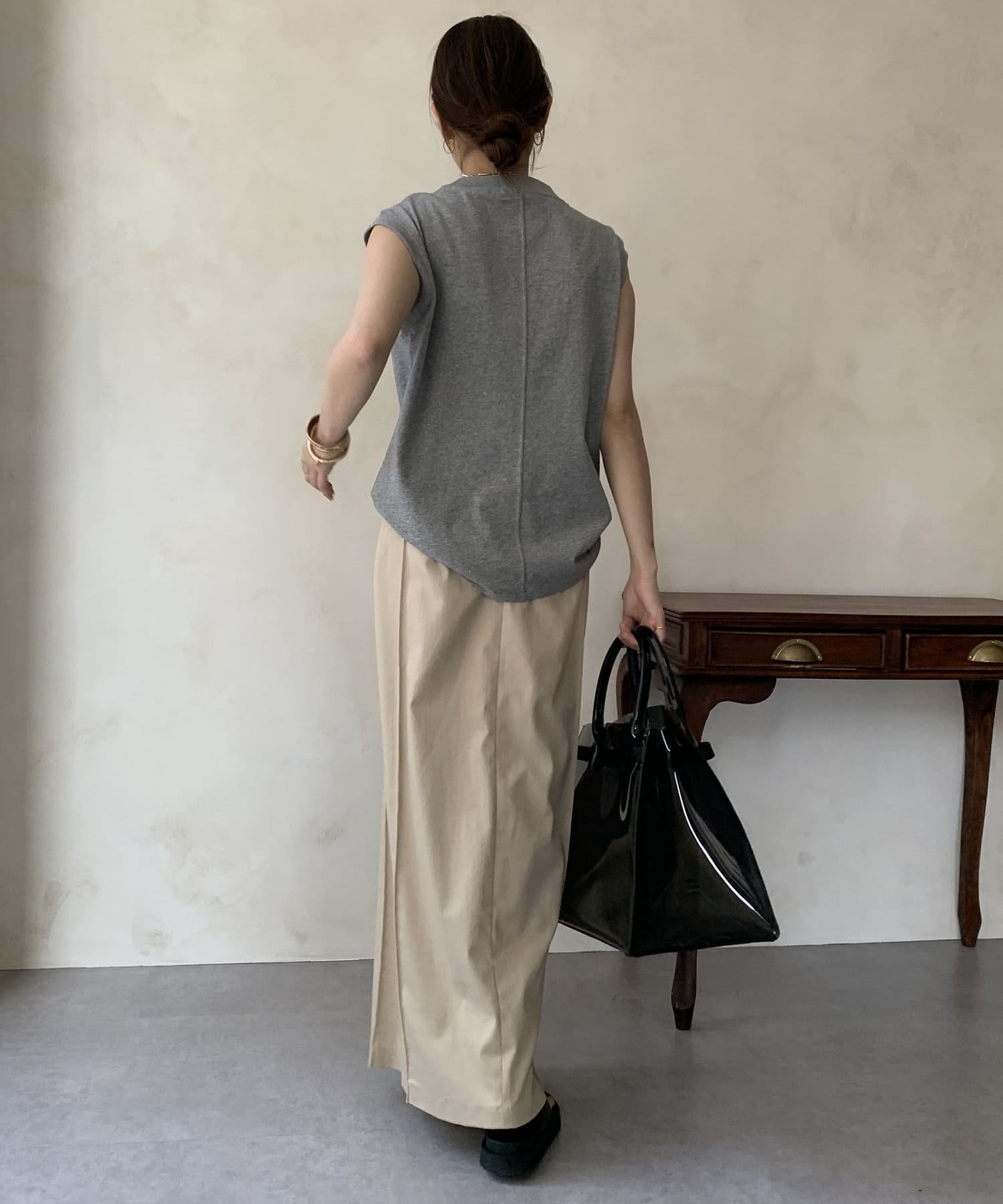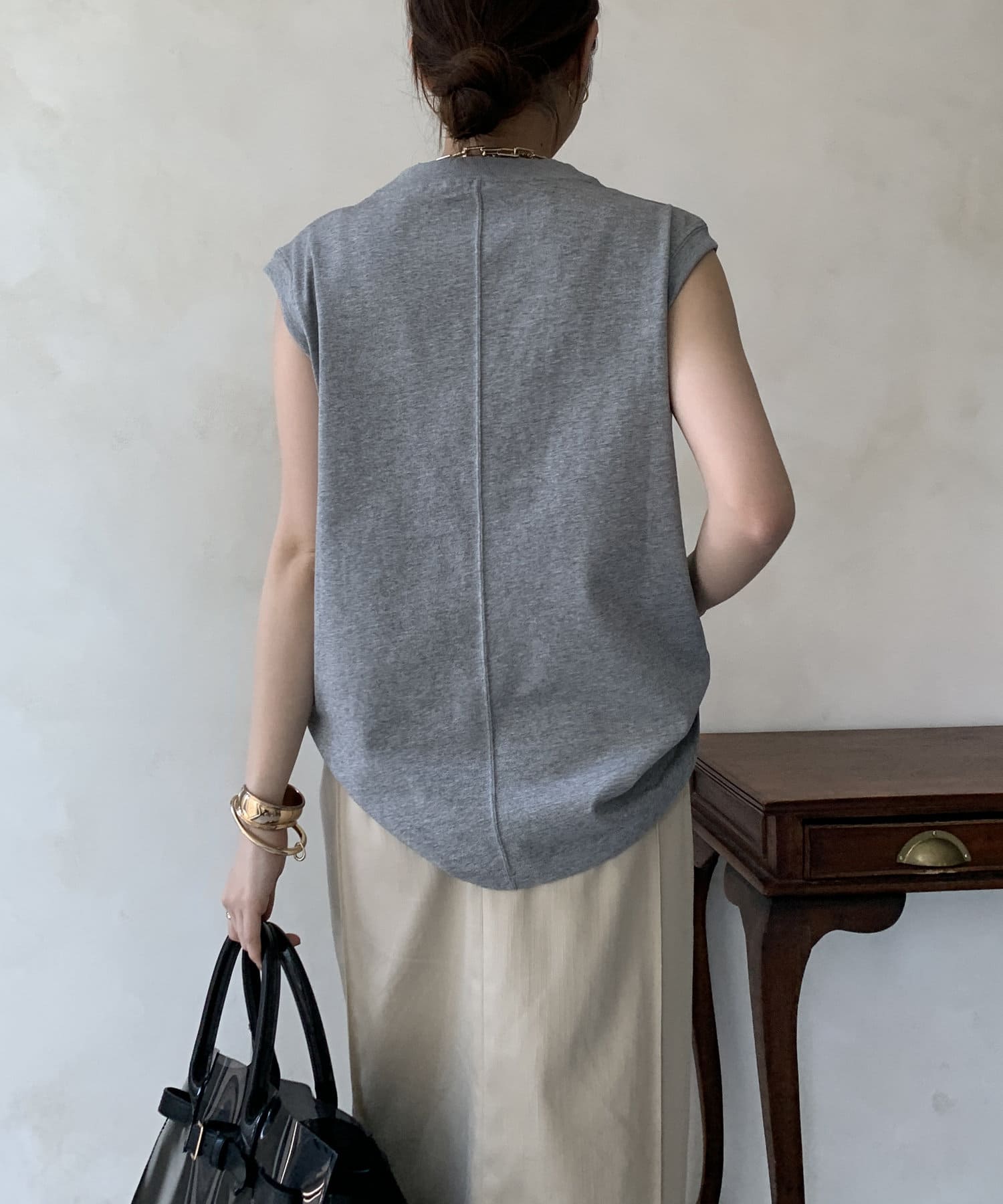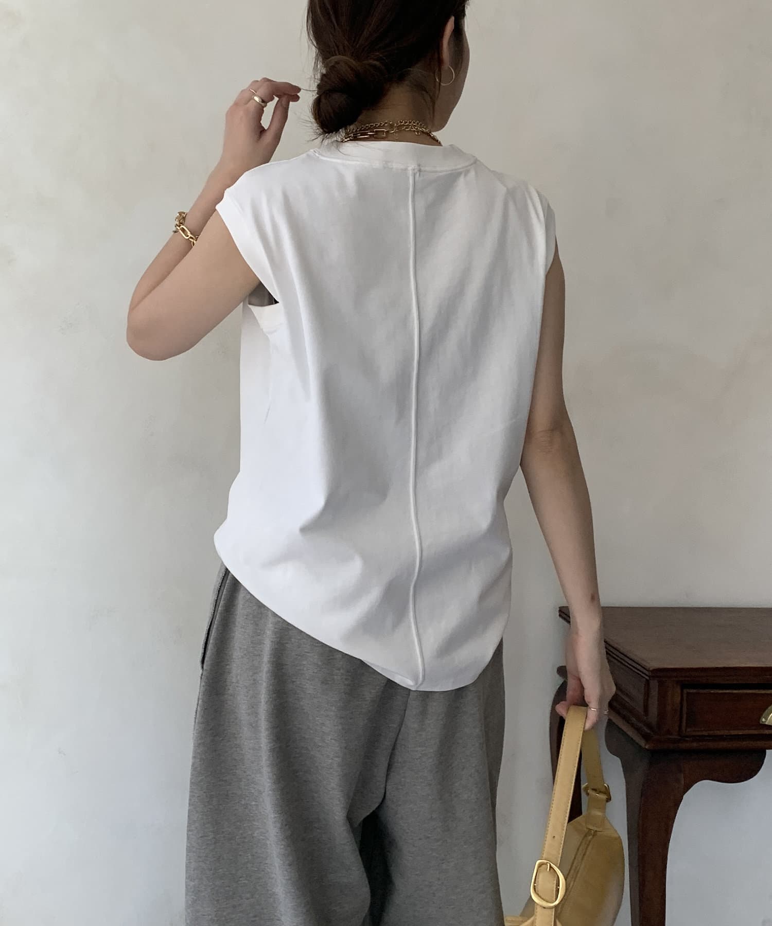 気になる二の腕をさりげなくカバーしつつ、肩周りを華奢に見せるカッティングのノースリーブです!