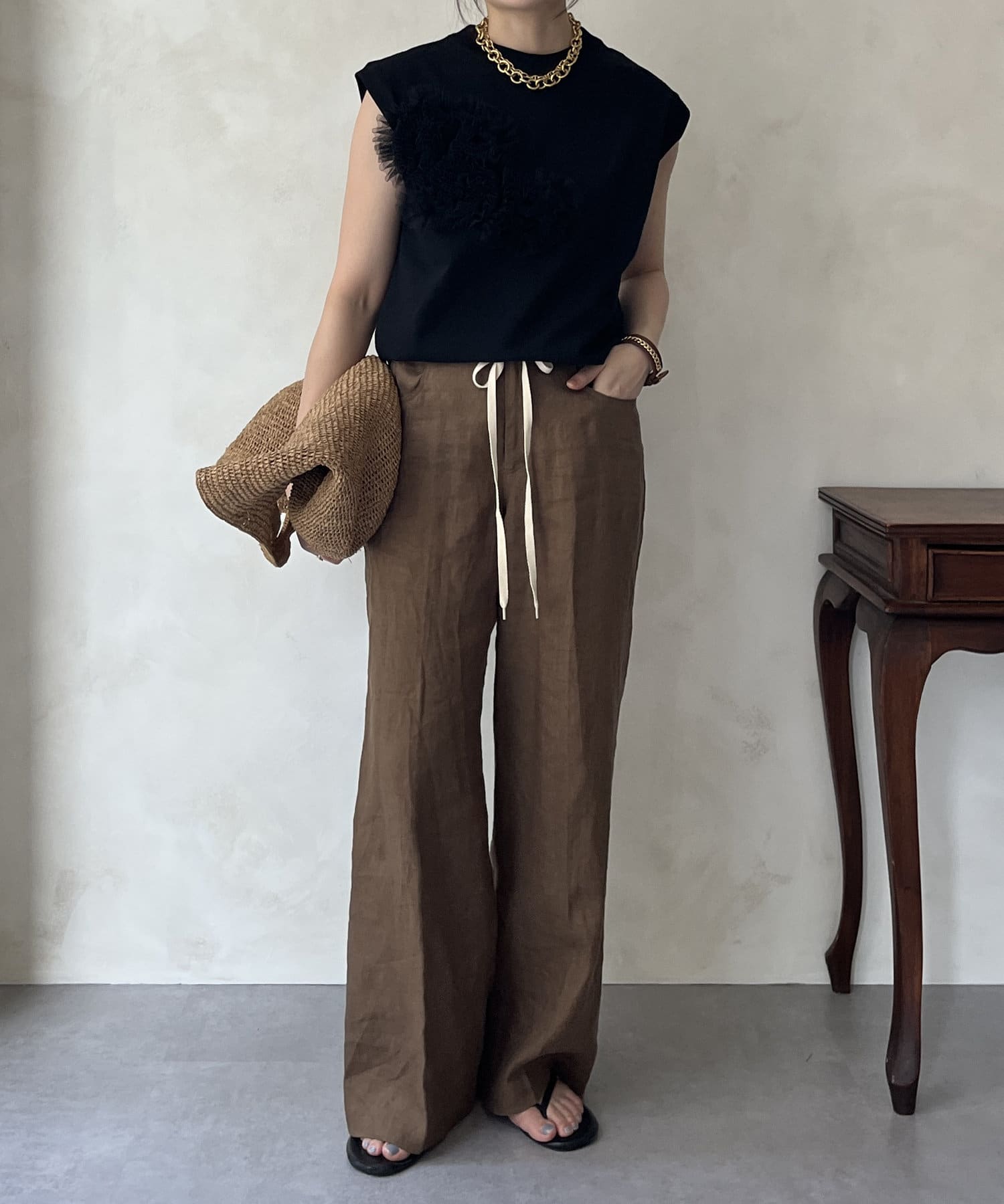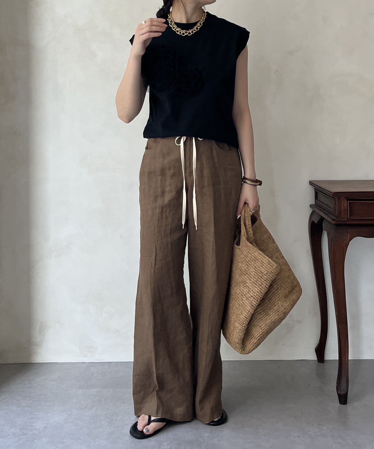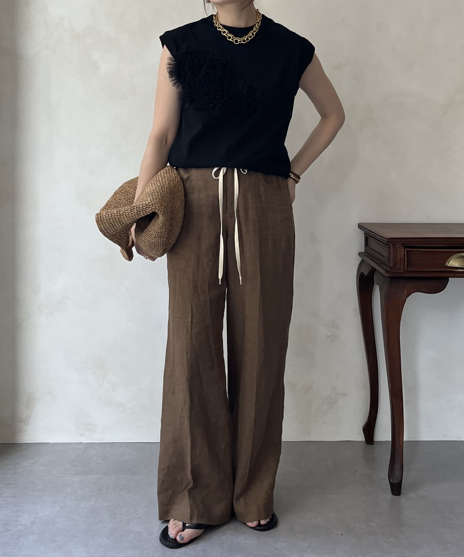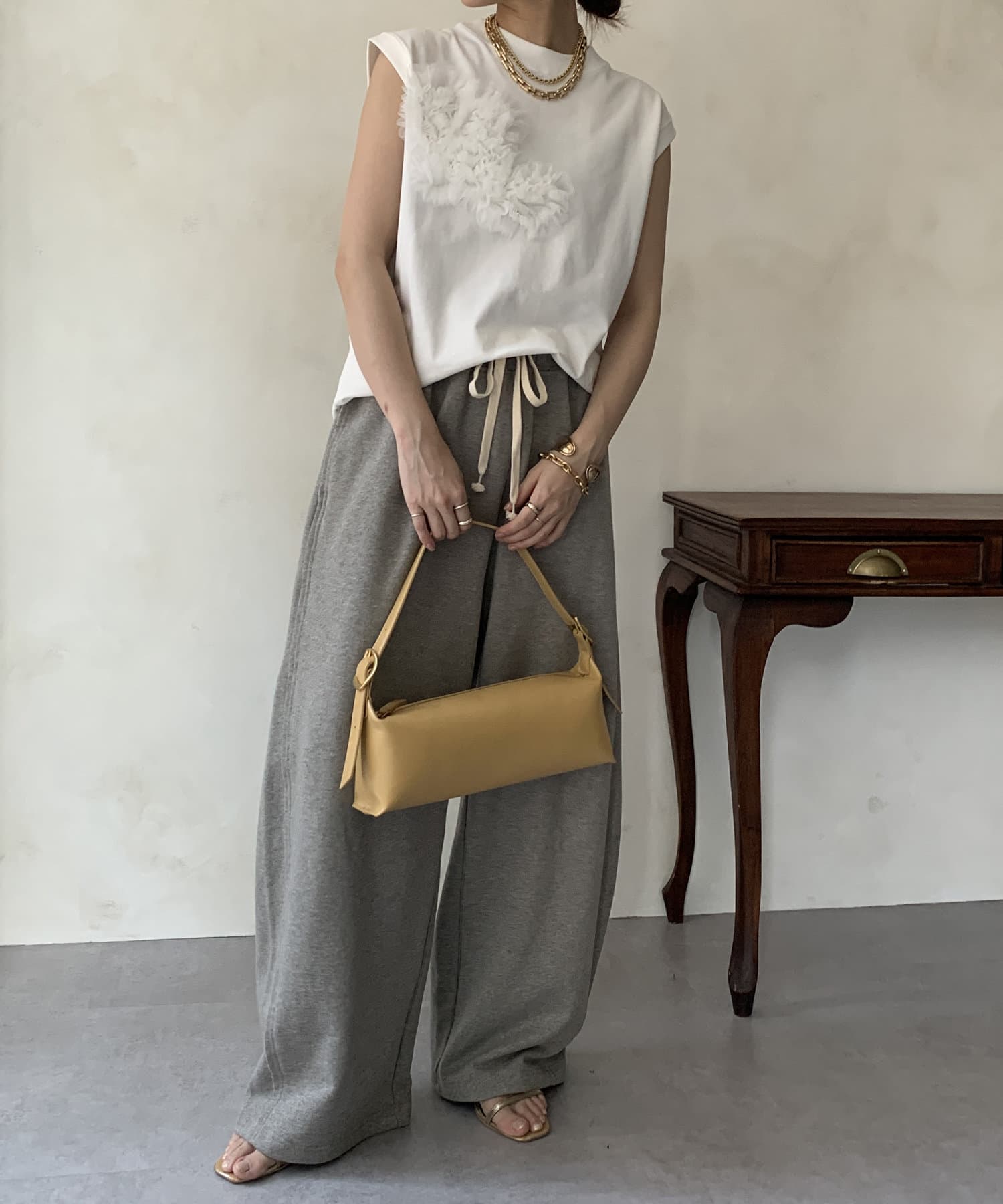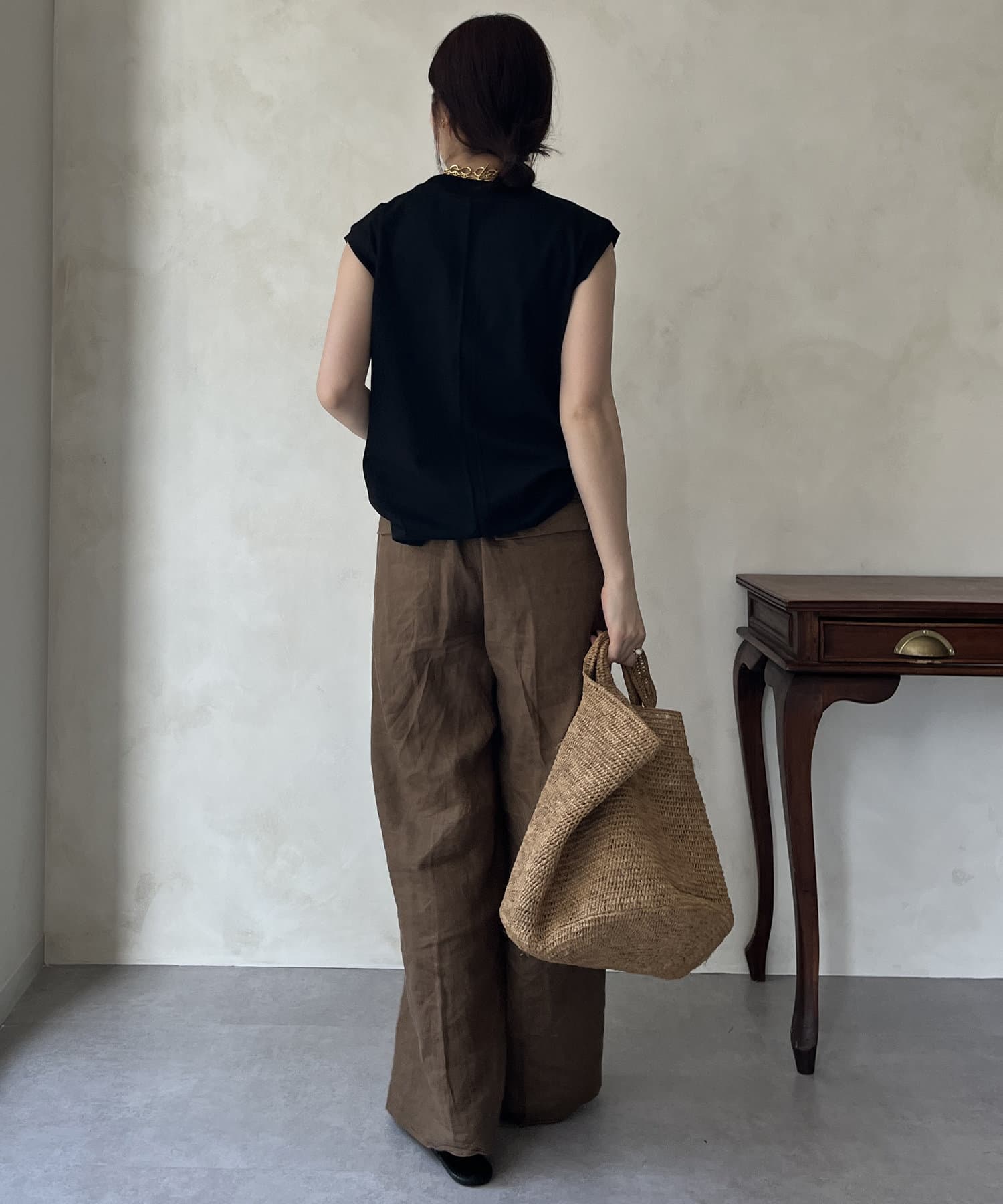 気になる二の腕をさりげなくカバーしつつ、肩周りを華奢に見せるカッティングのノースリーブです!