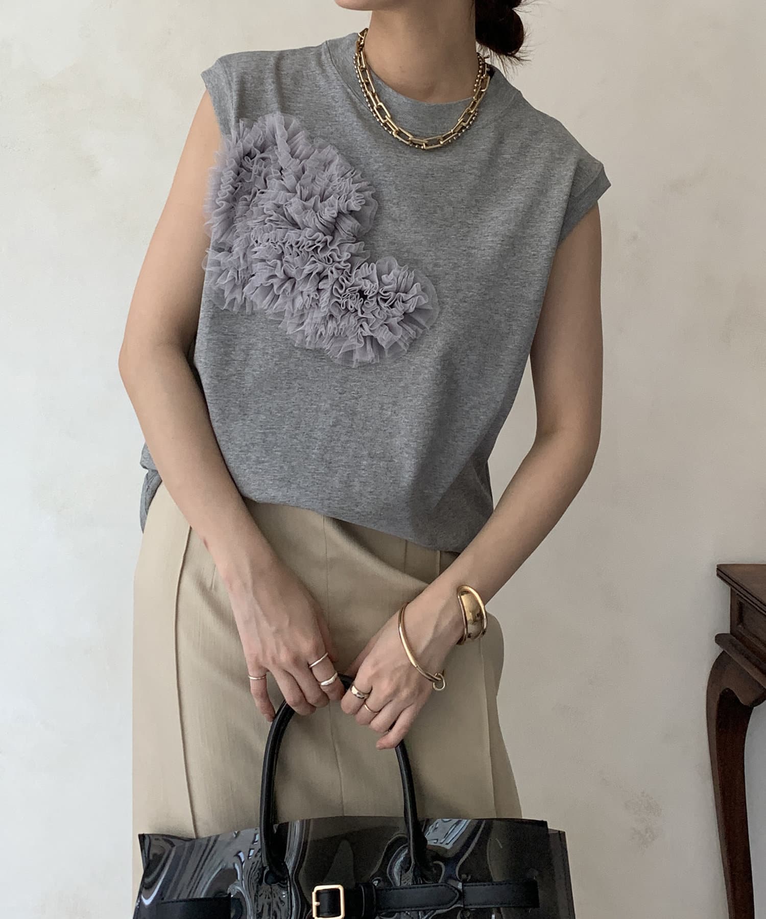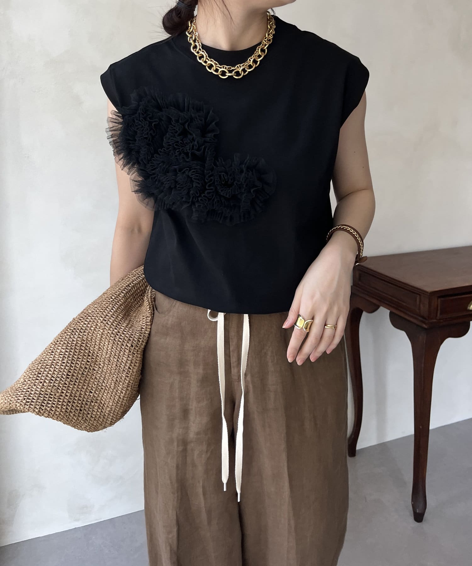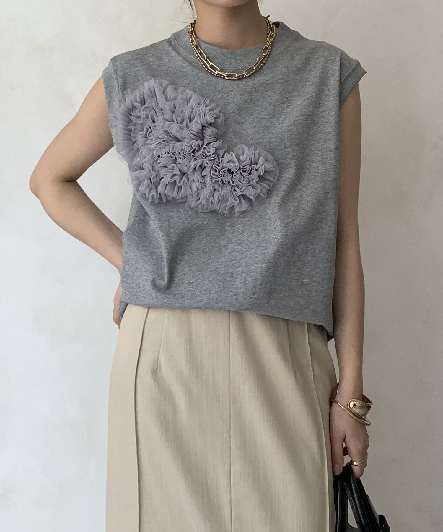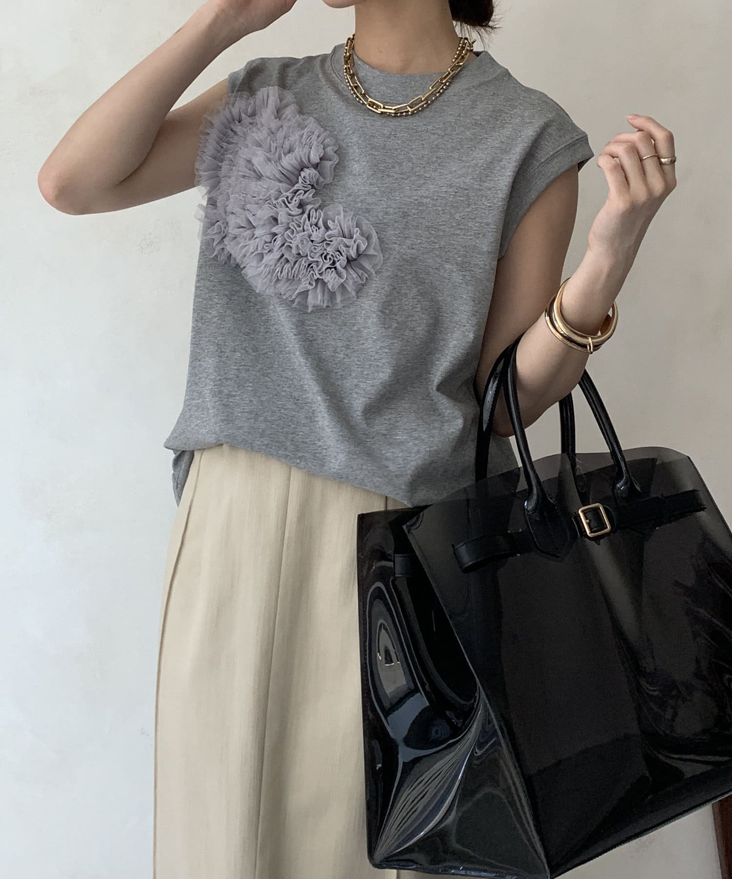 いつものTシャツスタイルに、華やかさをプラスする「3DチュールモチーフTEE」