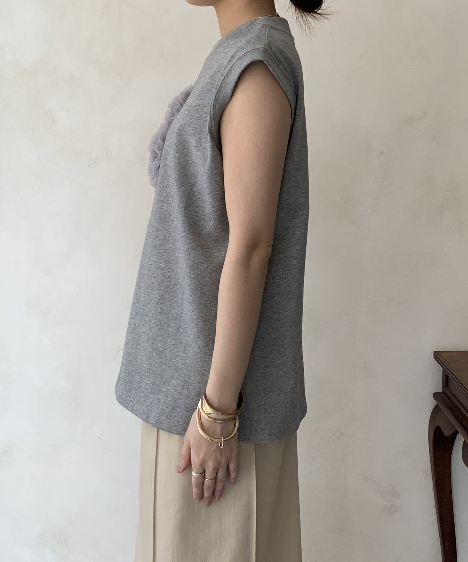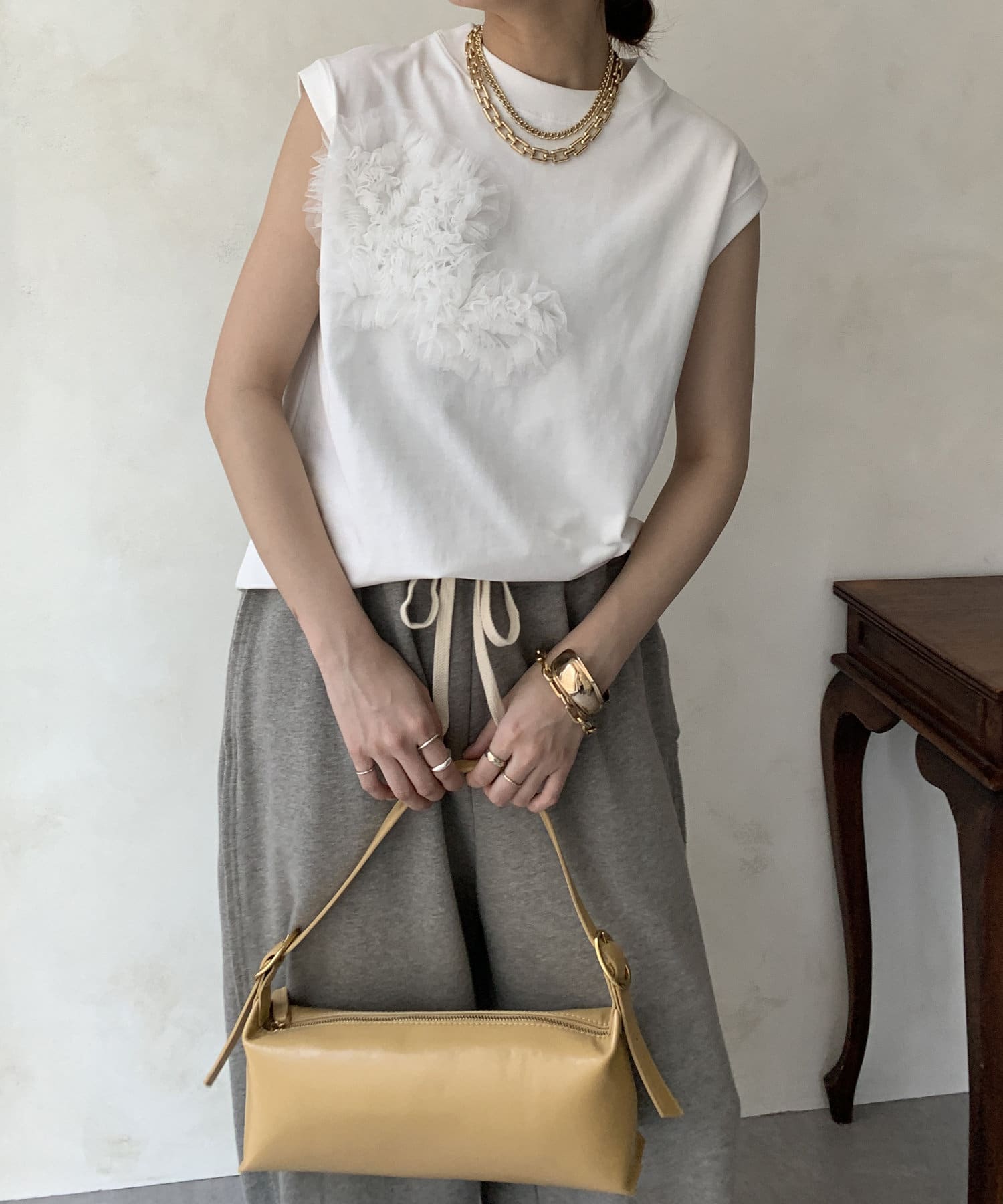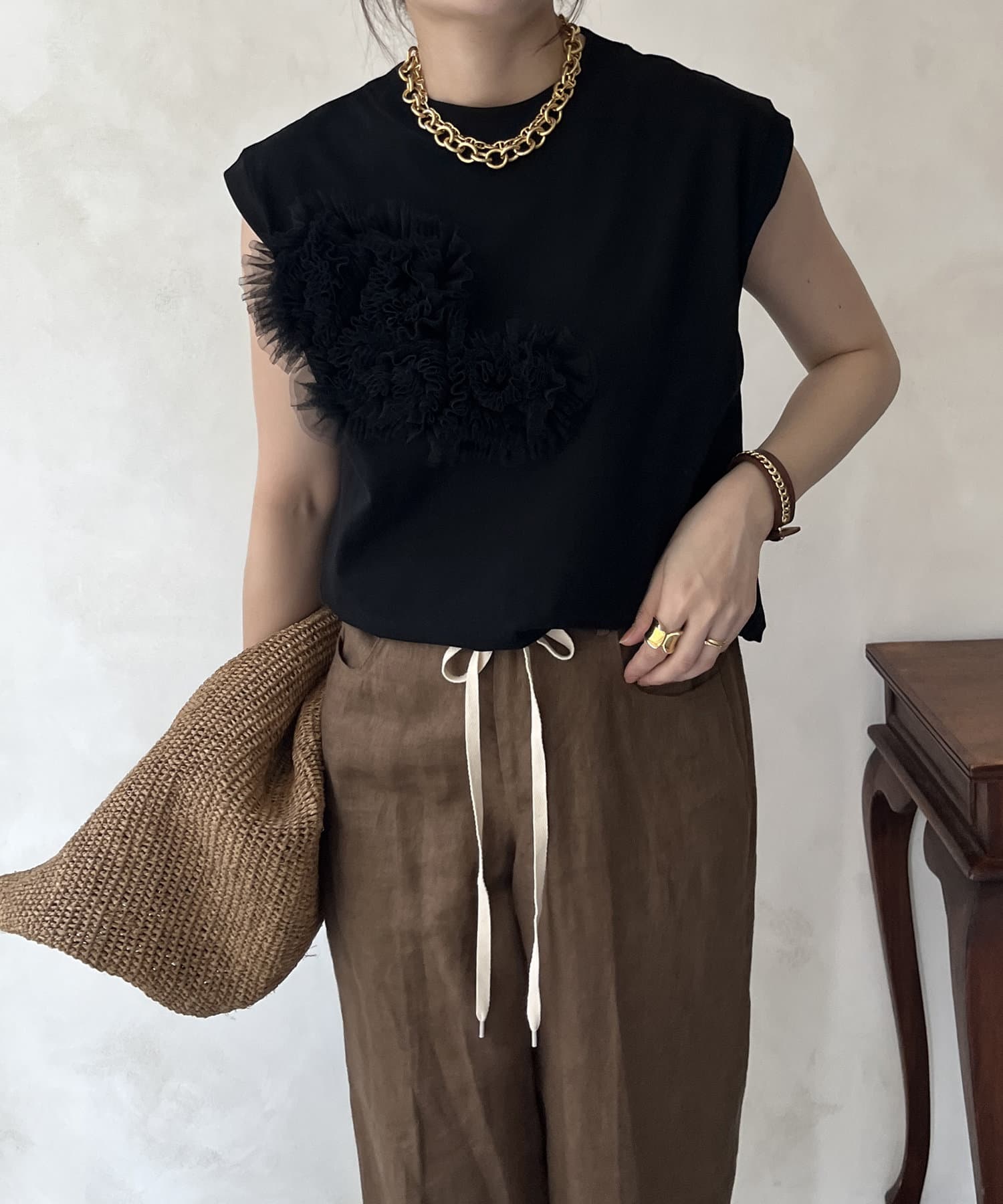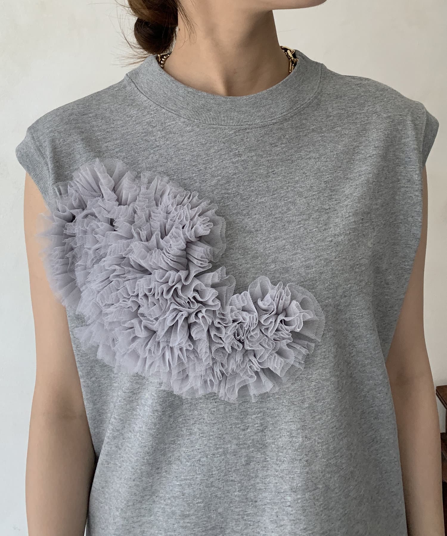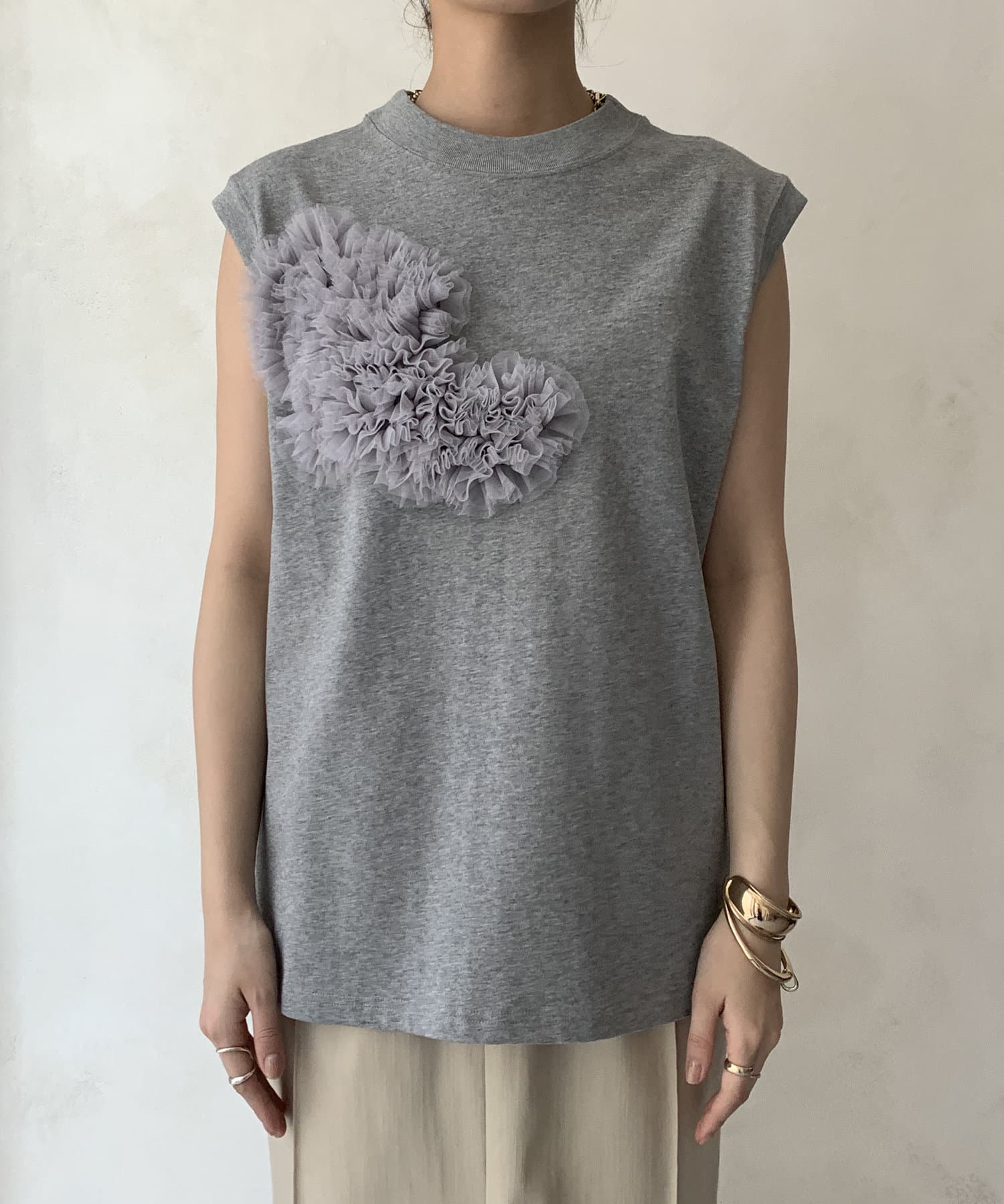いつものTシャツスタイルに、華やかさをプラスする「3DチュールモチーフTEE」