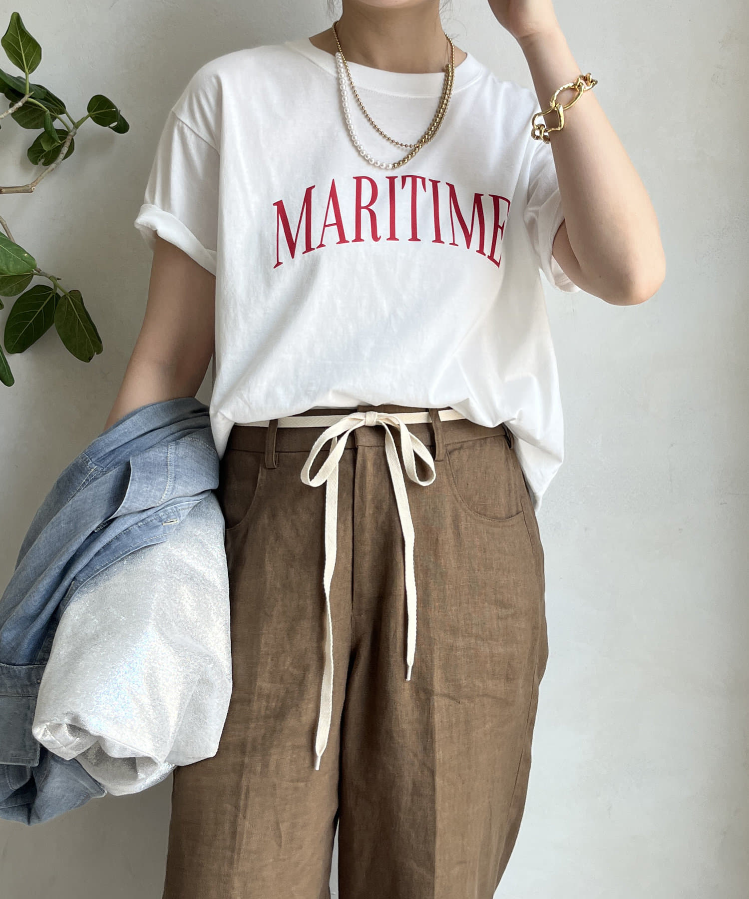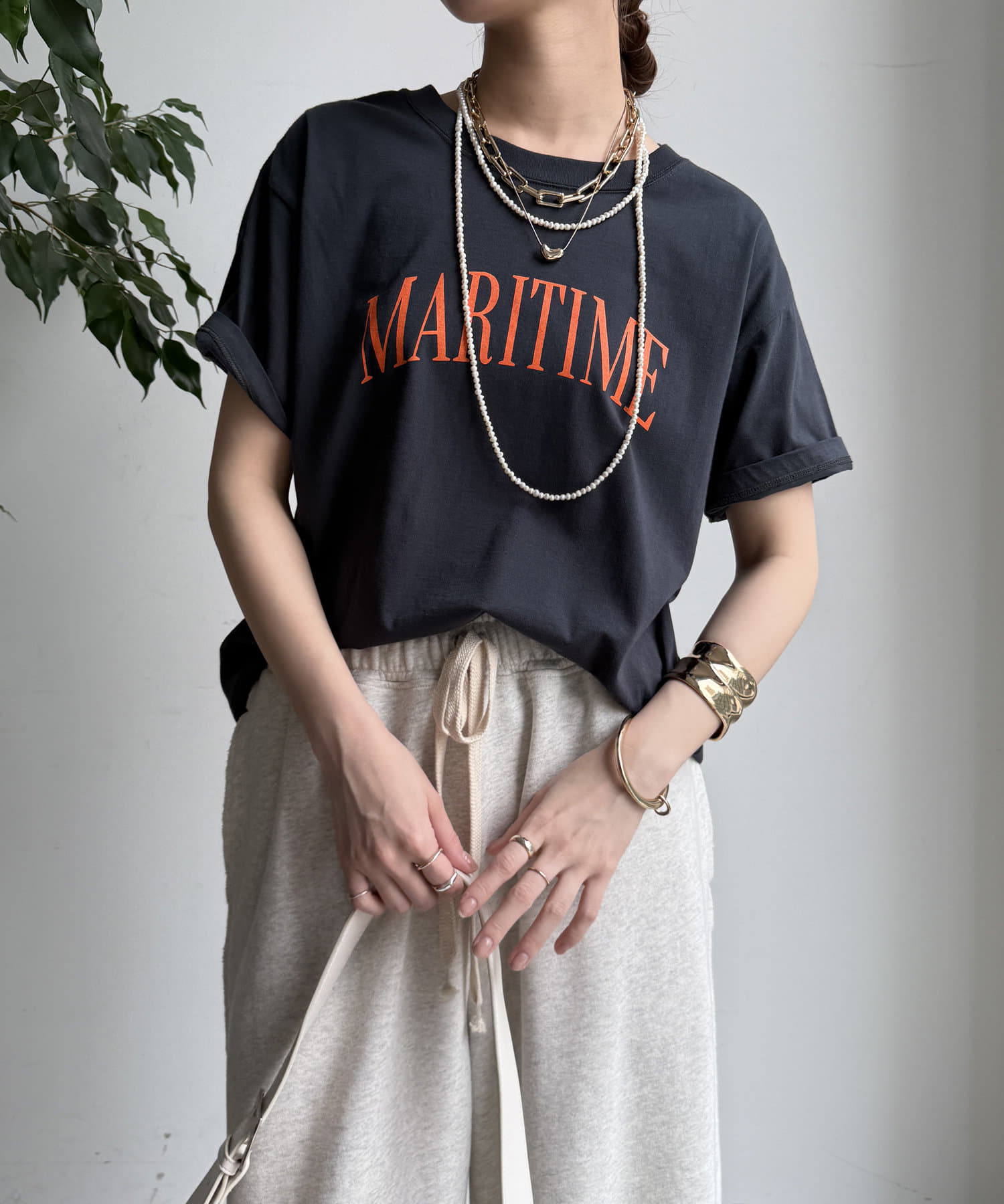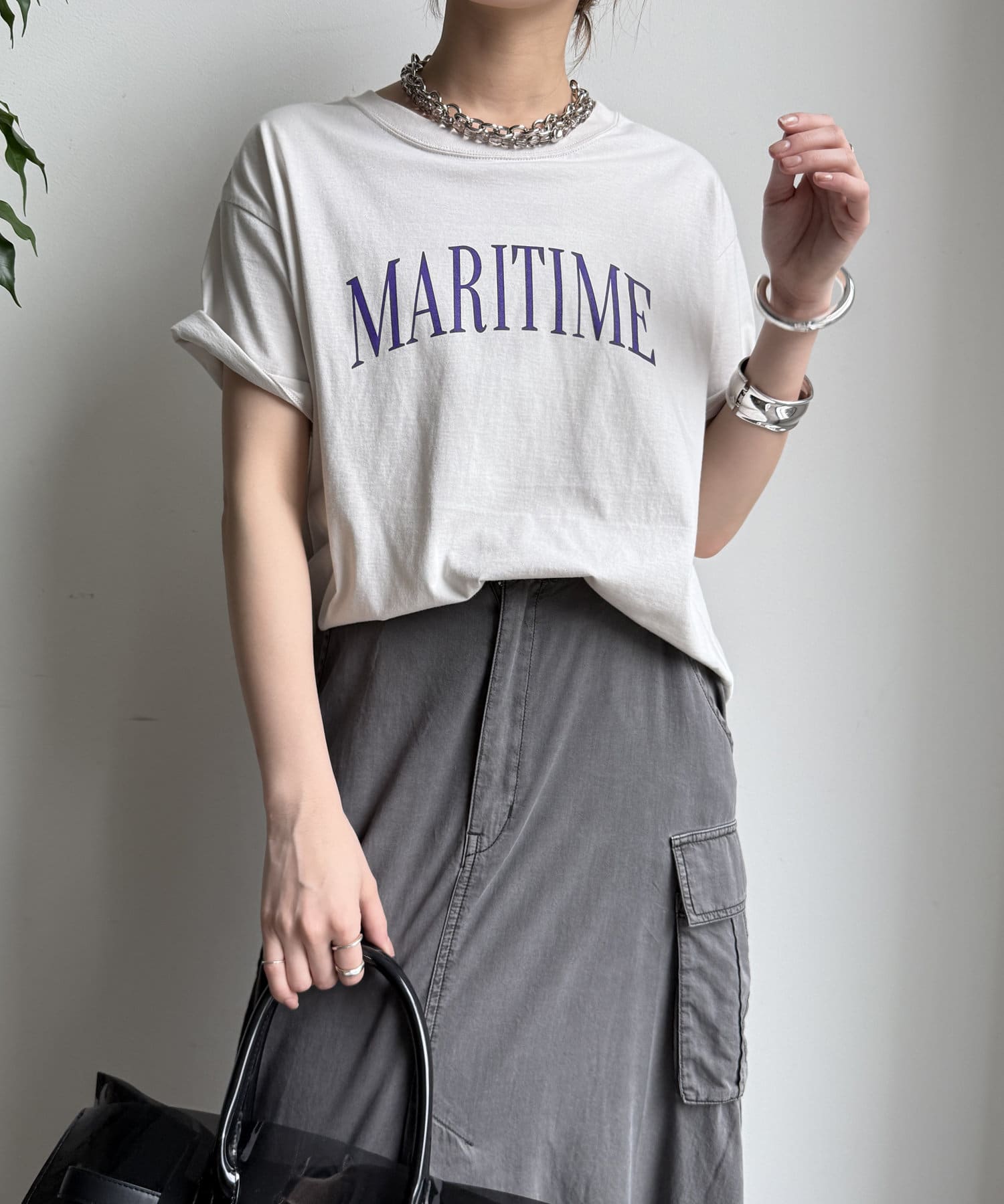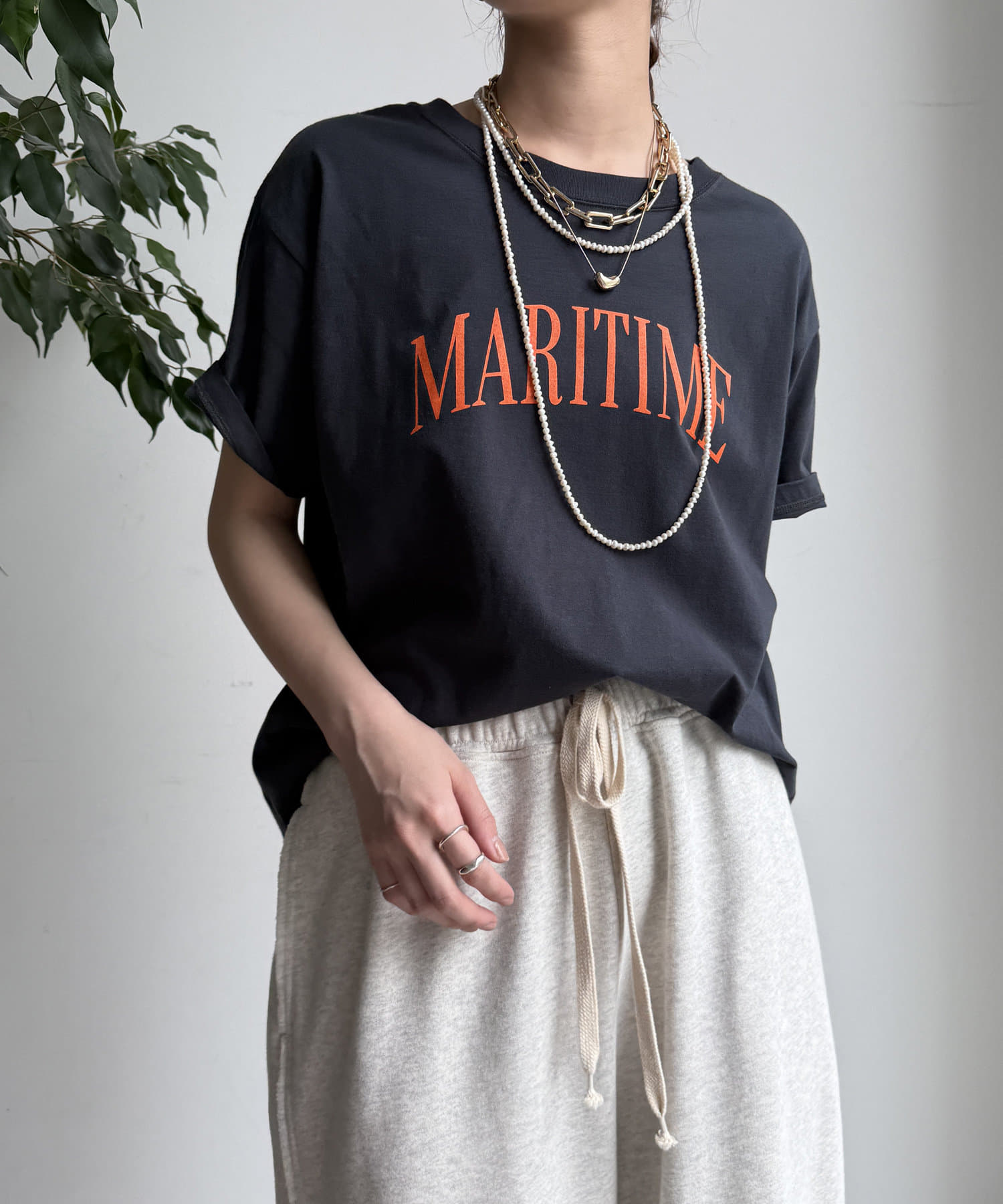 目を惹く「MARITIME」ロゴが、コーディネートの主役になるTシャツ。
