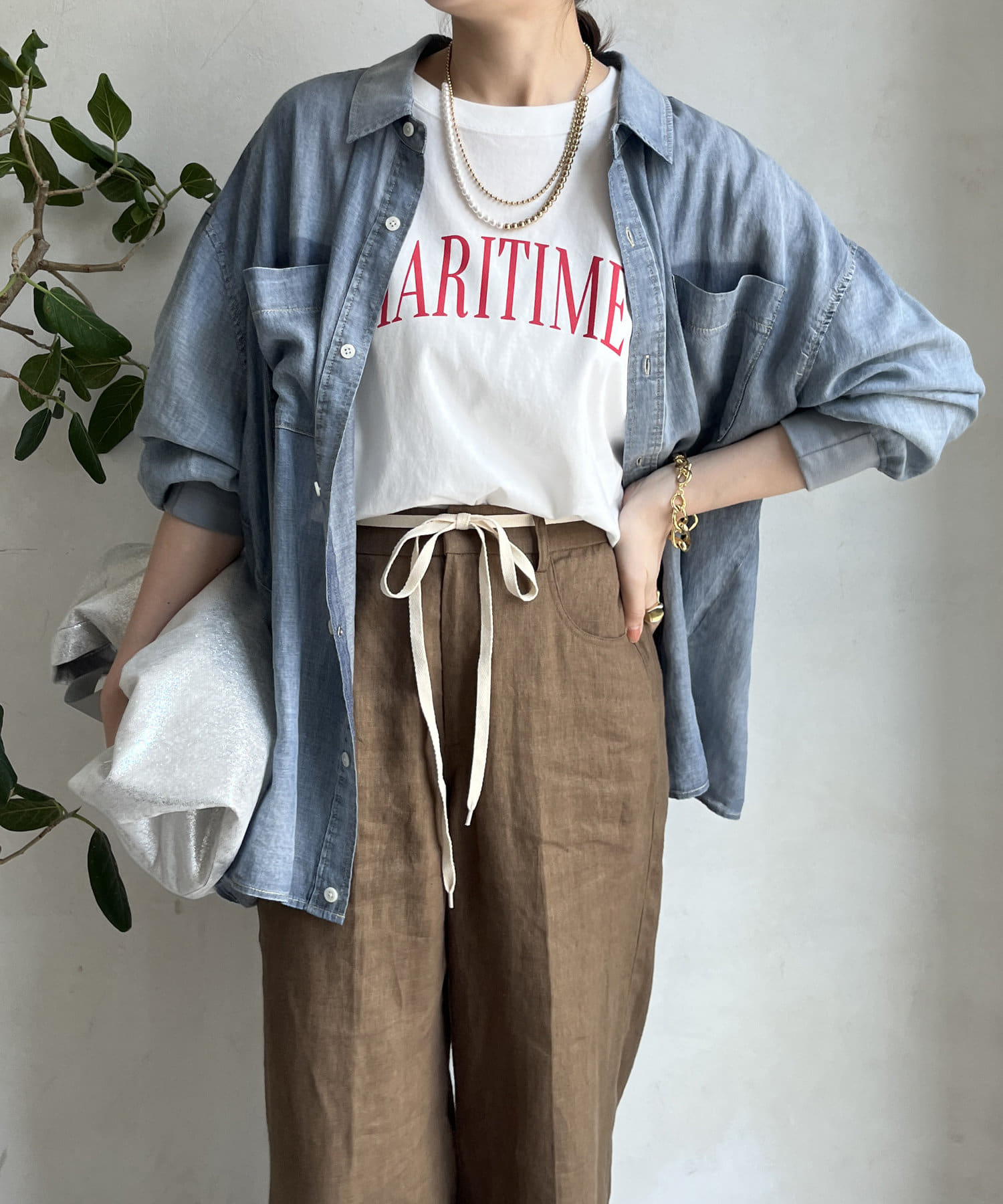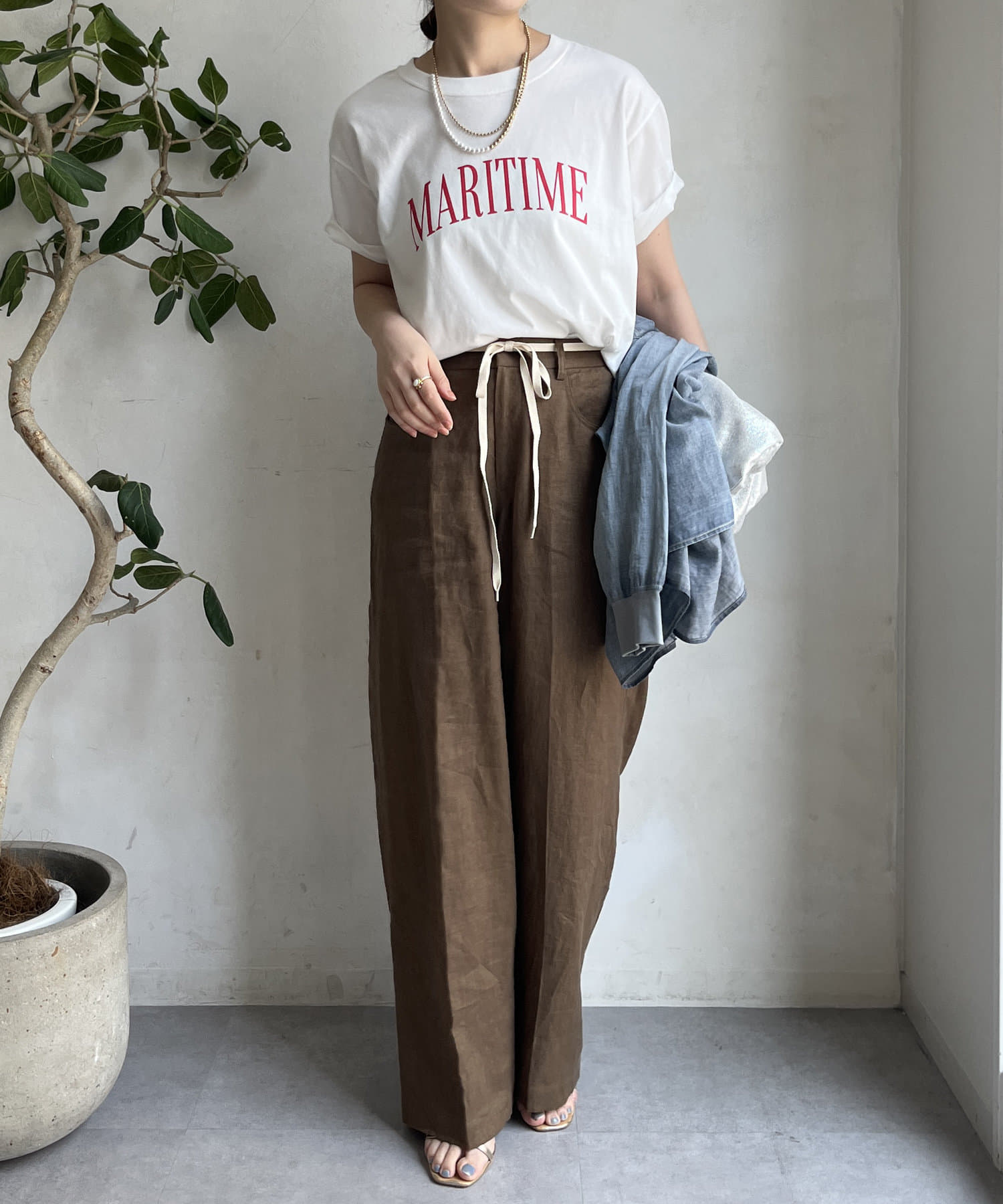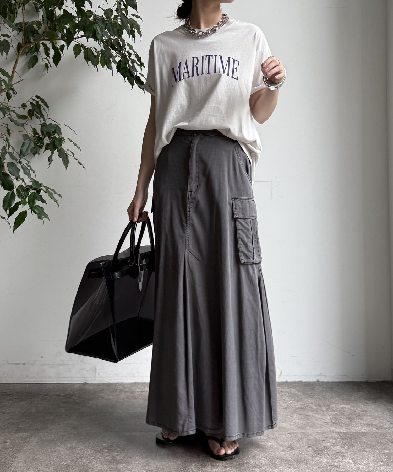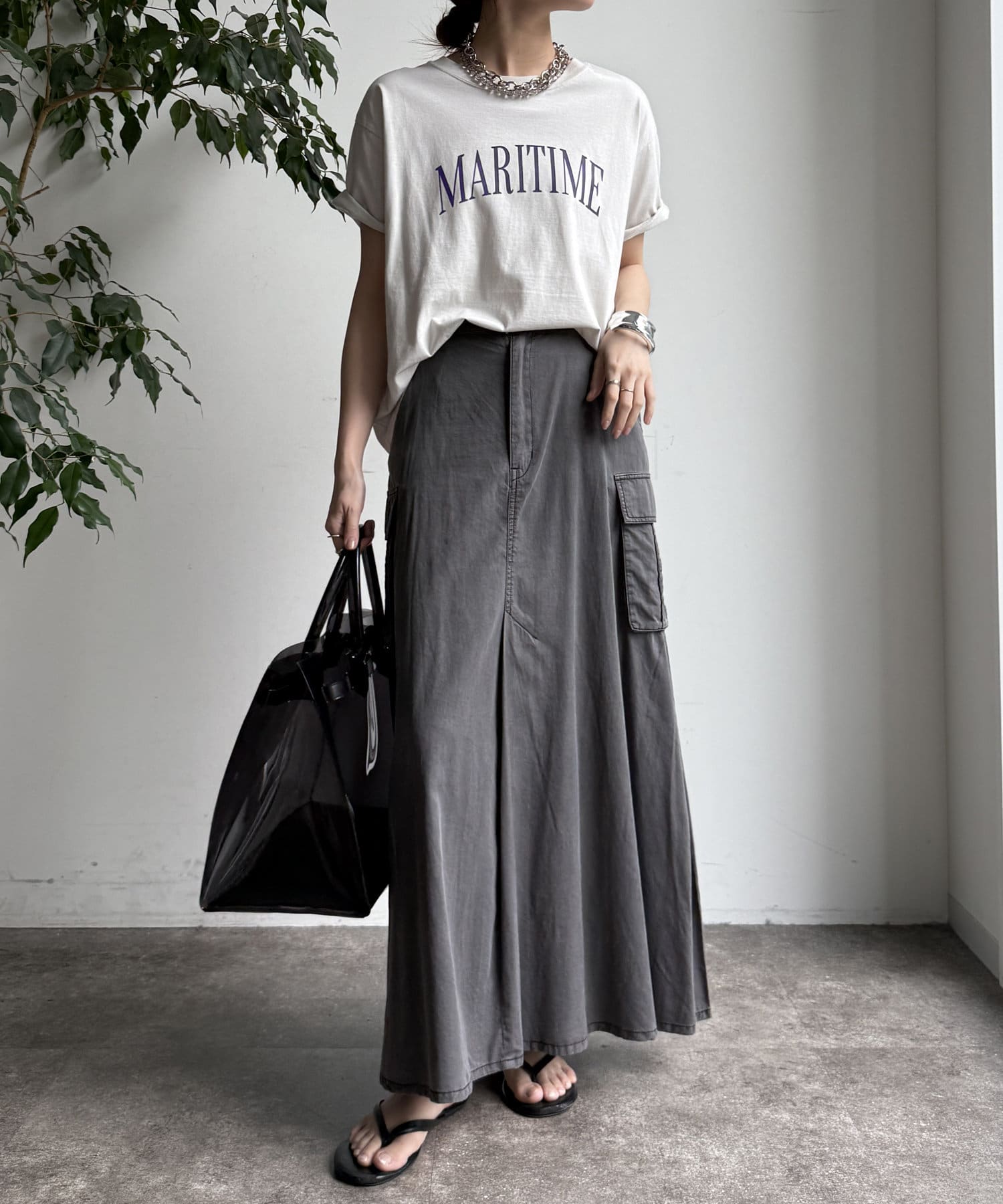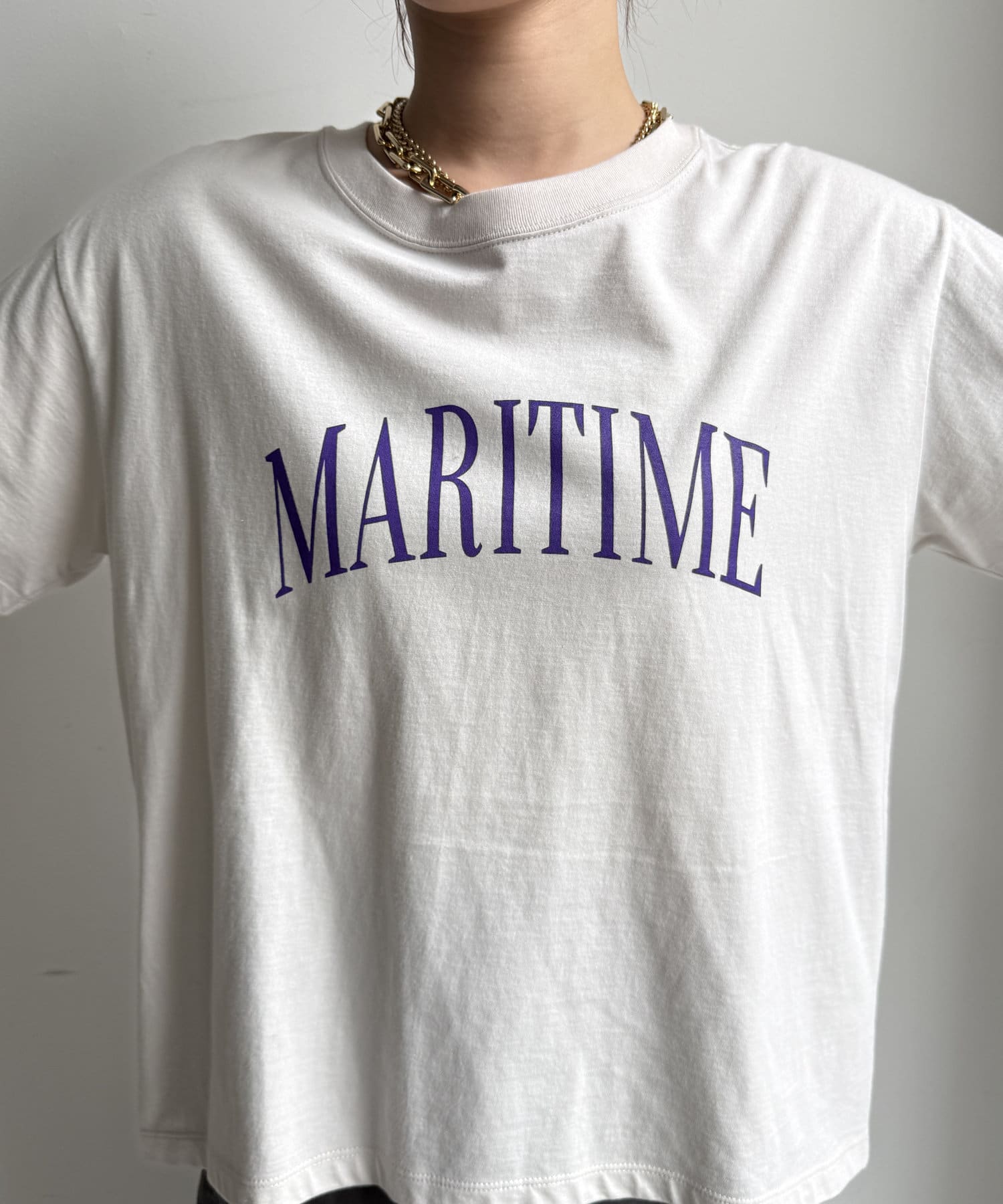 目を惹く「MARITIME」ロゴが、コーディネートの主役になるTシャツ。