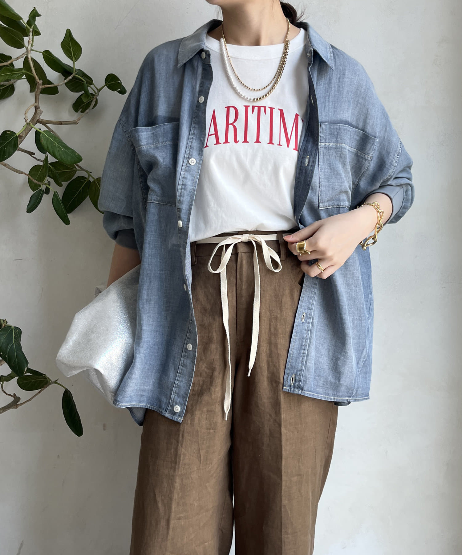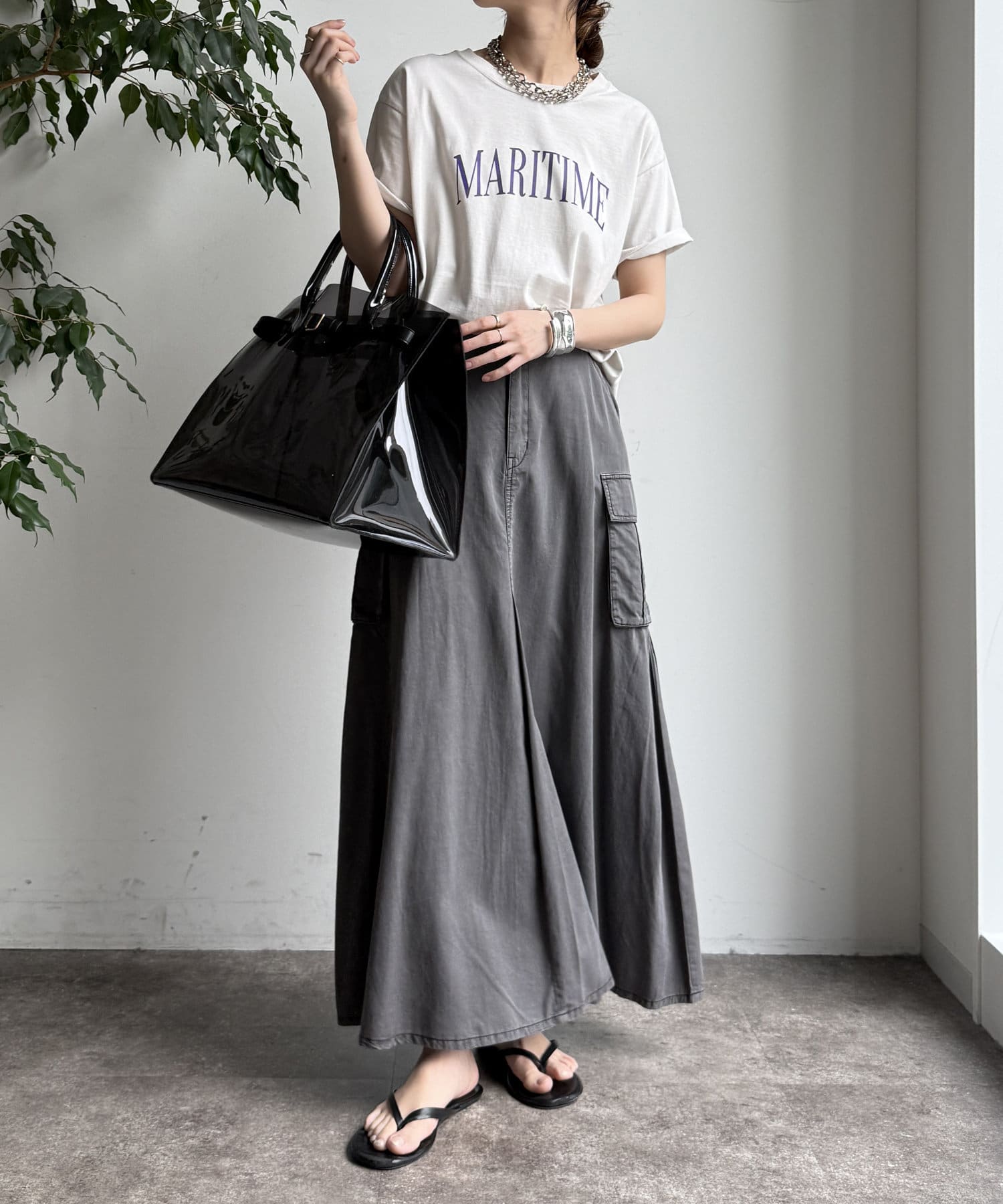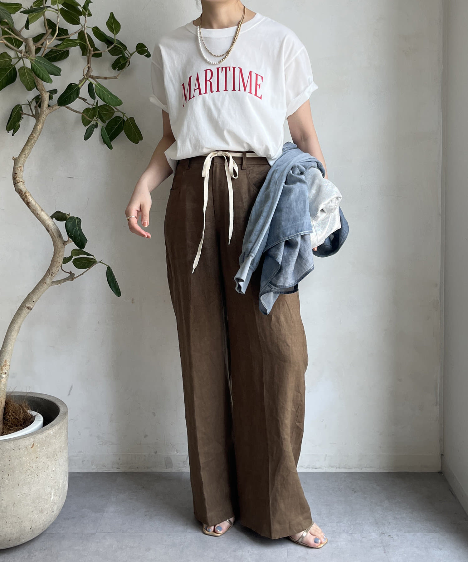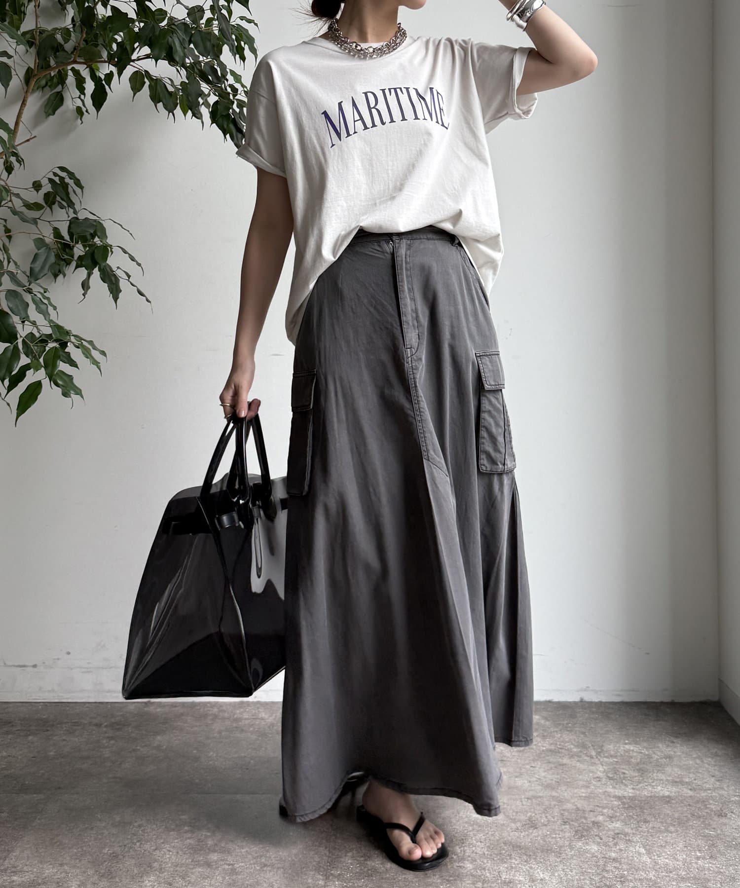 目を惹く「MARITIME」ロゴが、コーディネートの主役になるTシャツ。