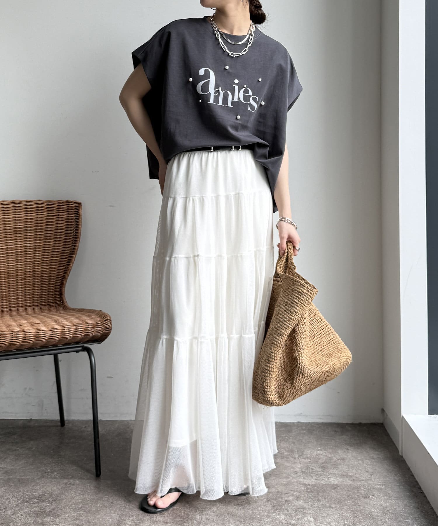 カジュアルになりすぎないシルエットで、スカートでもパンツでも