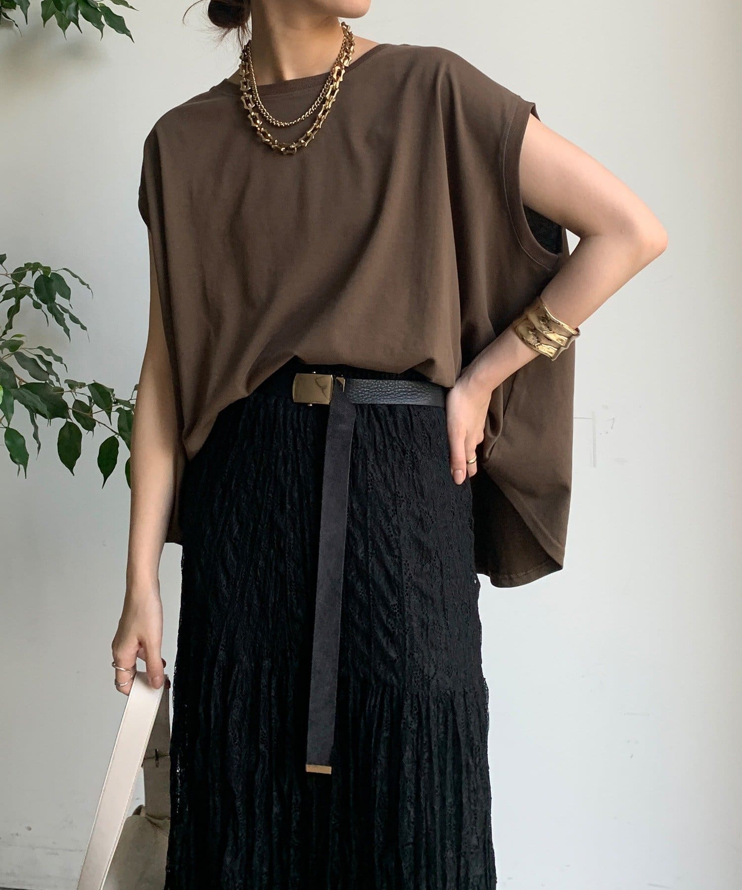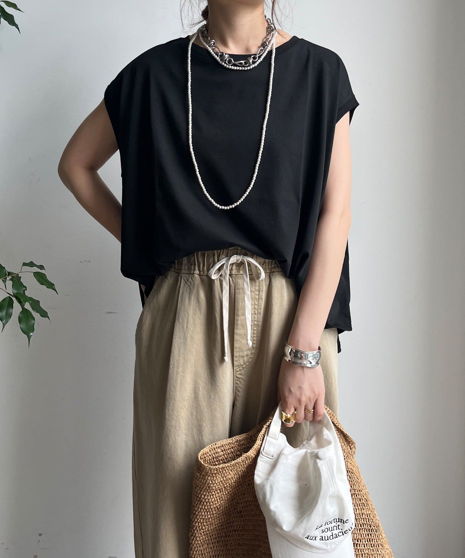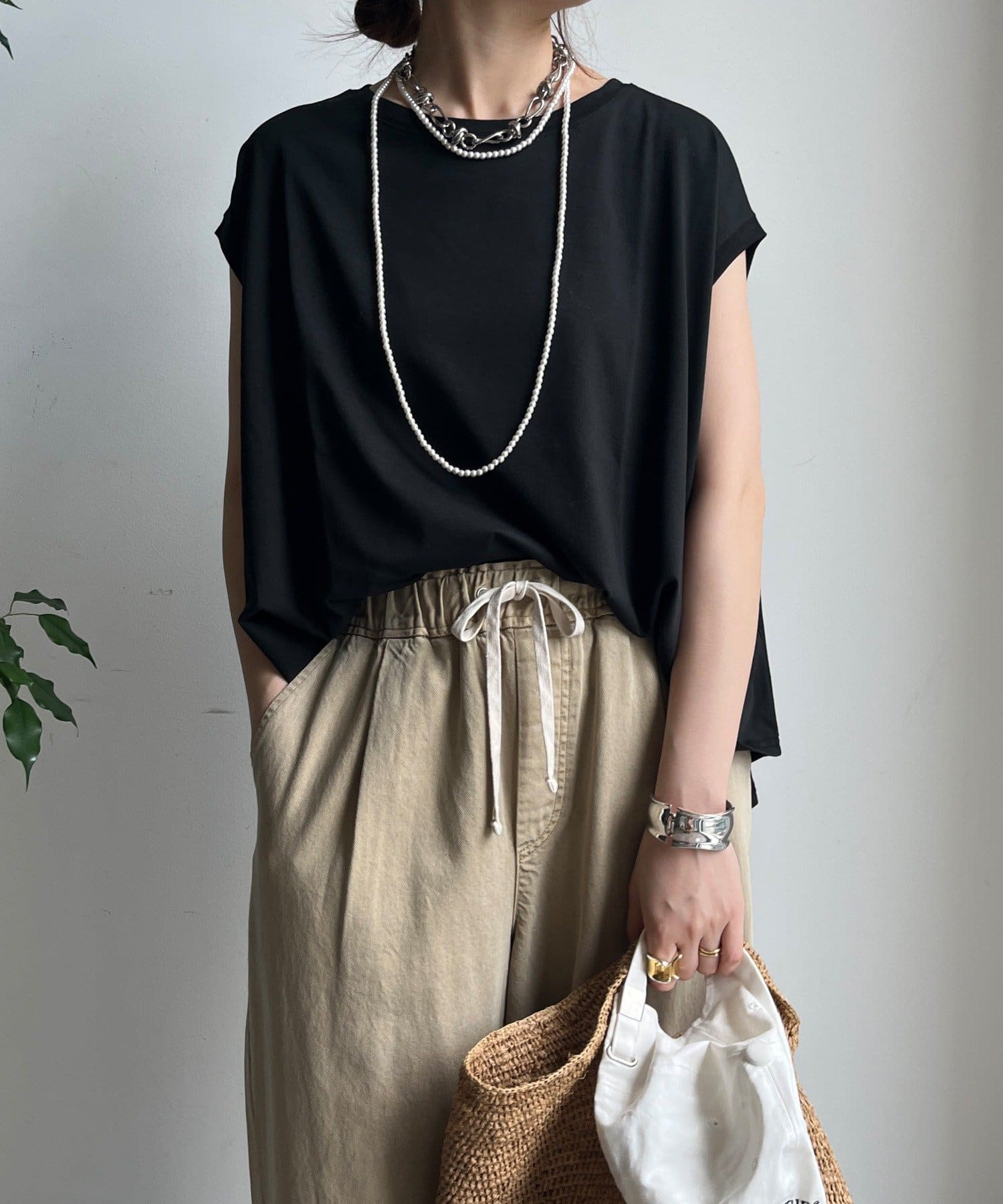 夏にぴったりのノースリーブで、涼しさを感じさせつつ、エレガントさも持ち合わせたデザイン。