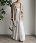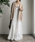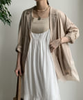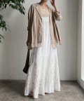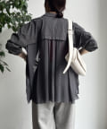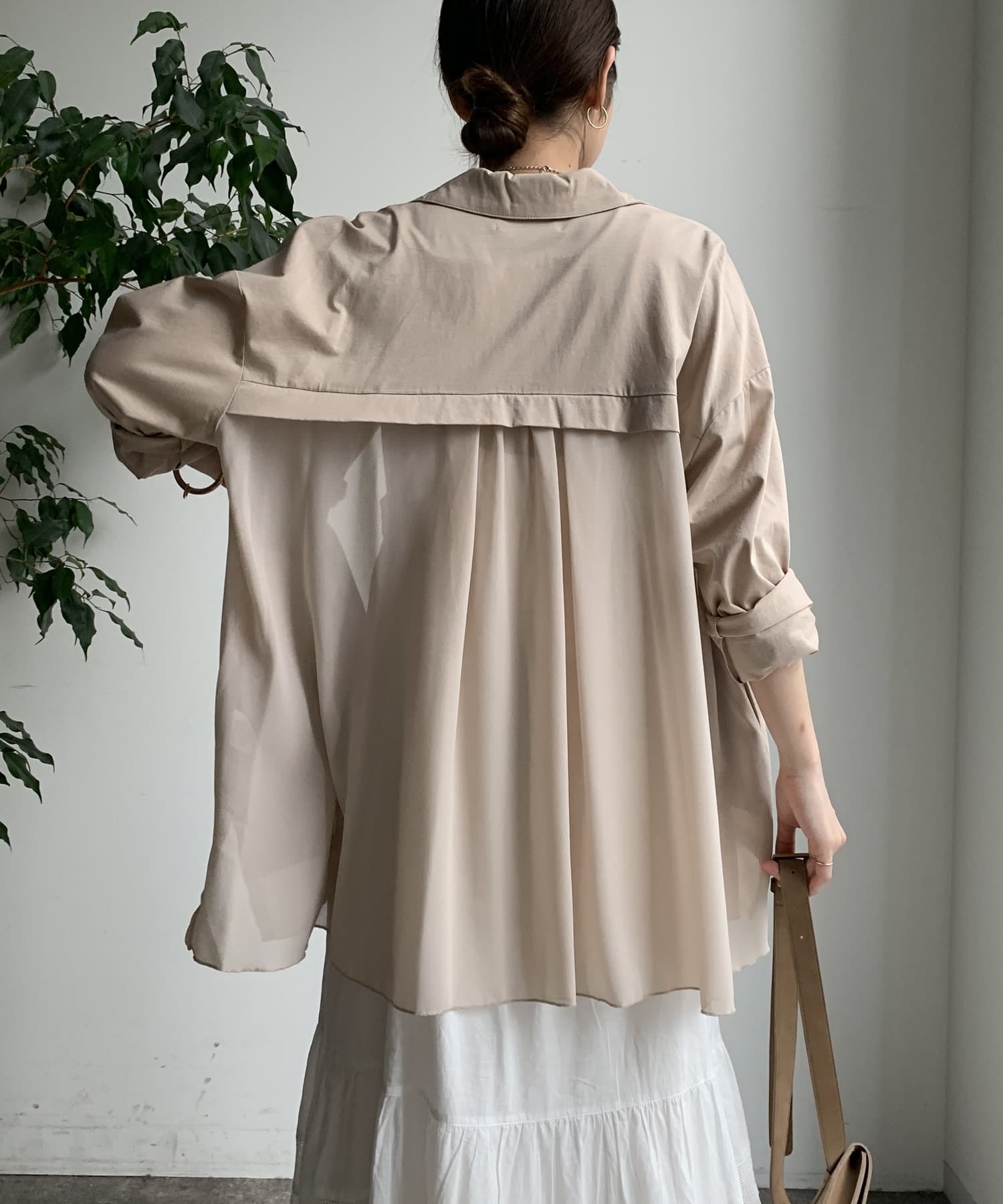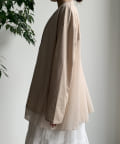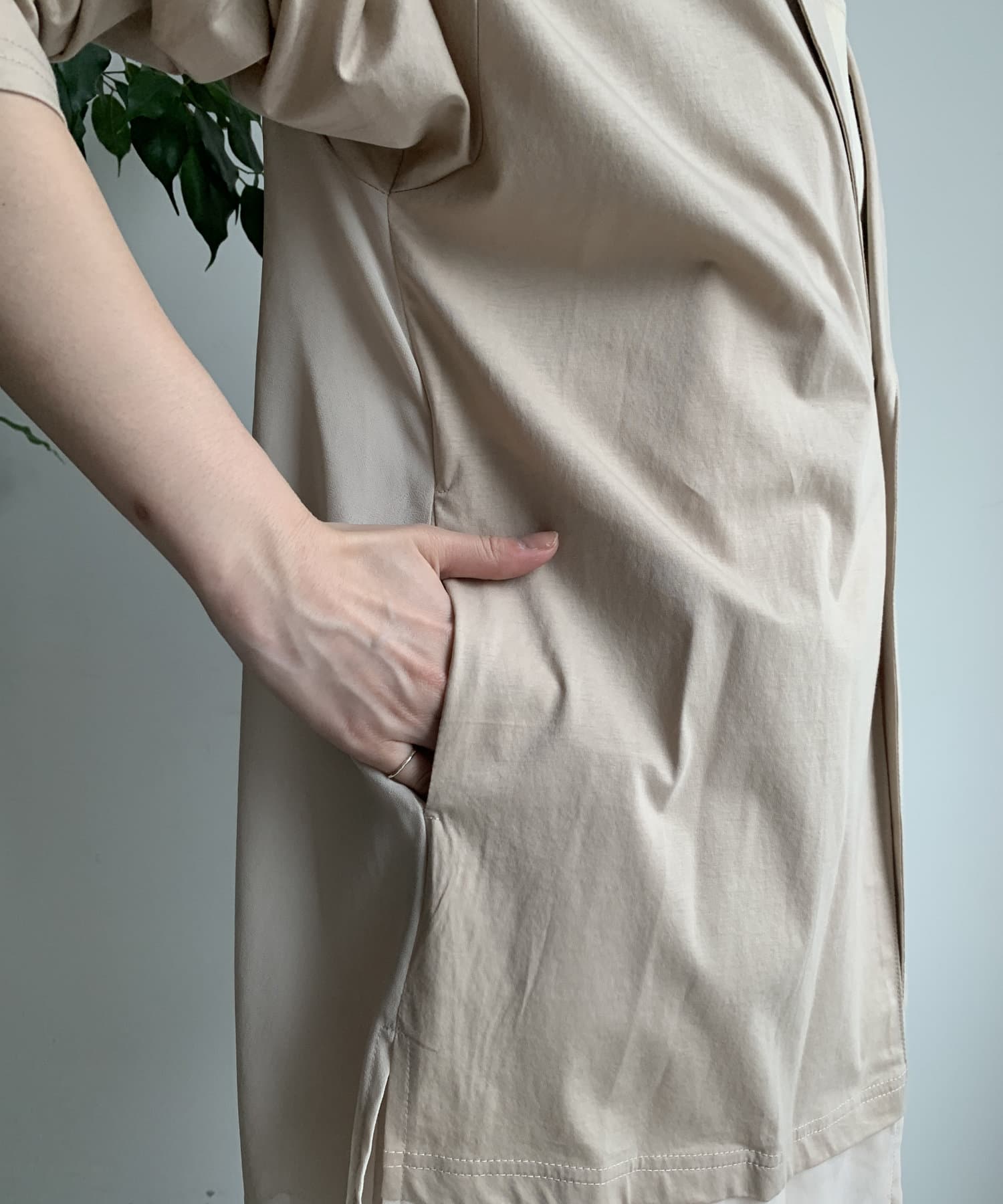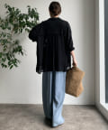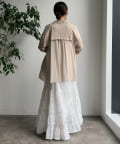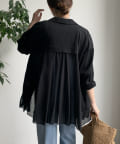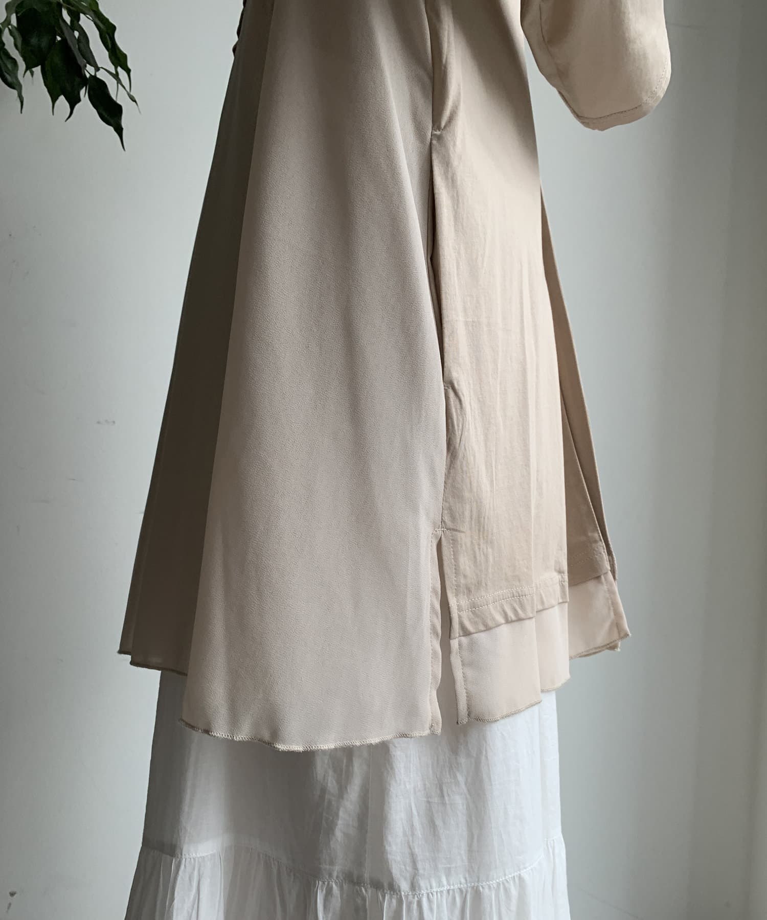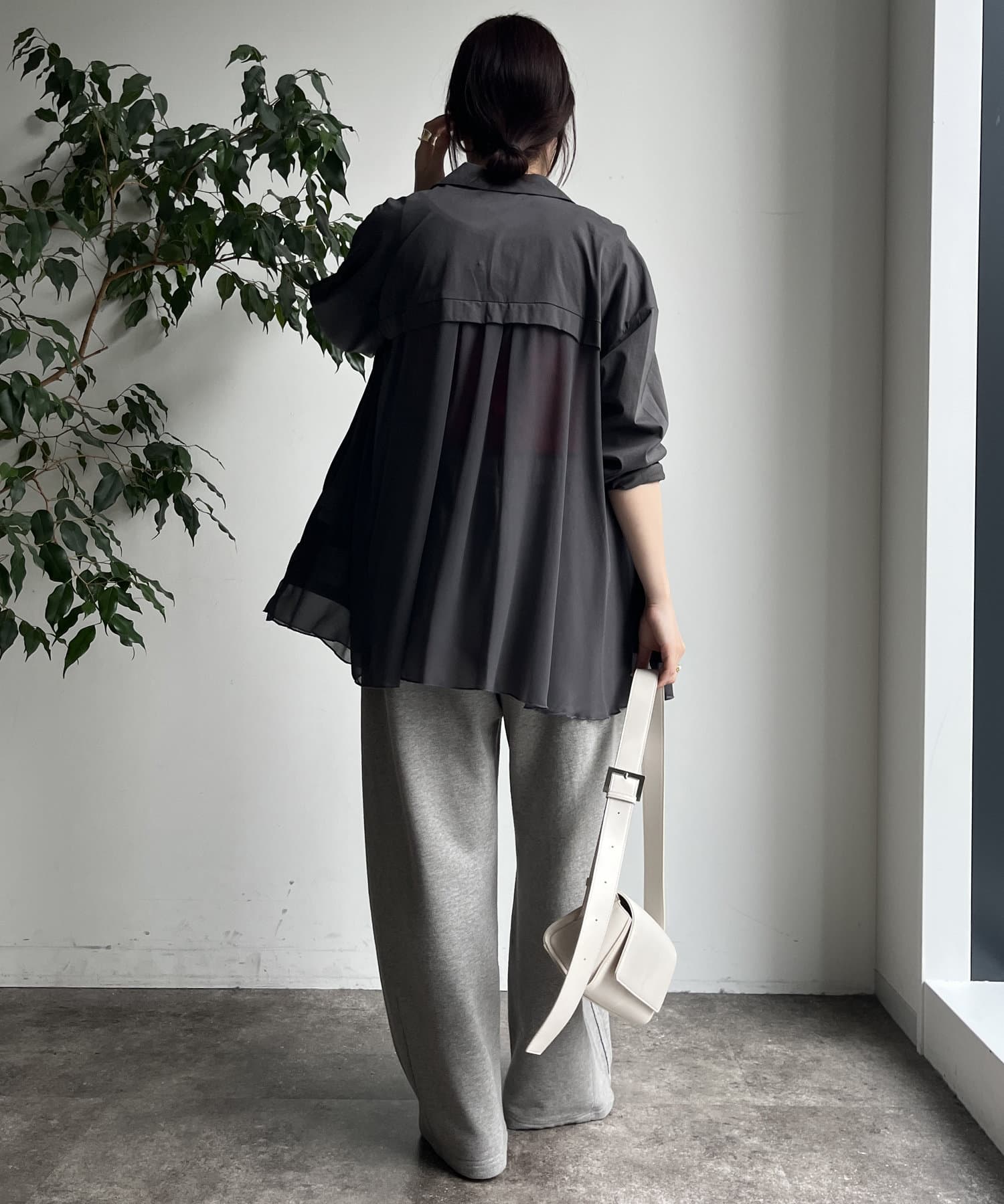 身頃はさらりとした質感の生地、裾部分は透け感のあるジョーゼット素材で切り替えることで、奥行きのある表情に。