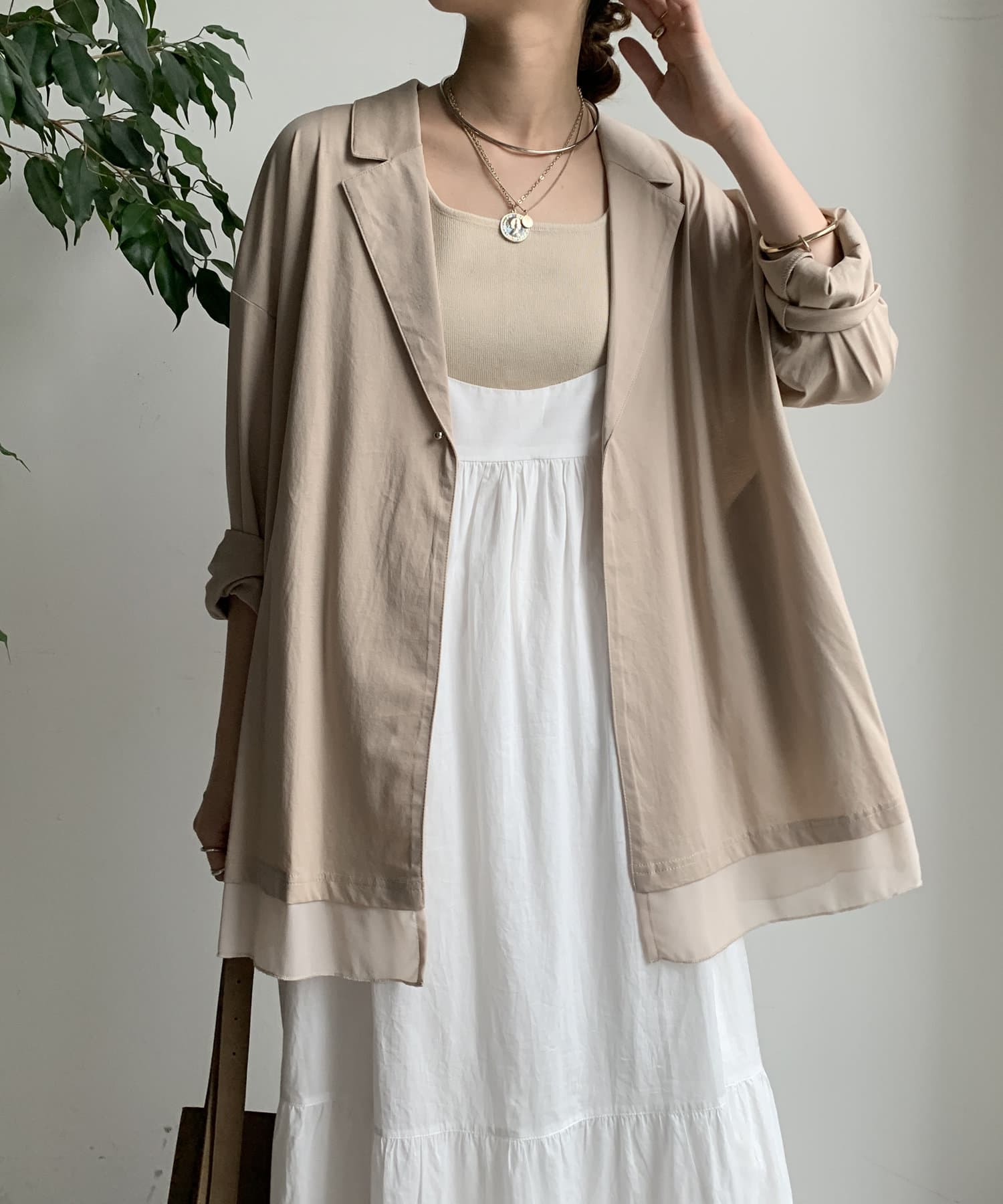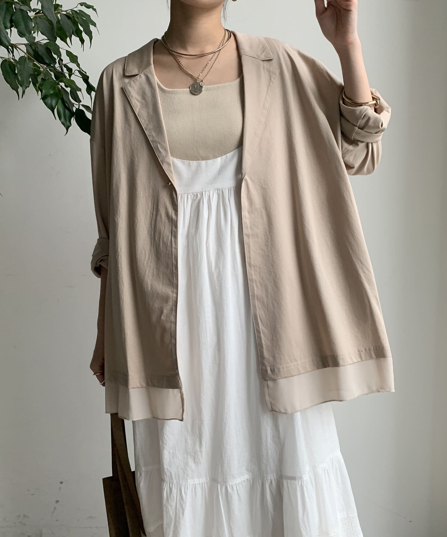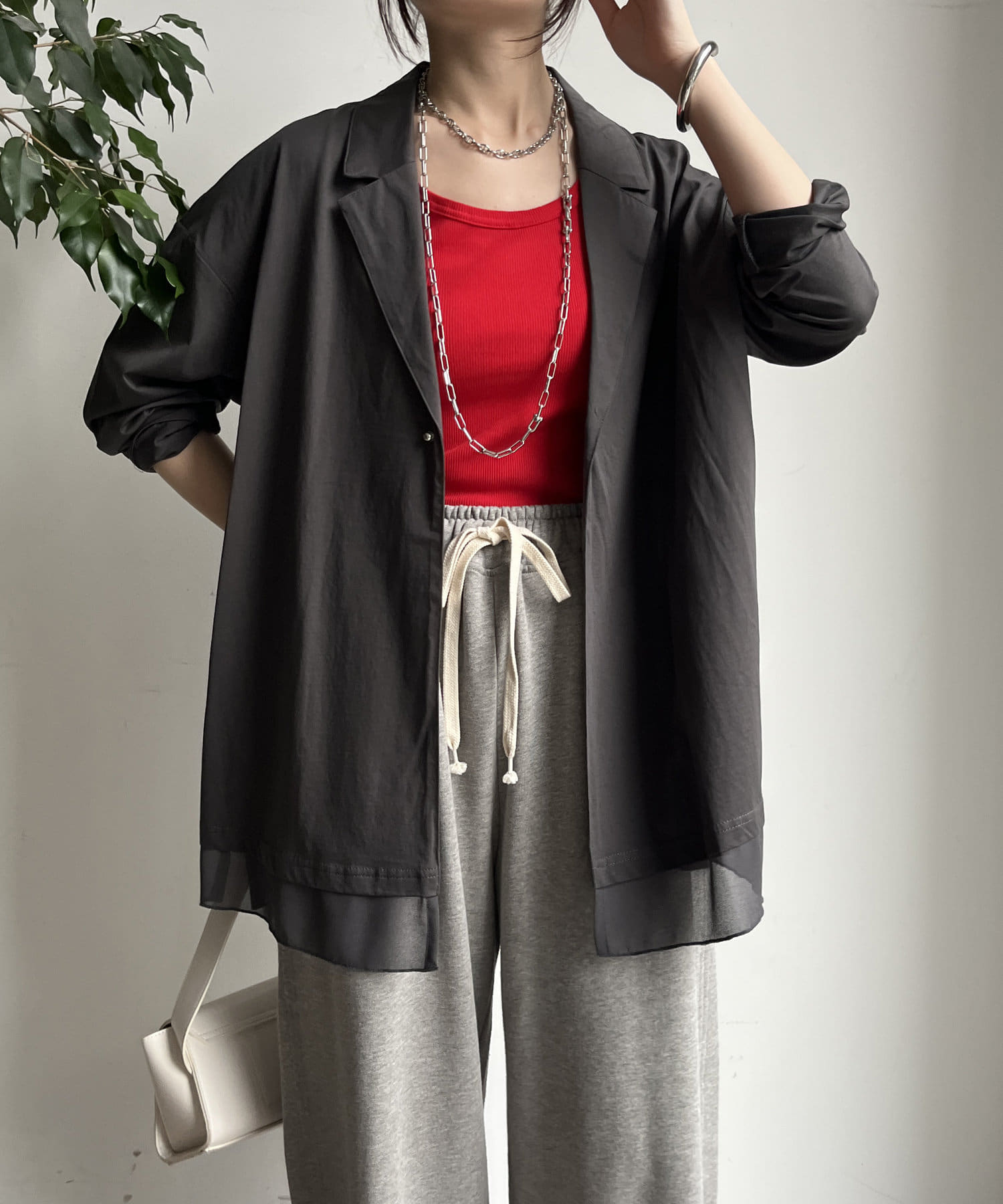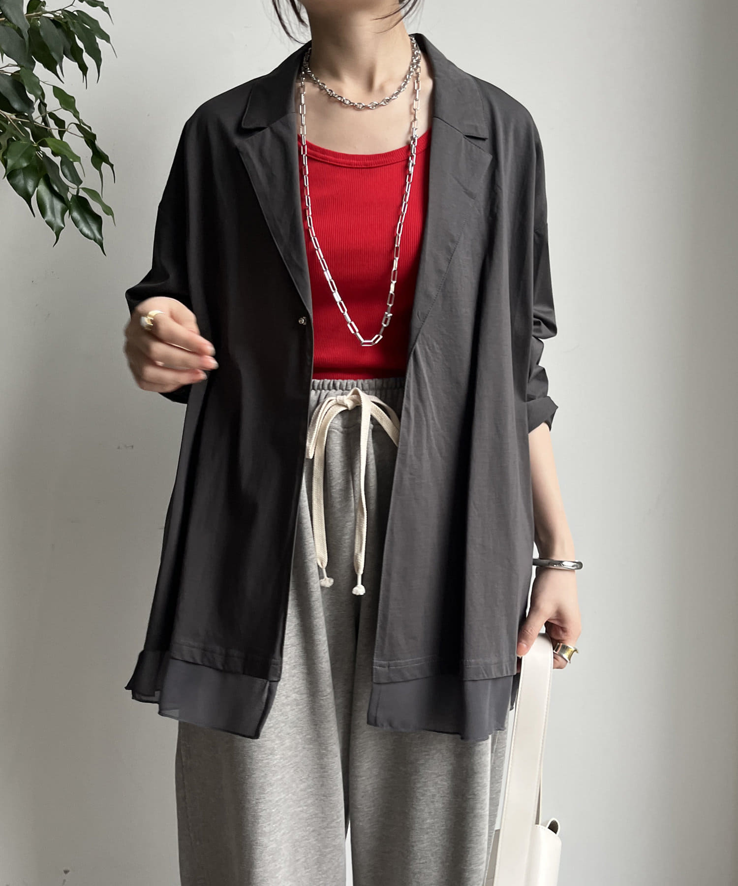 大人の抜け感を演出するジョーゼット切替ジャケット