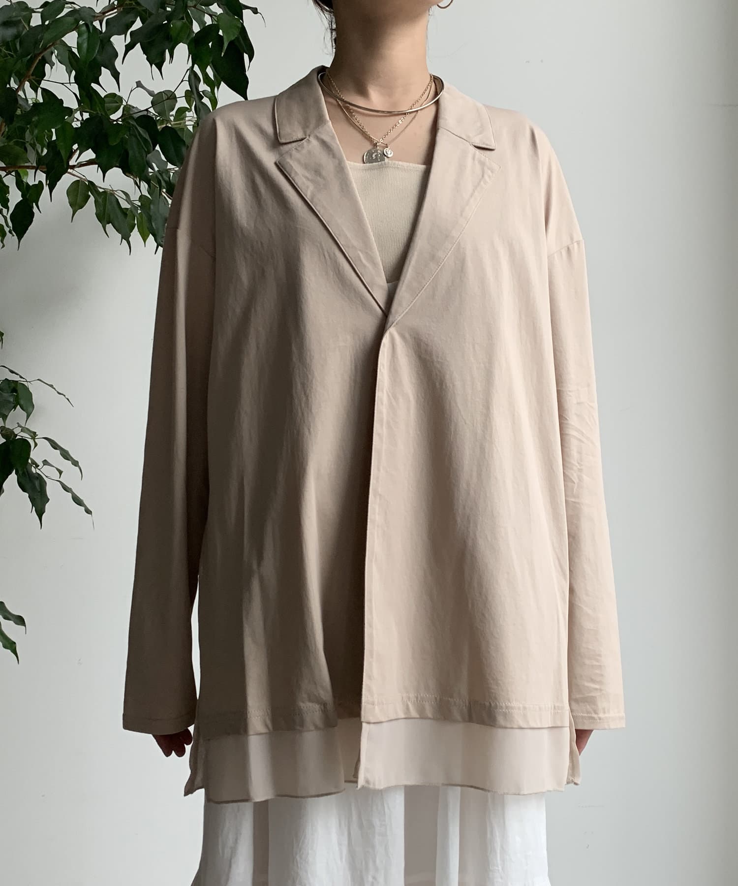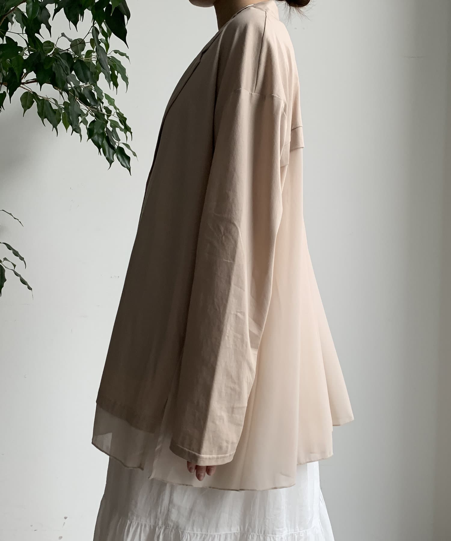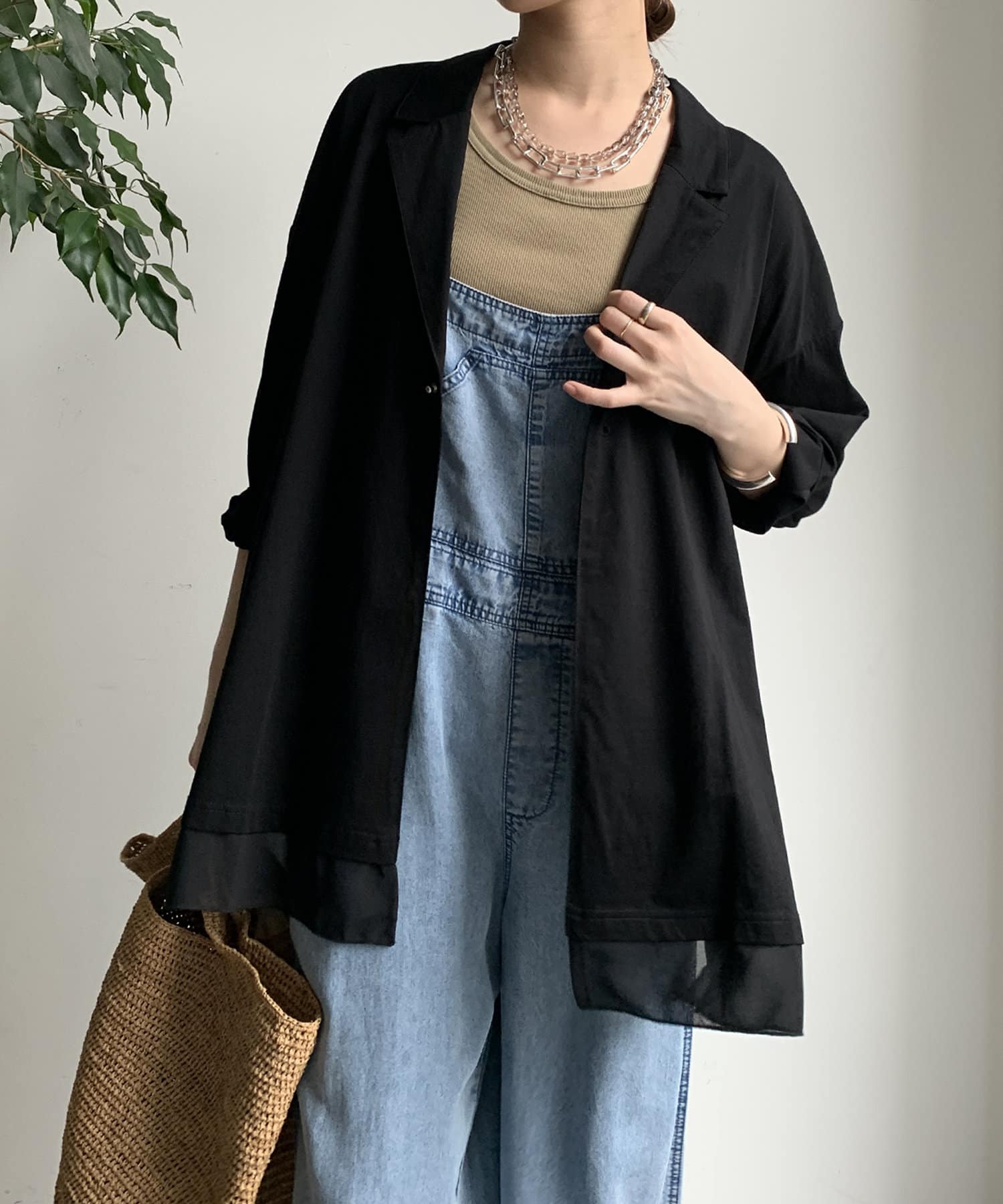 大人の抜け感を演出するジョーゼット切替ジャケット