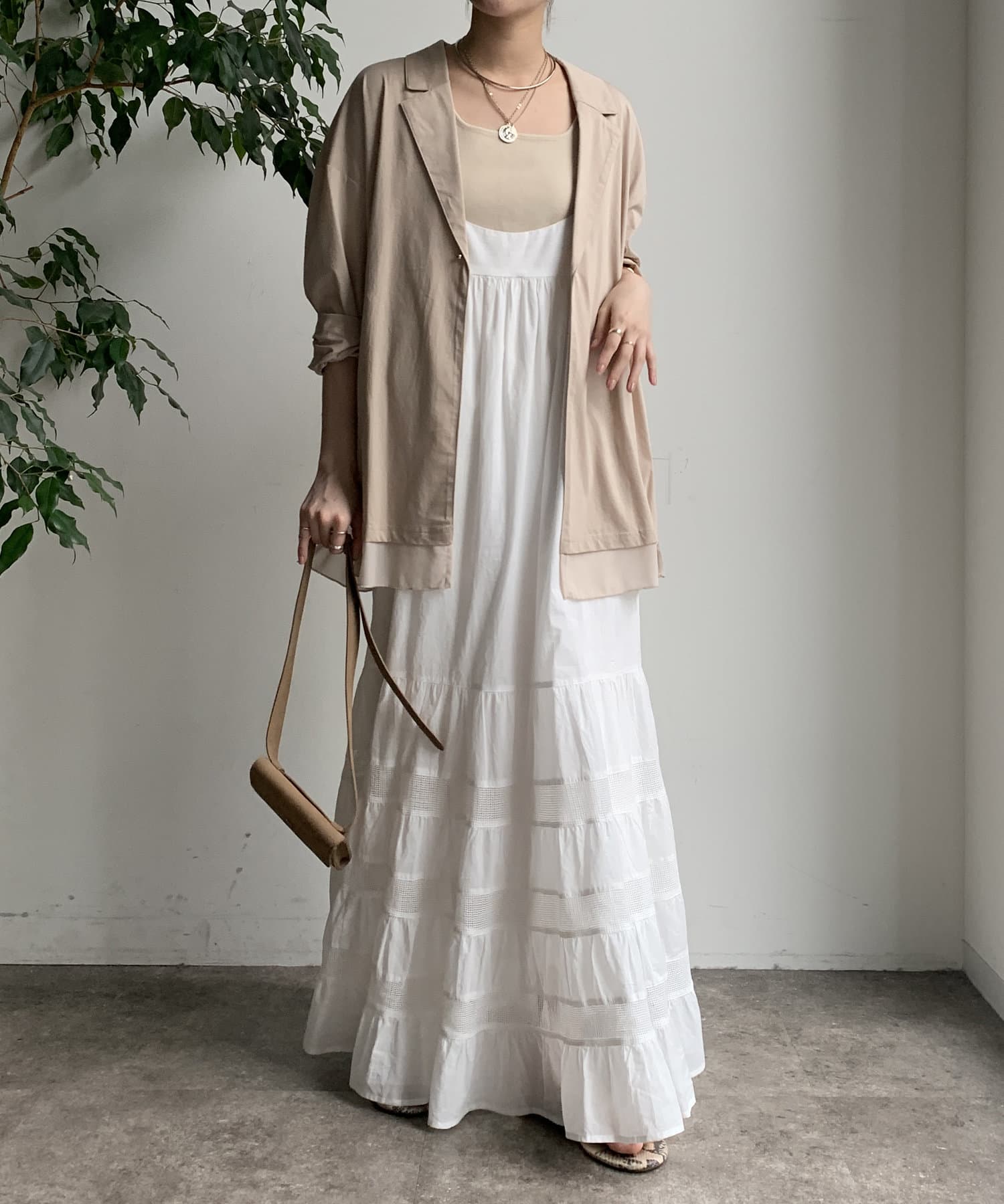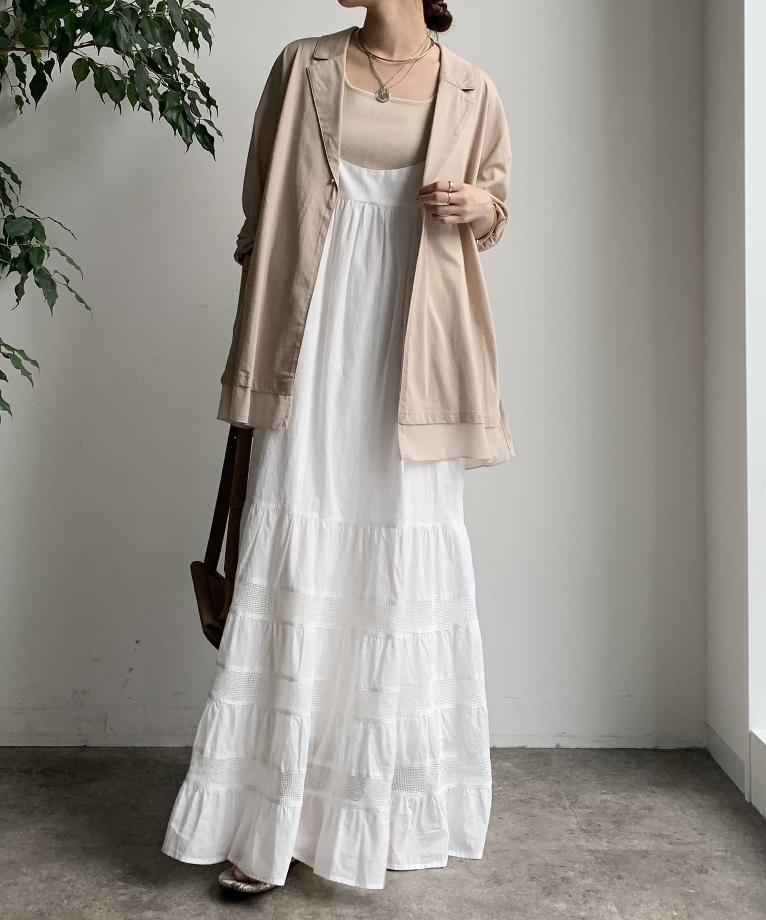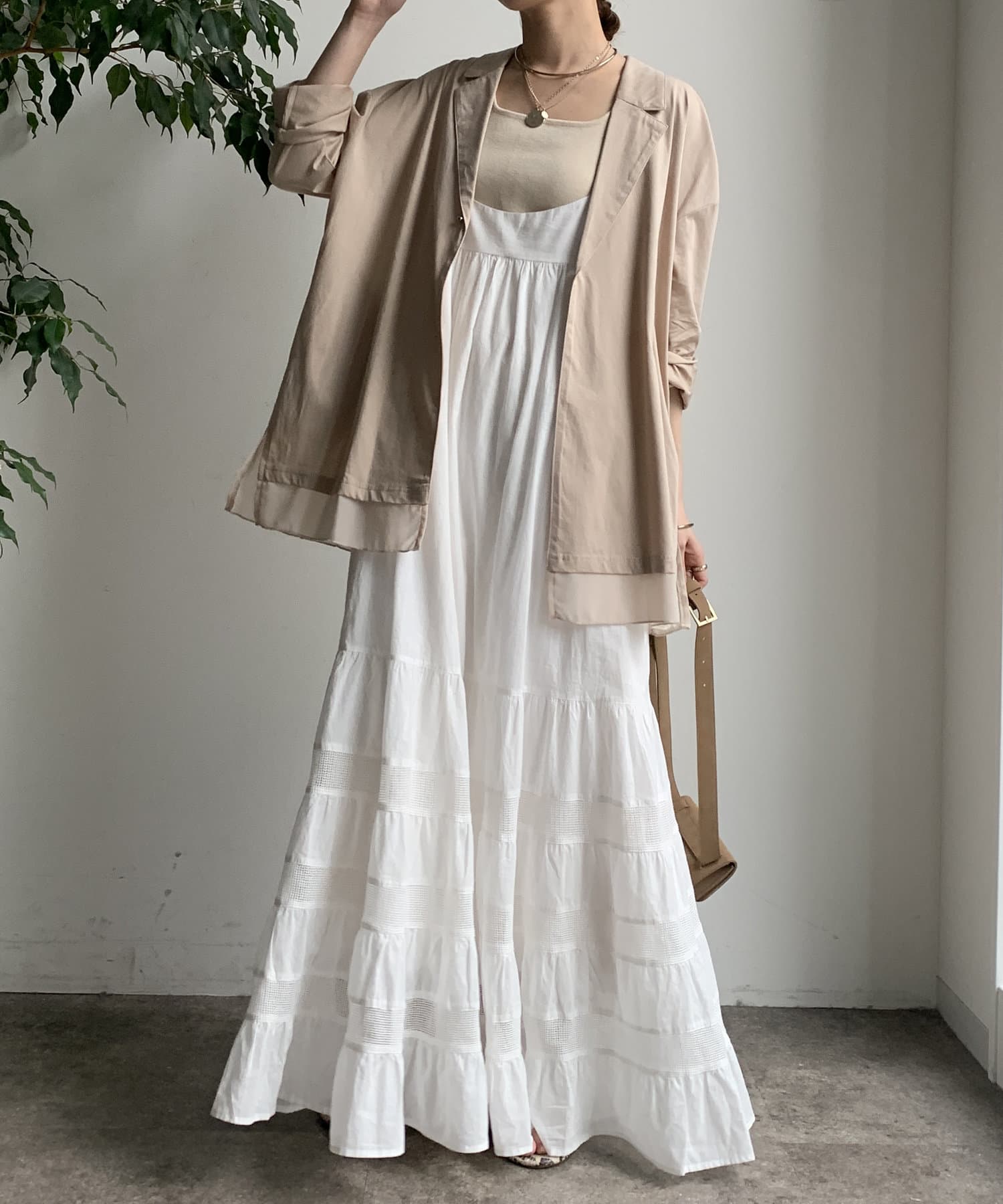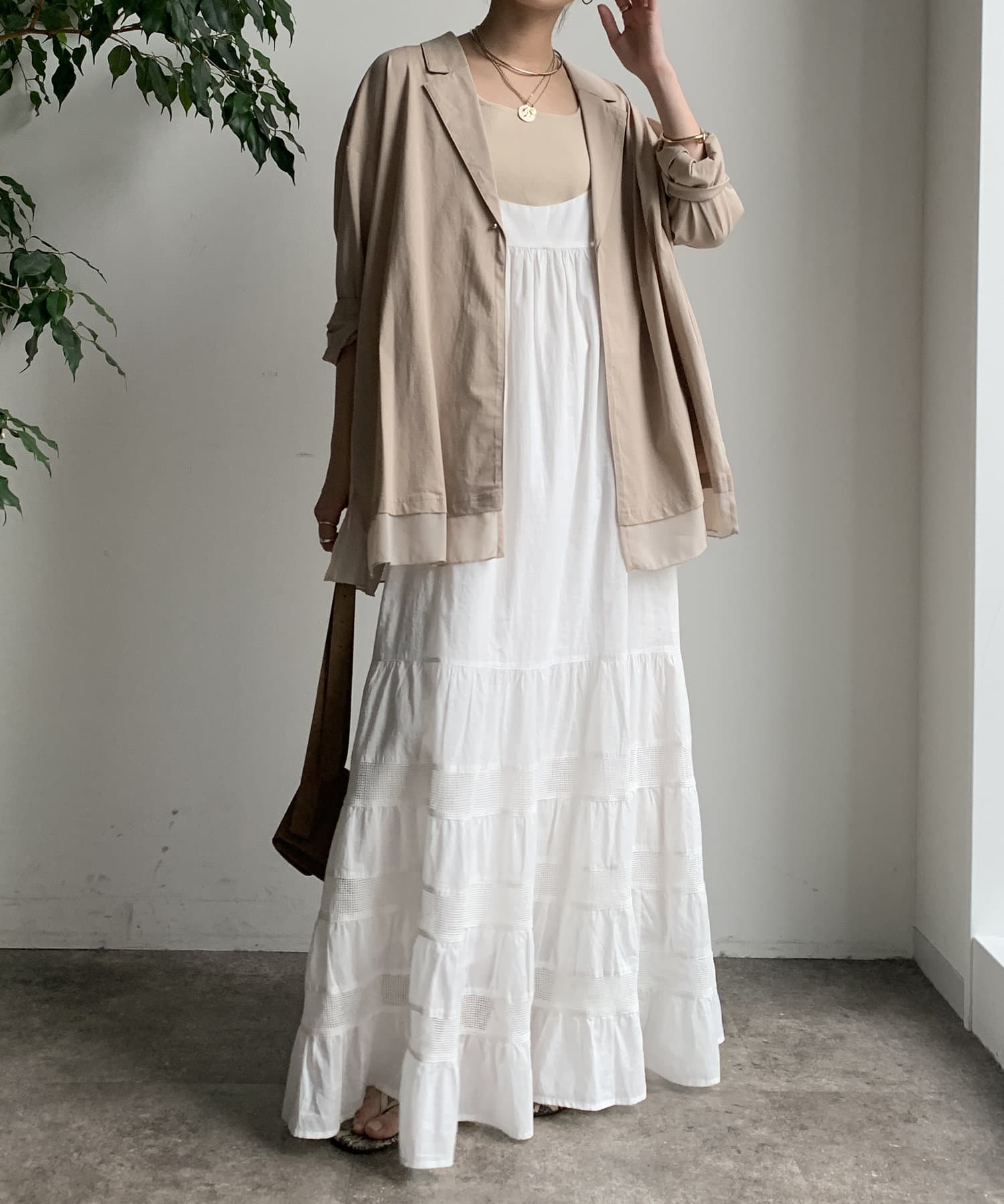 大人の抜け感を演出するジョーゼット切替ジャケット