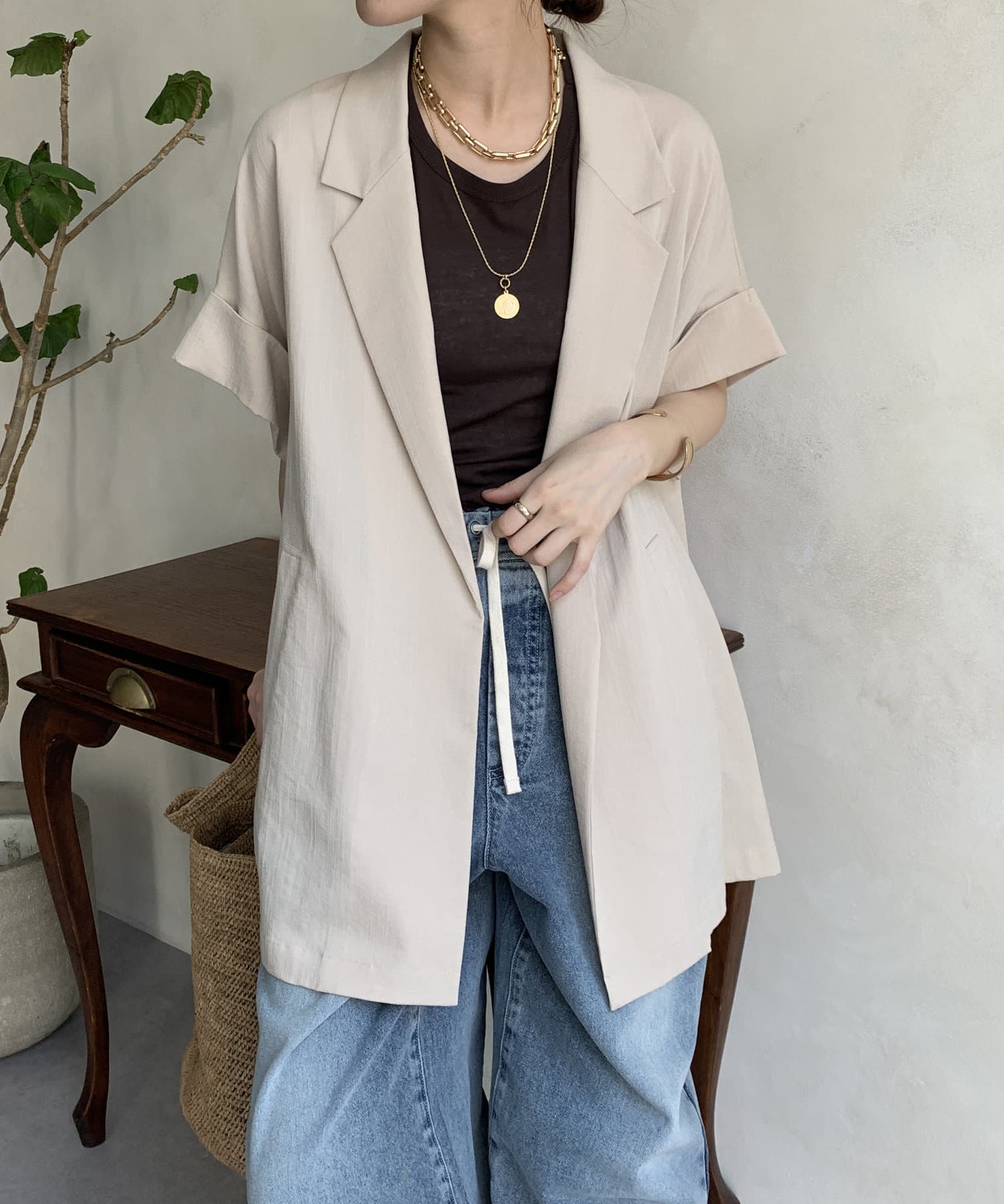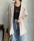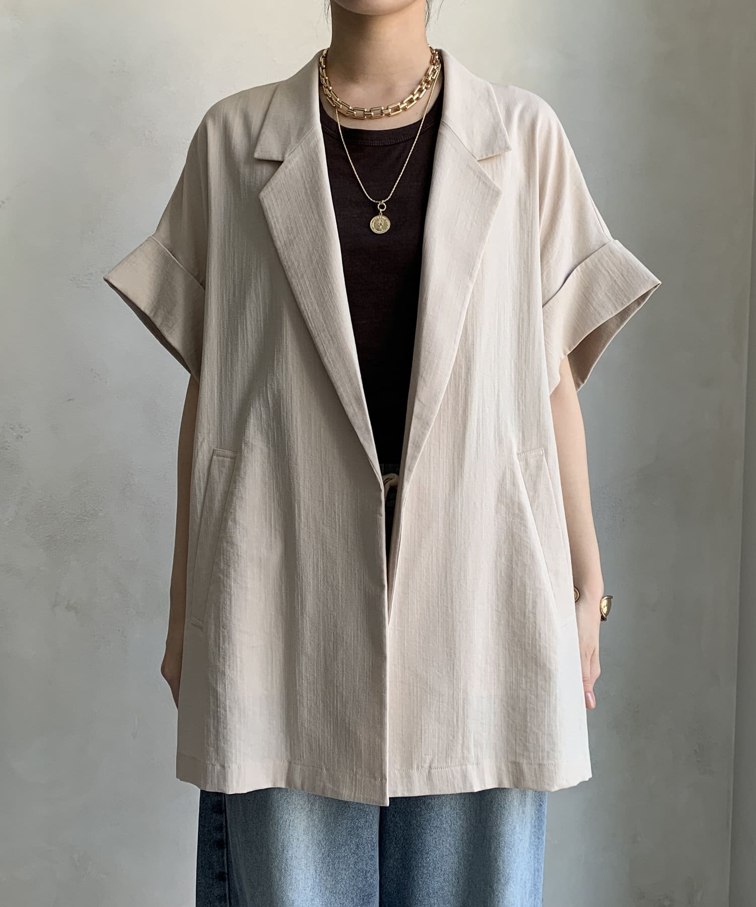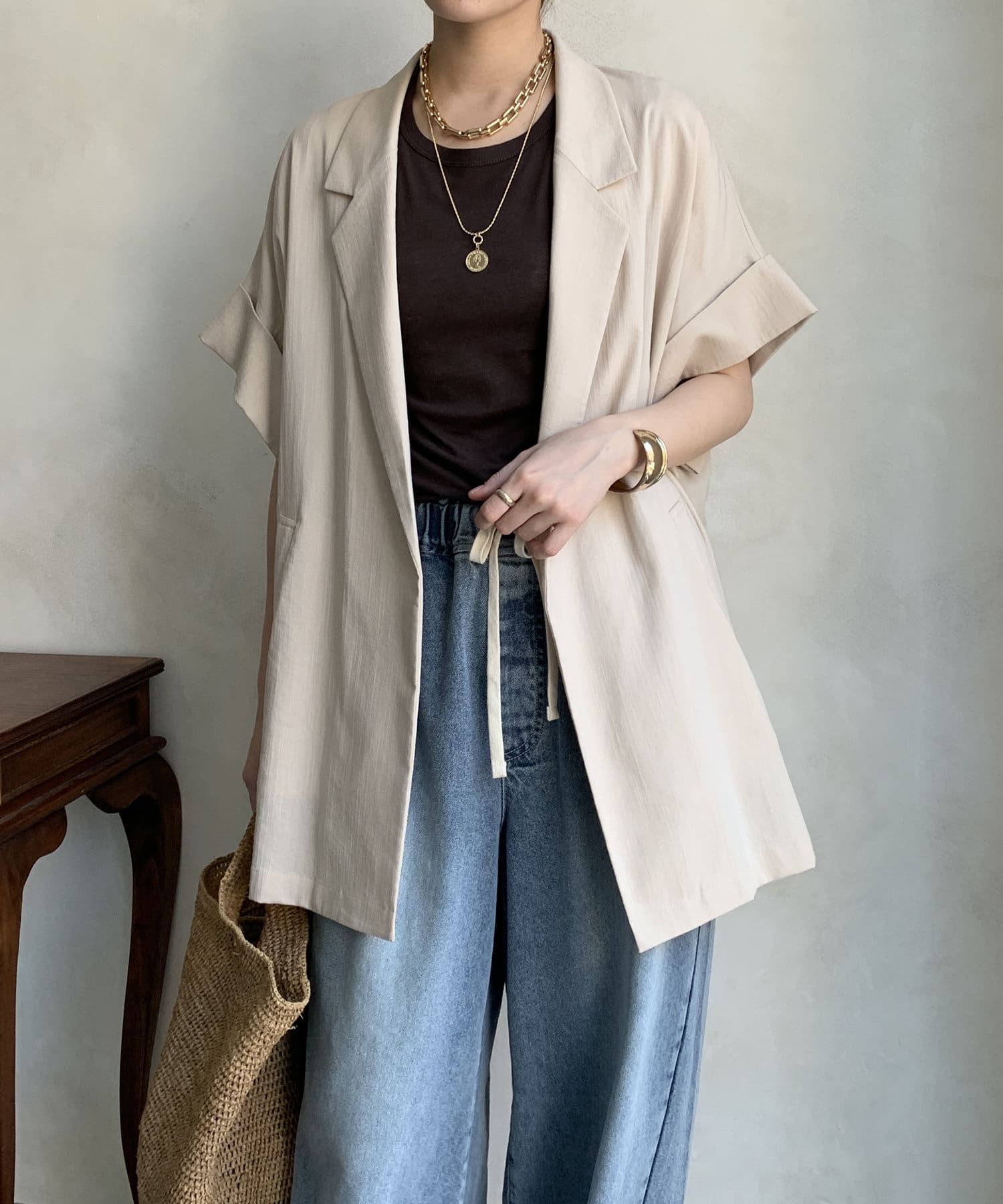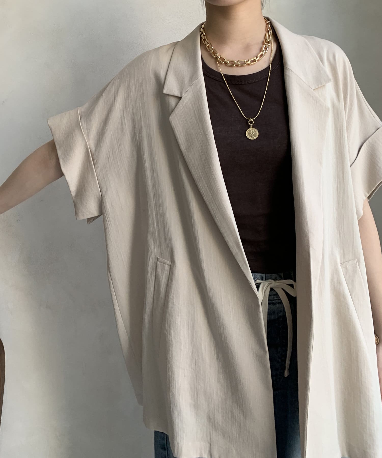ボタンレスデザインと、かっちり見えすぎない素材感でリラクシーな印象を与えます!