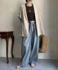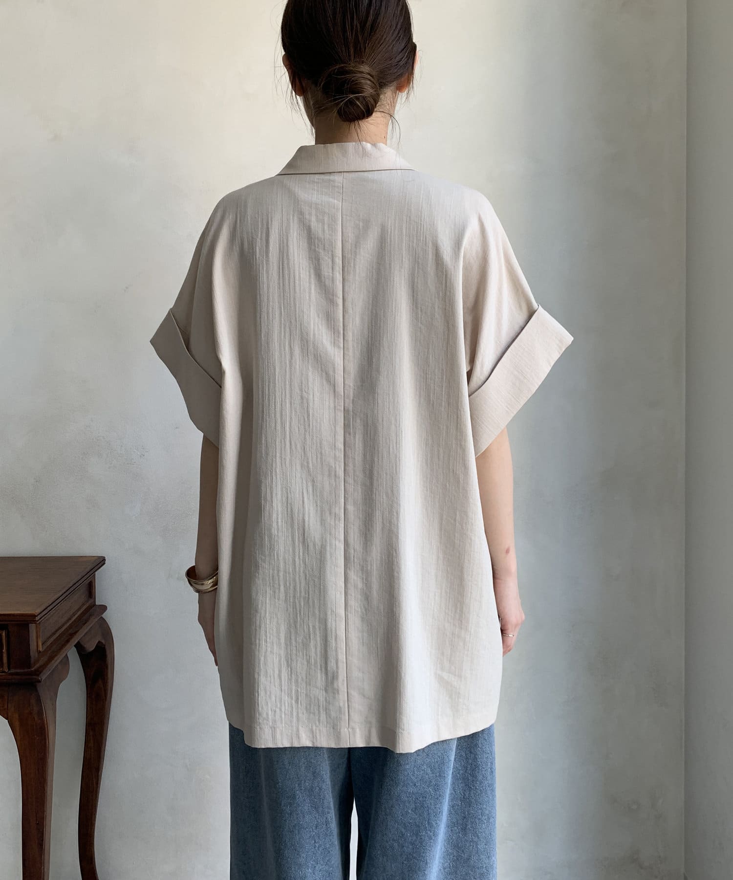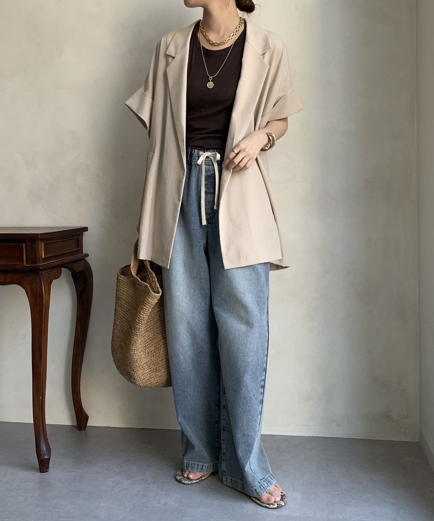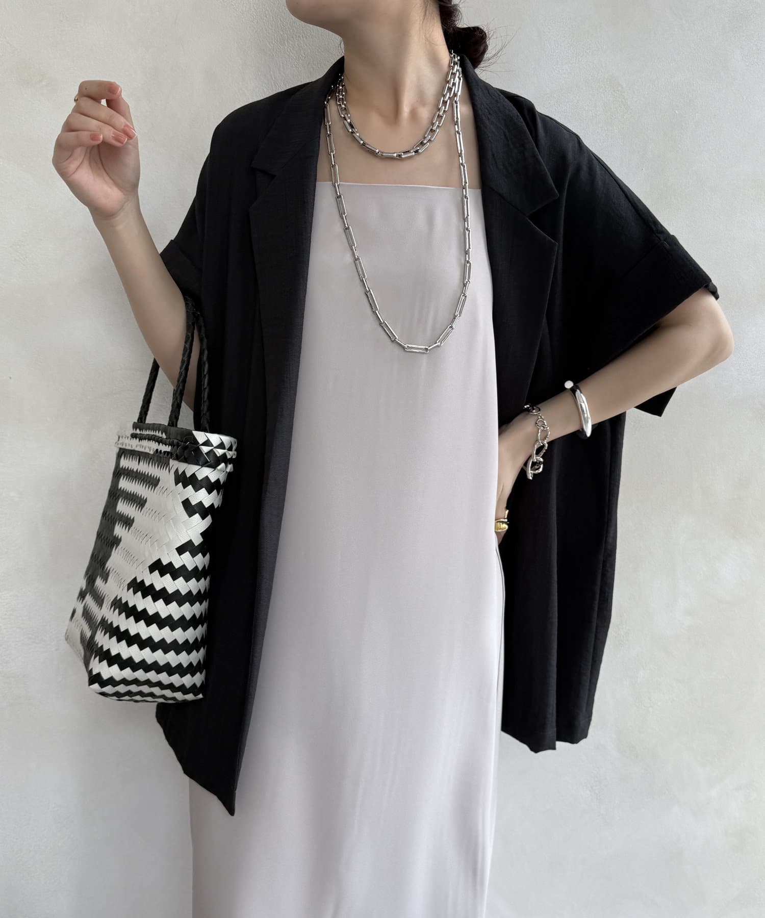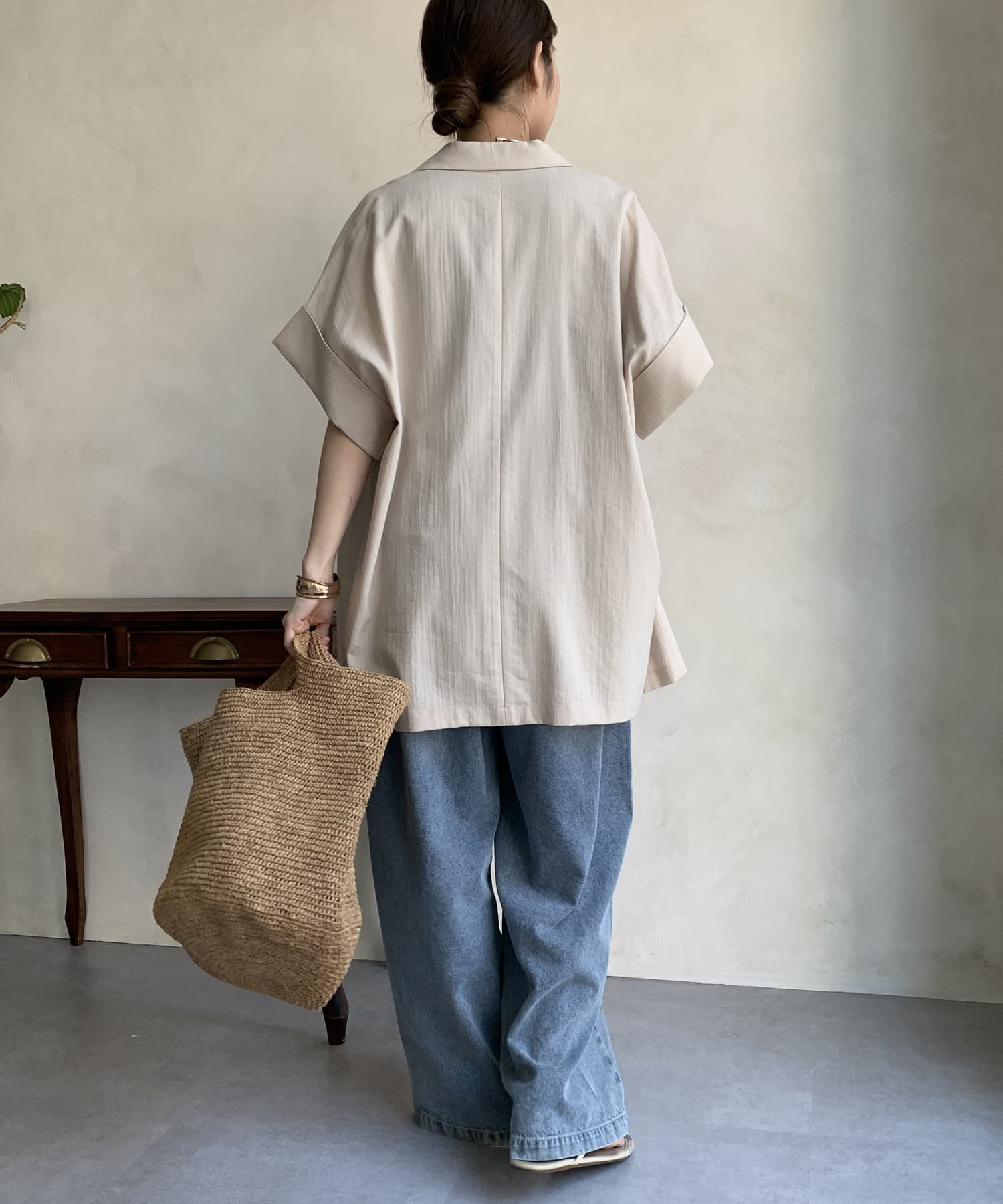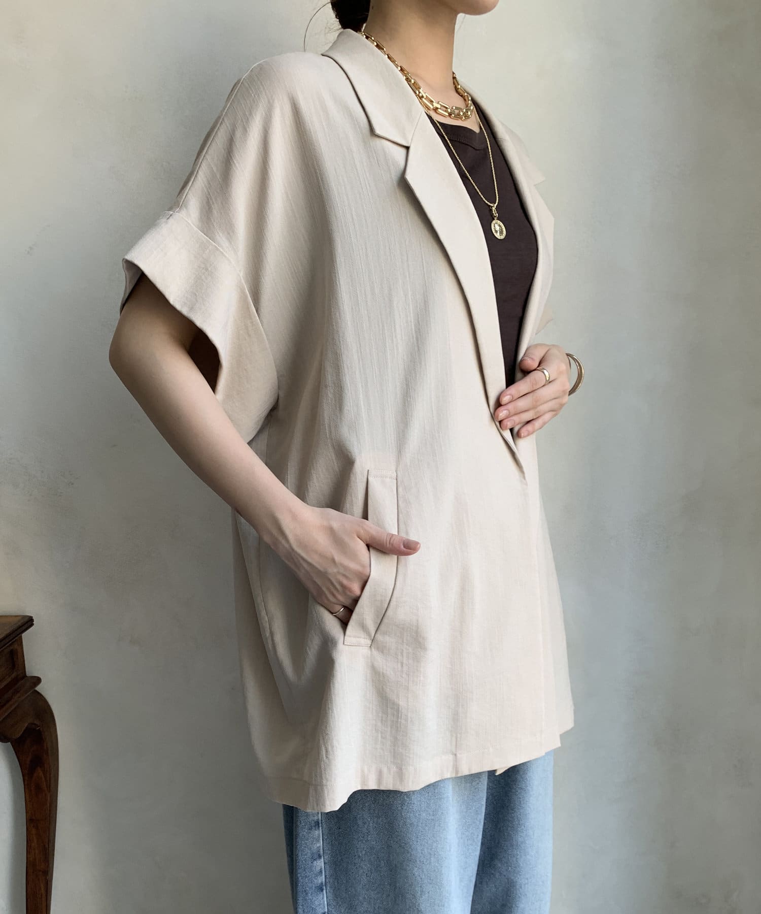 ボタンレスデザインと、かっちり見えすぎない素材感でリラクシーな印象を与えます!