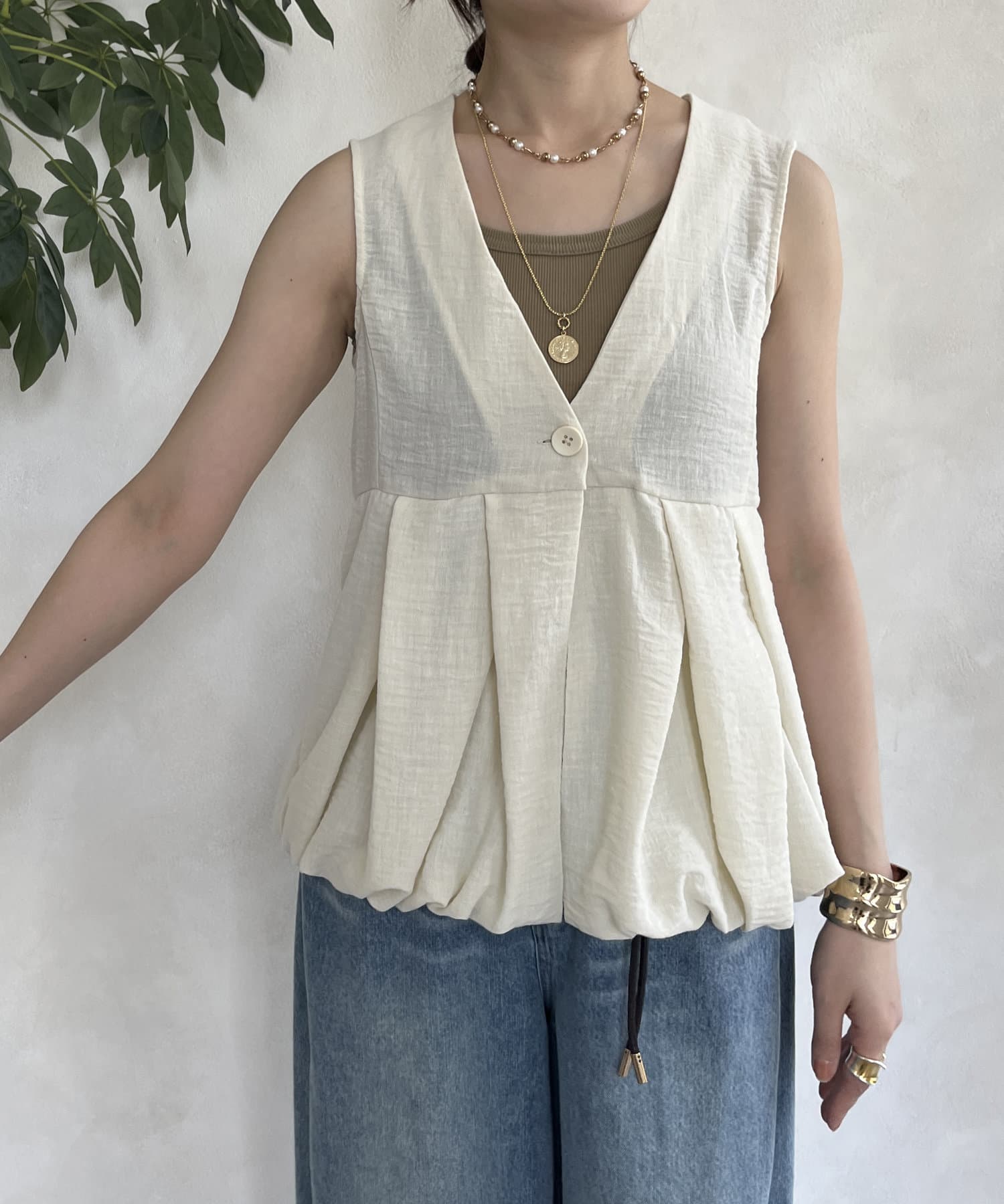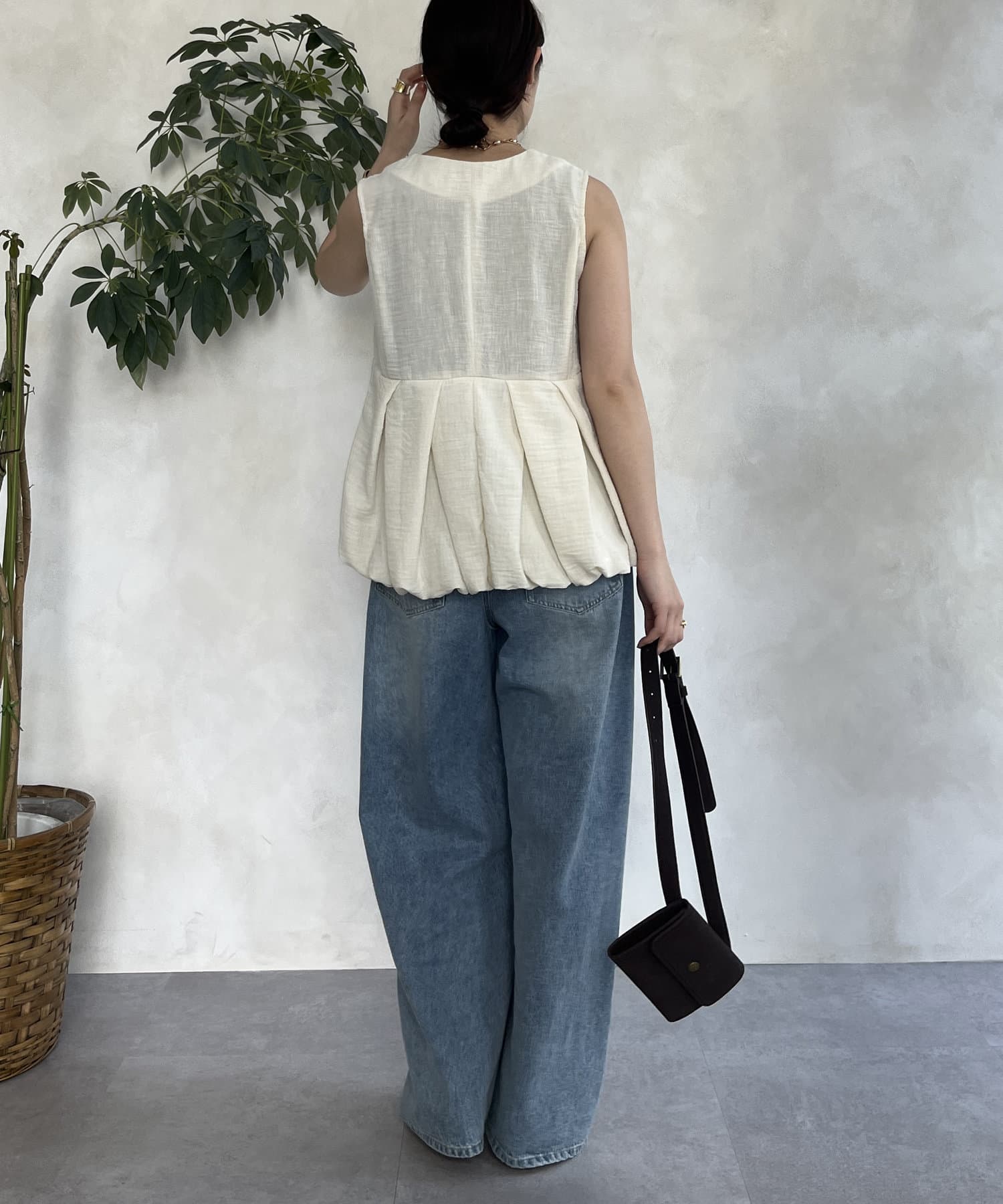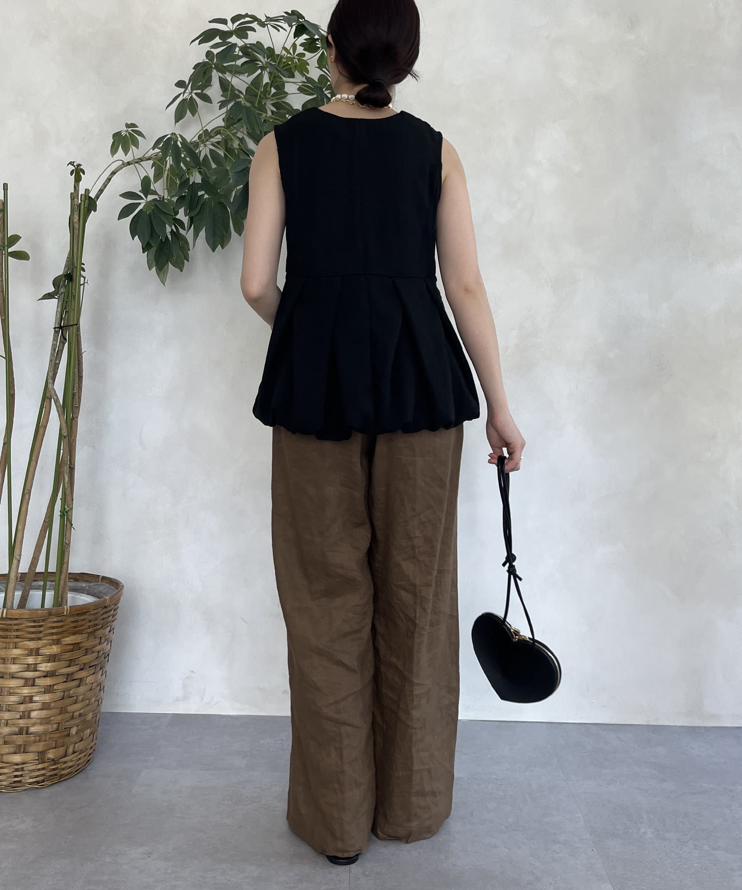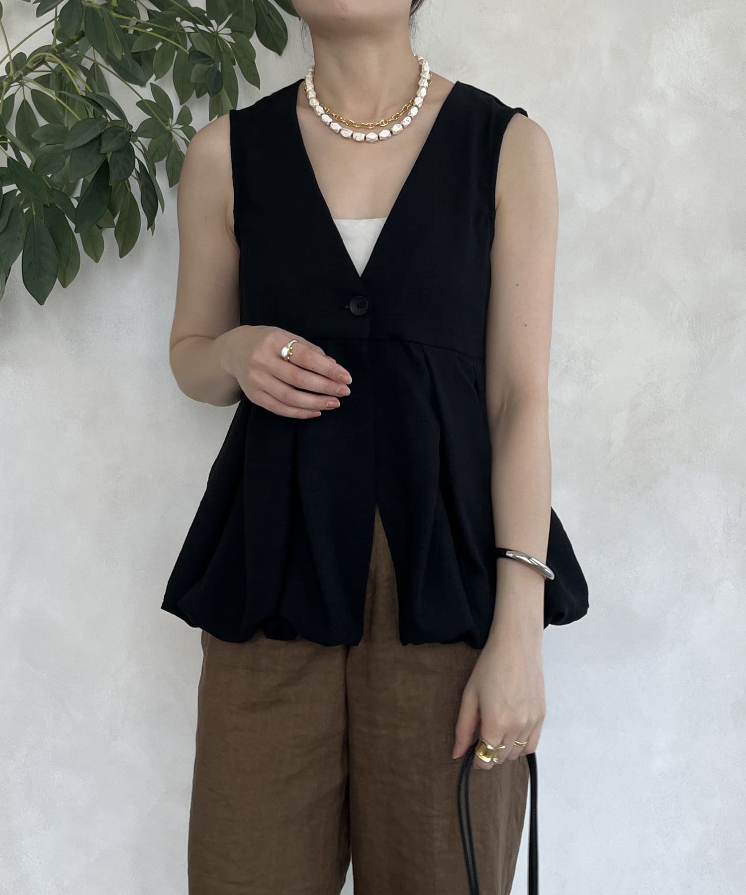 広がりすぎない、上品なペプラムラインなので、大人女子でも気負わず着こなせます。