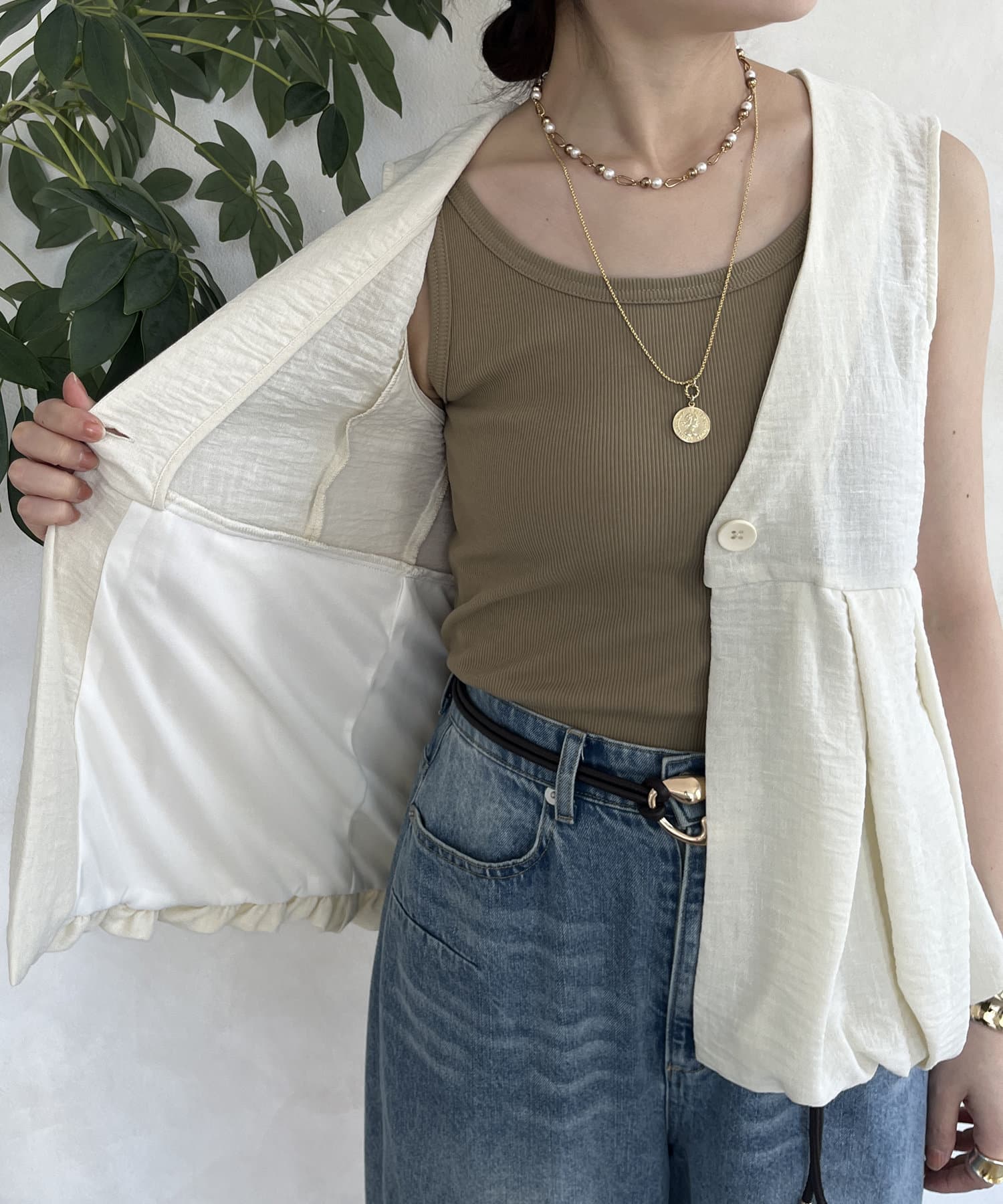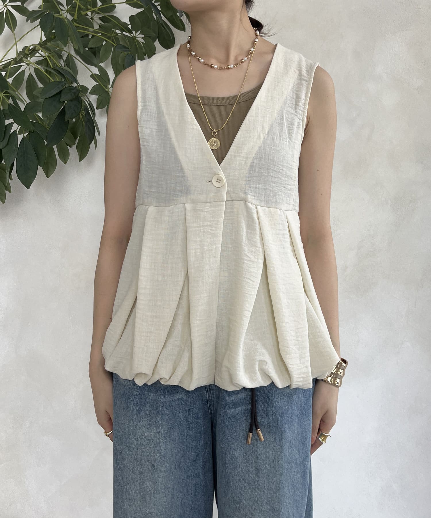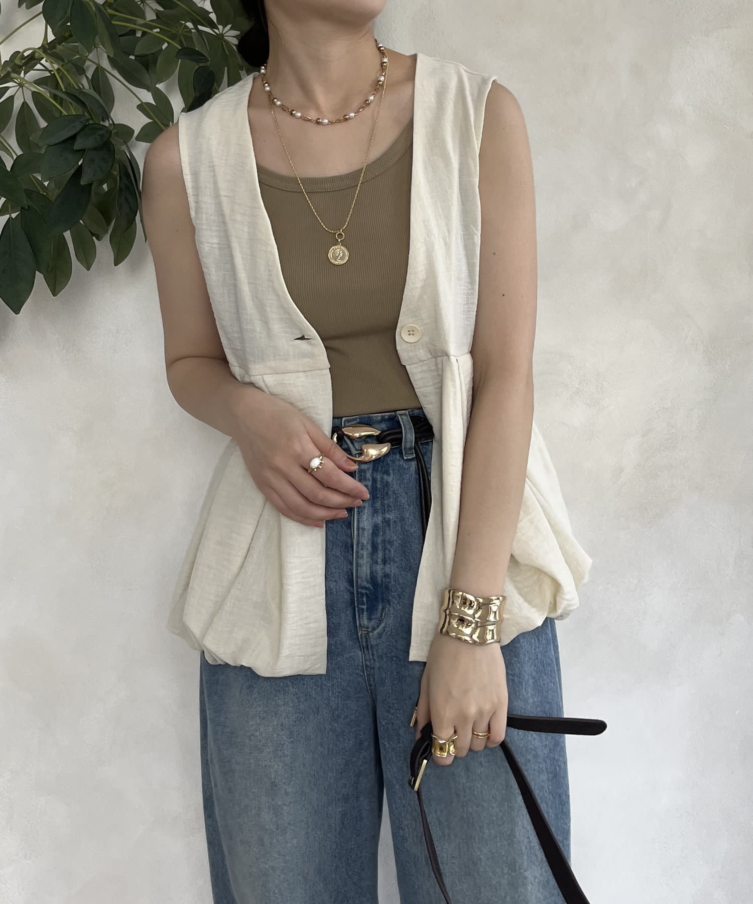 広がりすぎない、上品なペプラムラインなので、大人女子でも気負わず着こなせます。