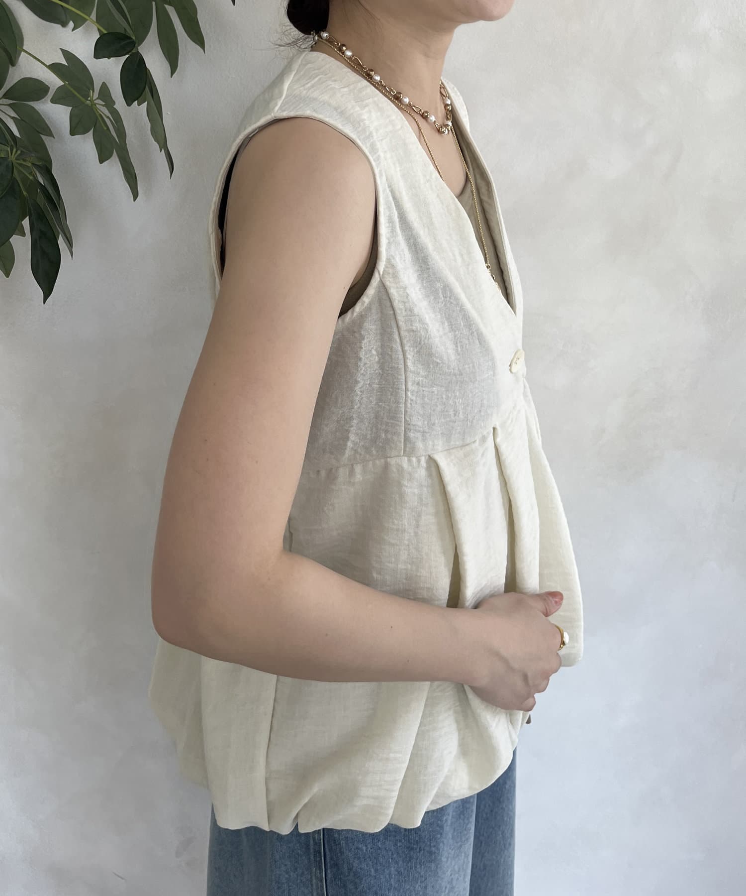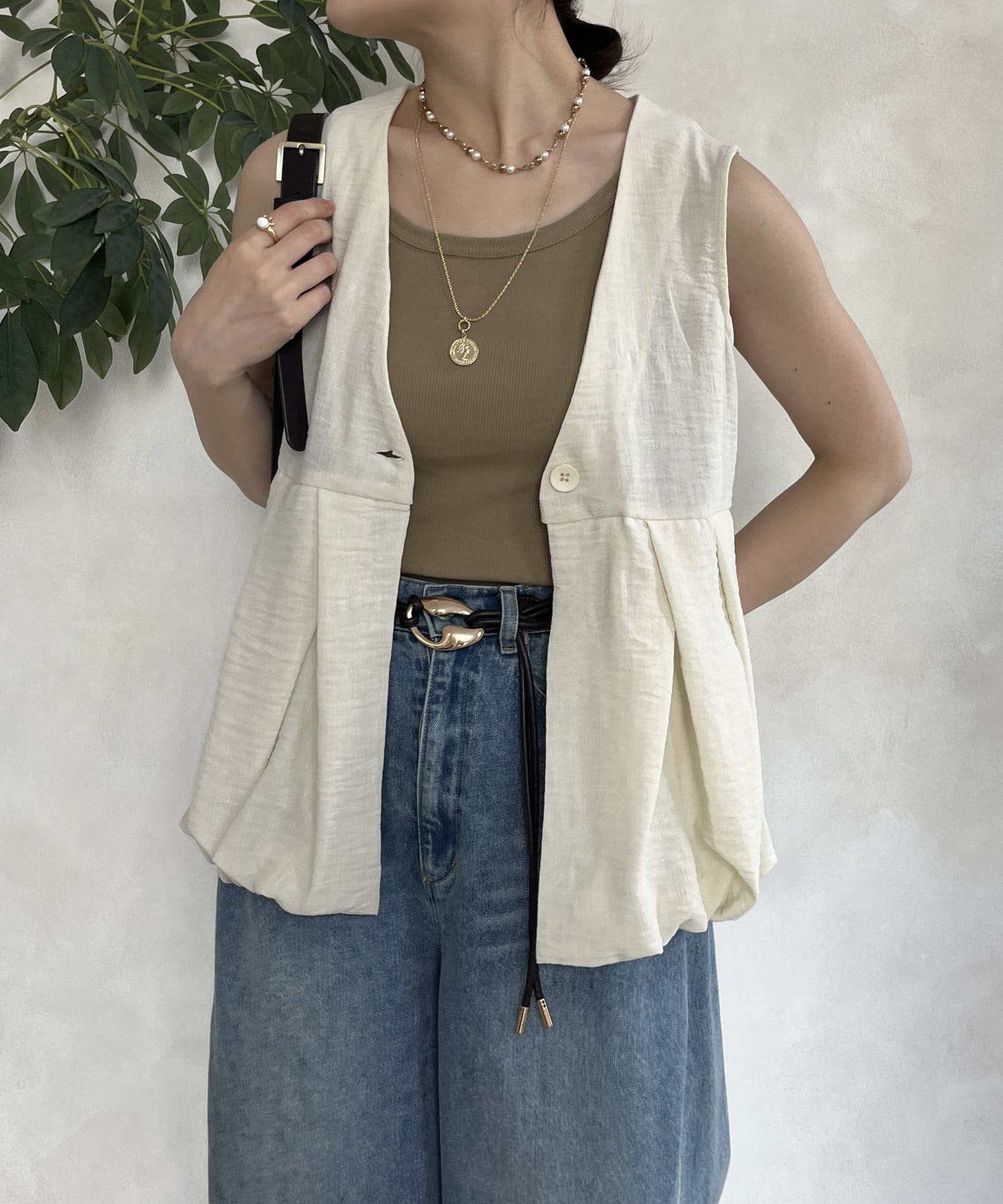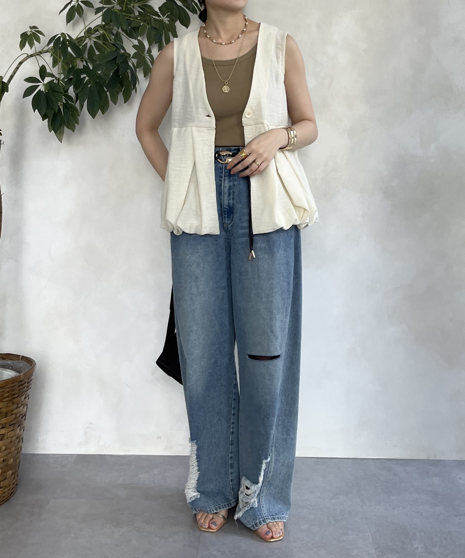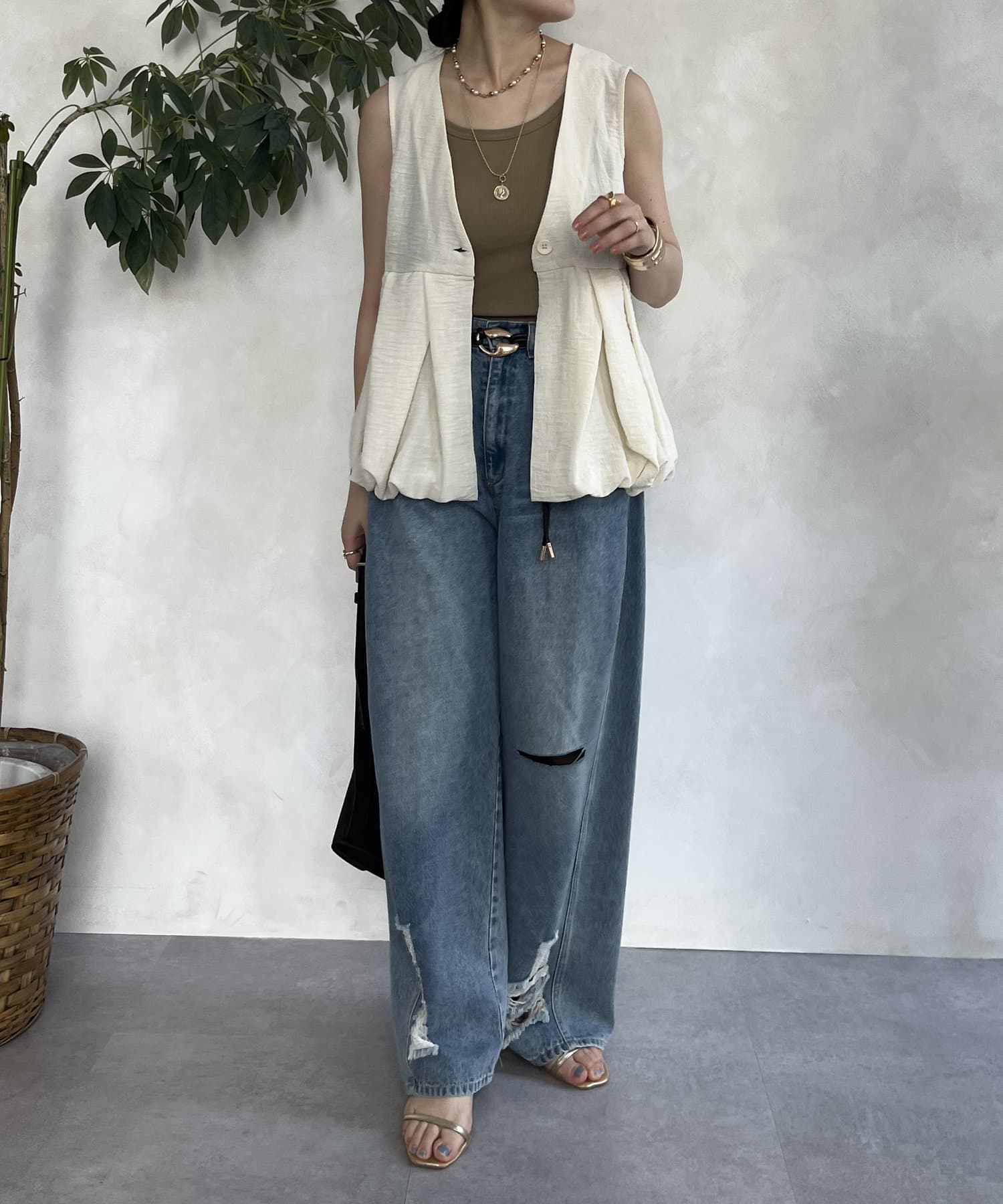 広がりすぎない、上品なペプラムラインなので、大人女子でも気負わず着こなせます。
