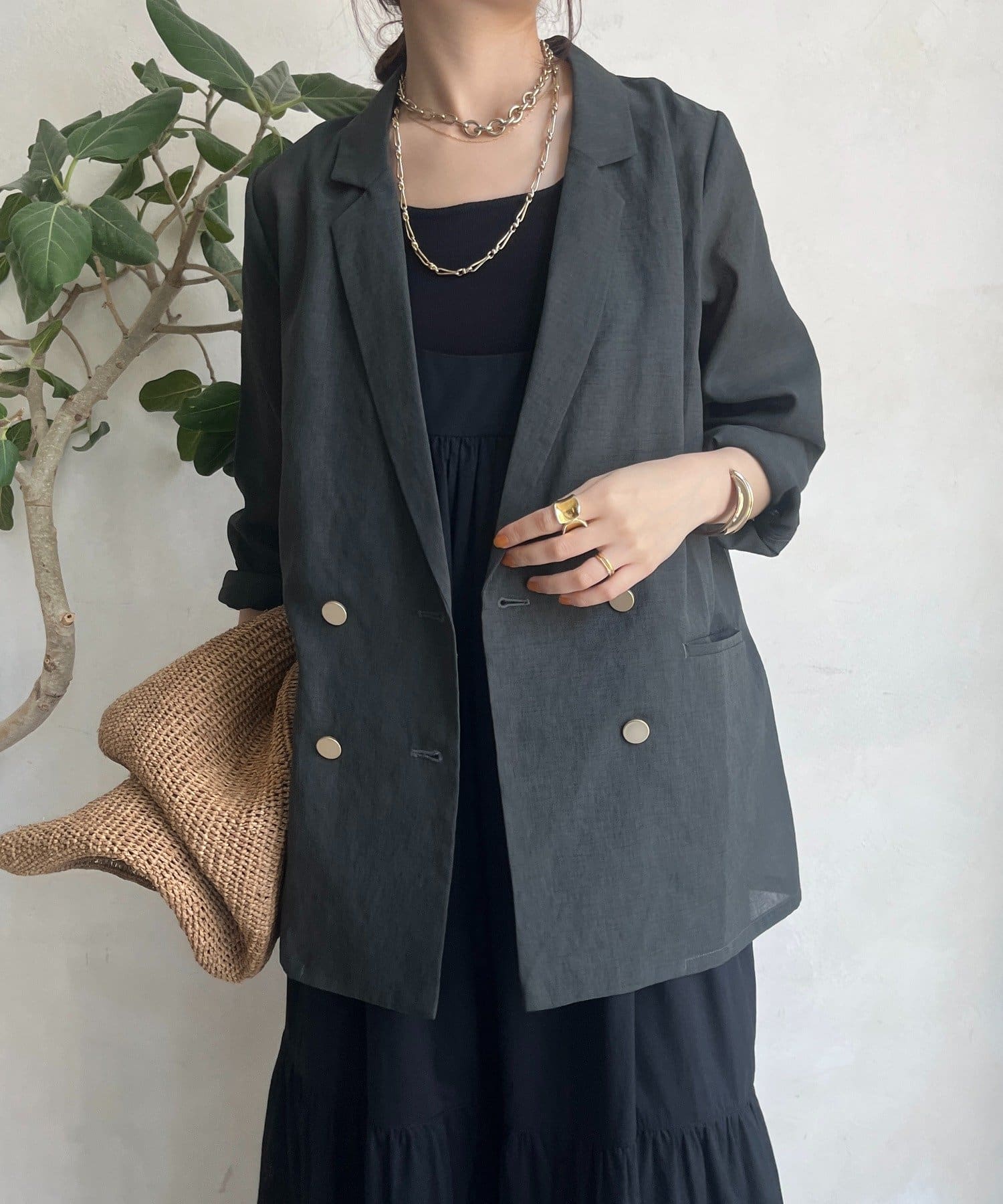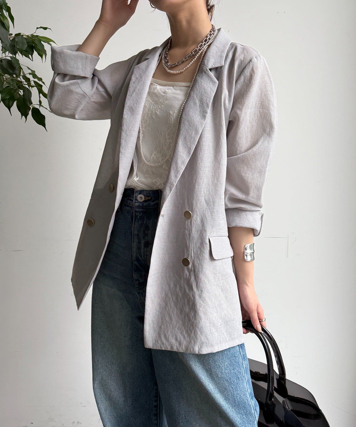 さらりとした風合いが魅力の、ライトフェイクリネンジャケット。