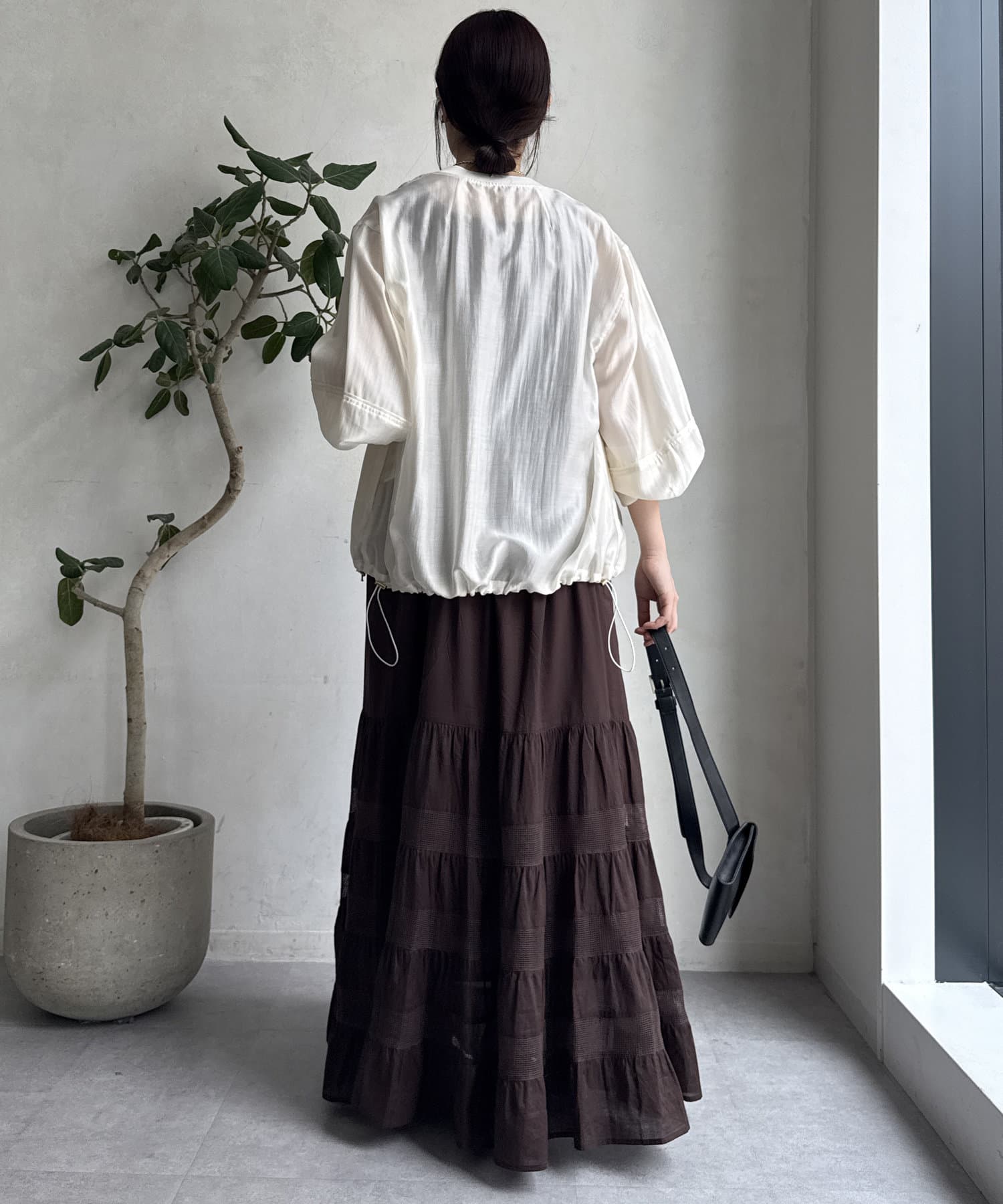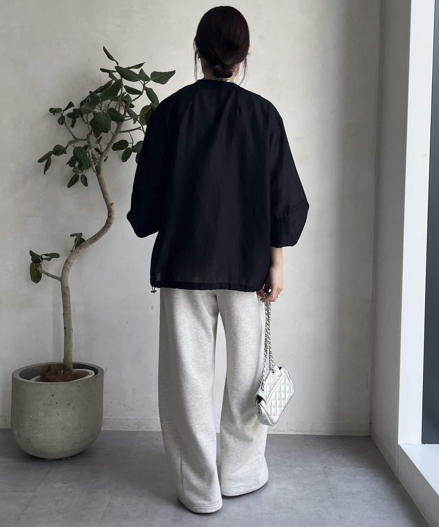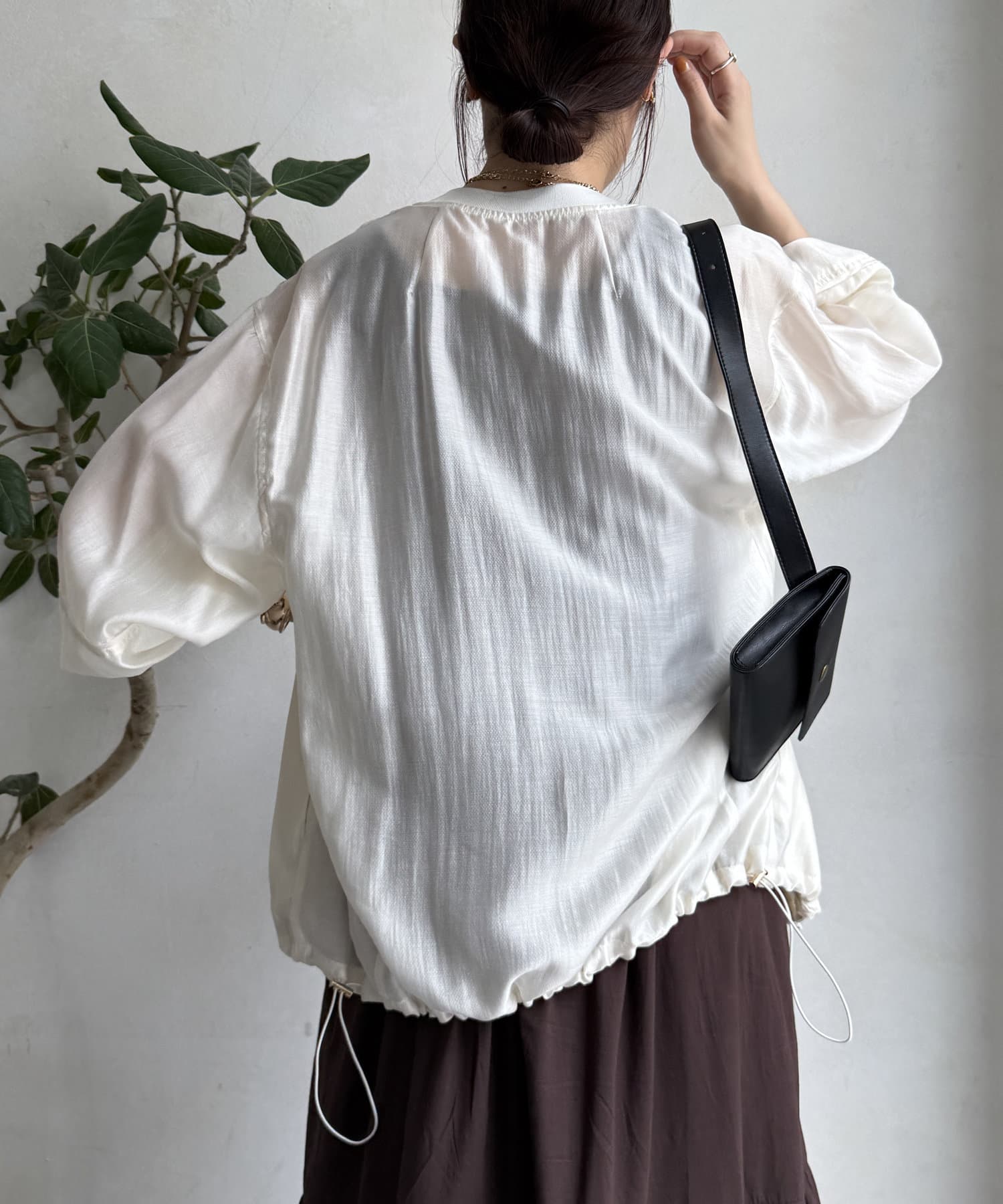 裾部分にはドローストリングが施されており、キュッと絞れば、ふんわりとした丸みのあるシルエットに。