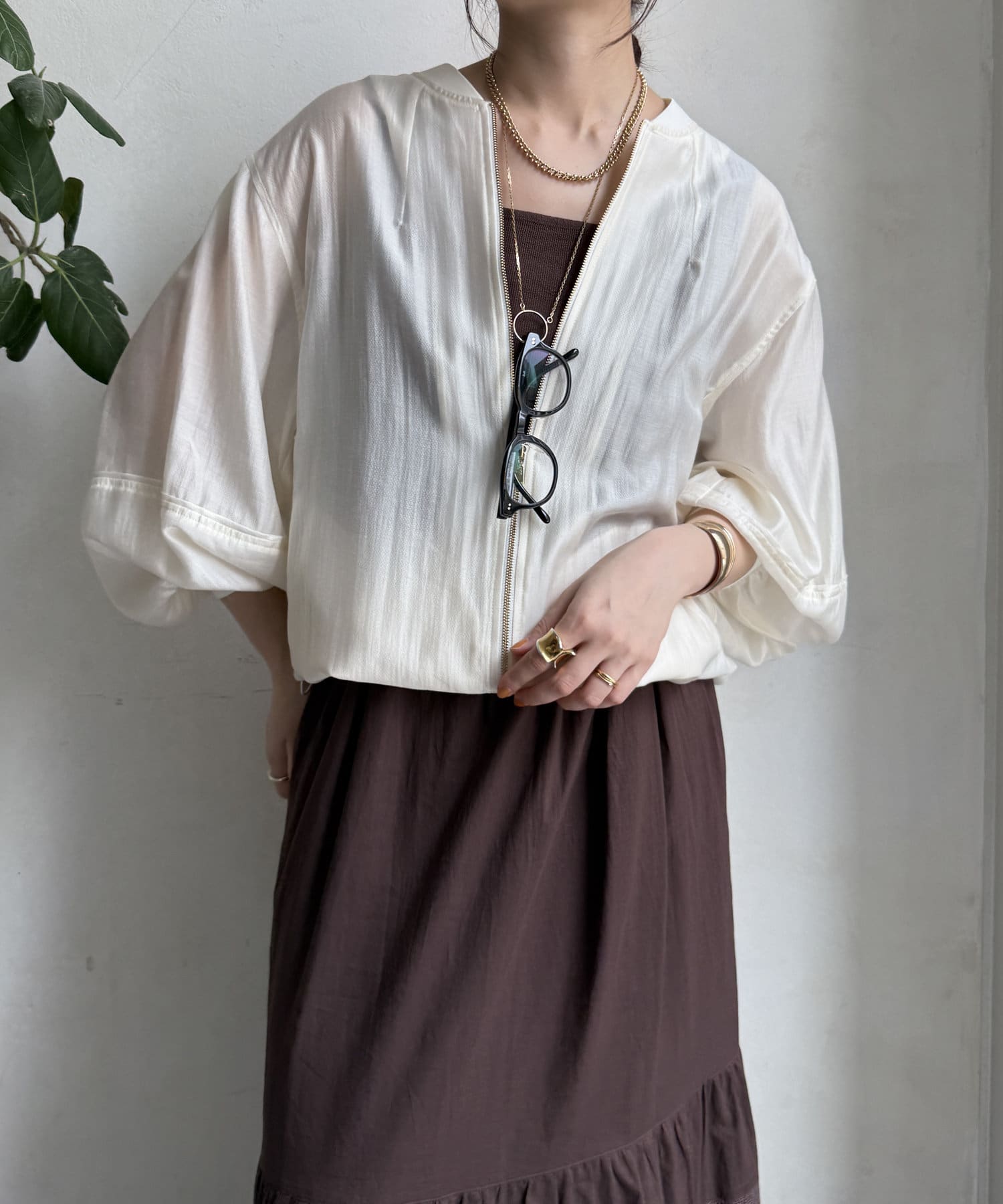 抜け感シアーで、旬の着こなし!シアー裾ドロストブルゾン