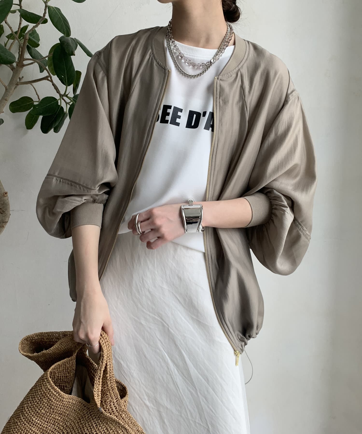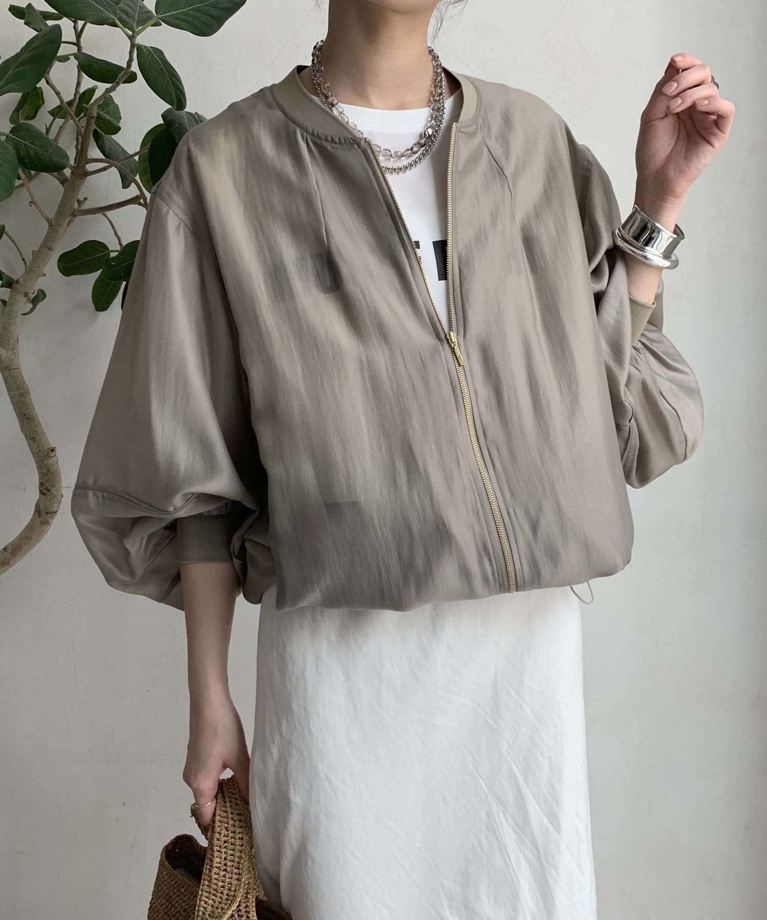 軽くてサラッと羽織れて着心地良いです。ベージュを購入したのですが、ちょっと光沢感のあるお色でとっても素敵です。シアーブルゾンだけど透けすぎないので秋にも活躍しそうです。袖口のゴムがちょっとゴワゴワしてて肌当たりが良くないのが気になったけど…着ているうちに馴染んでくれたら良いなぁ〜。