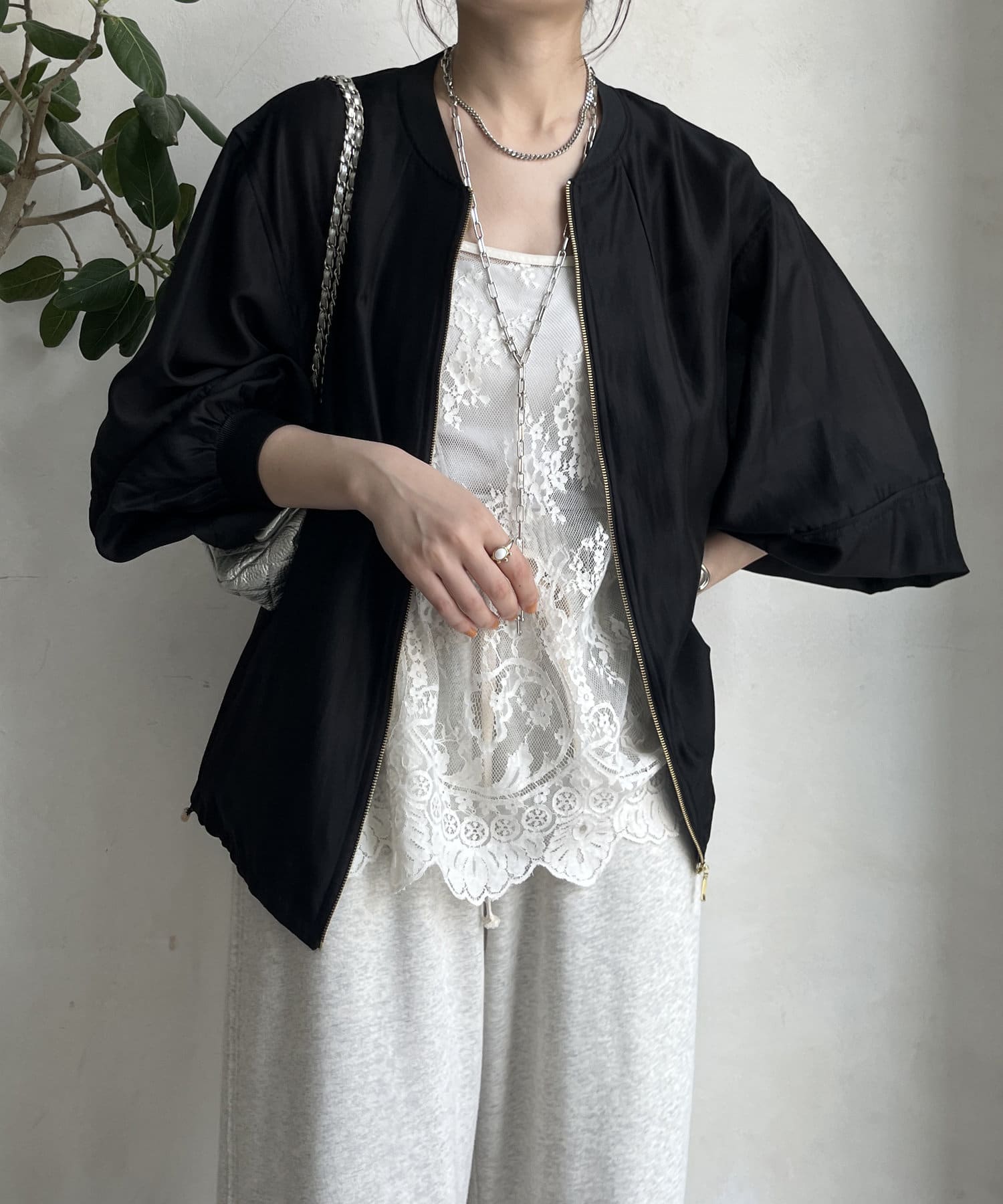 繊細な透け感と、計算されたシルエットが魅力の「シアー裾ドロストブルゾン」