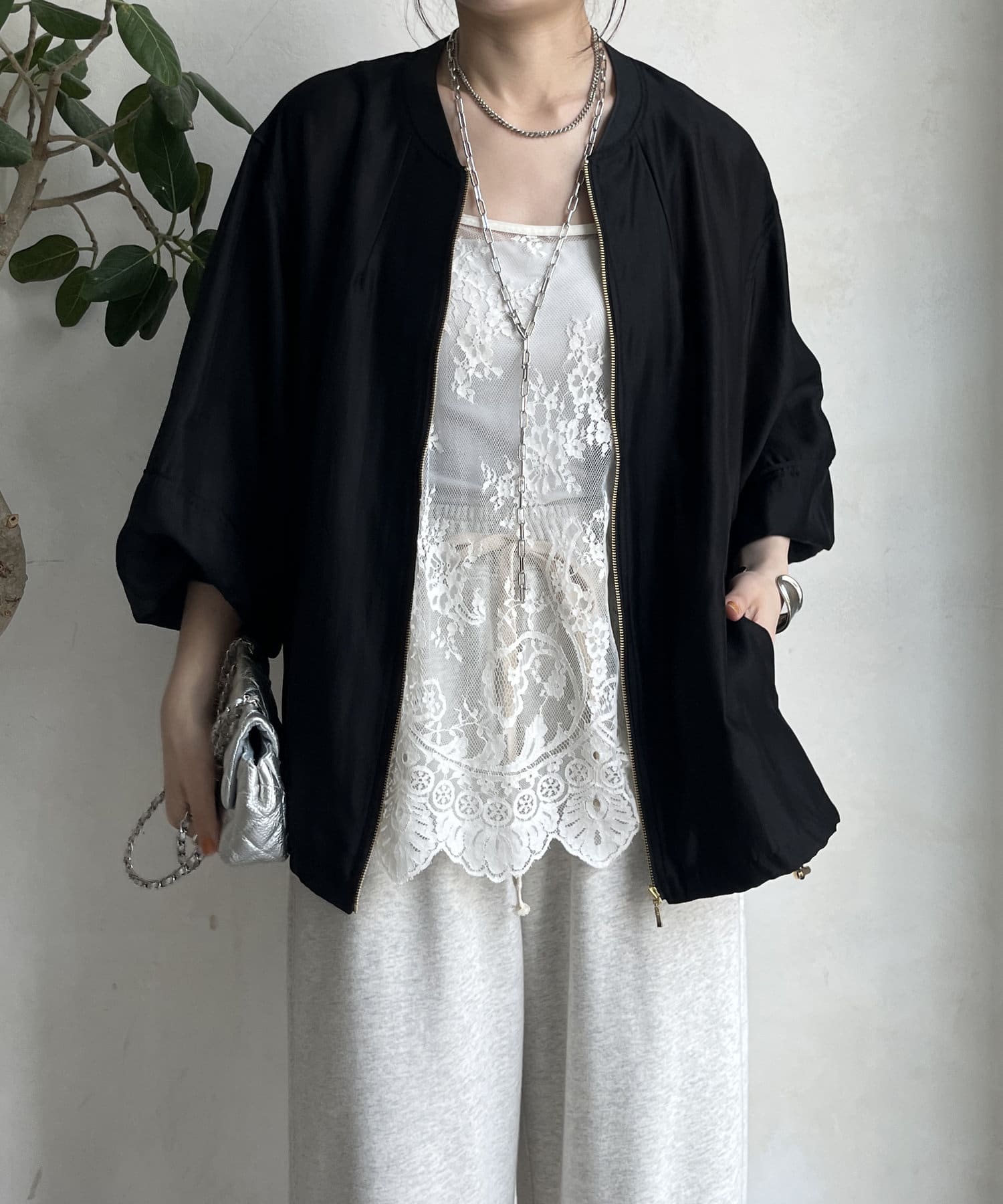 TOP > DOUDOU > レディース > ジャケット/アウター > その他ジャケット/ブルゾン > シアー裾ドロストブルゾン