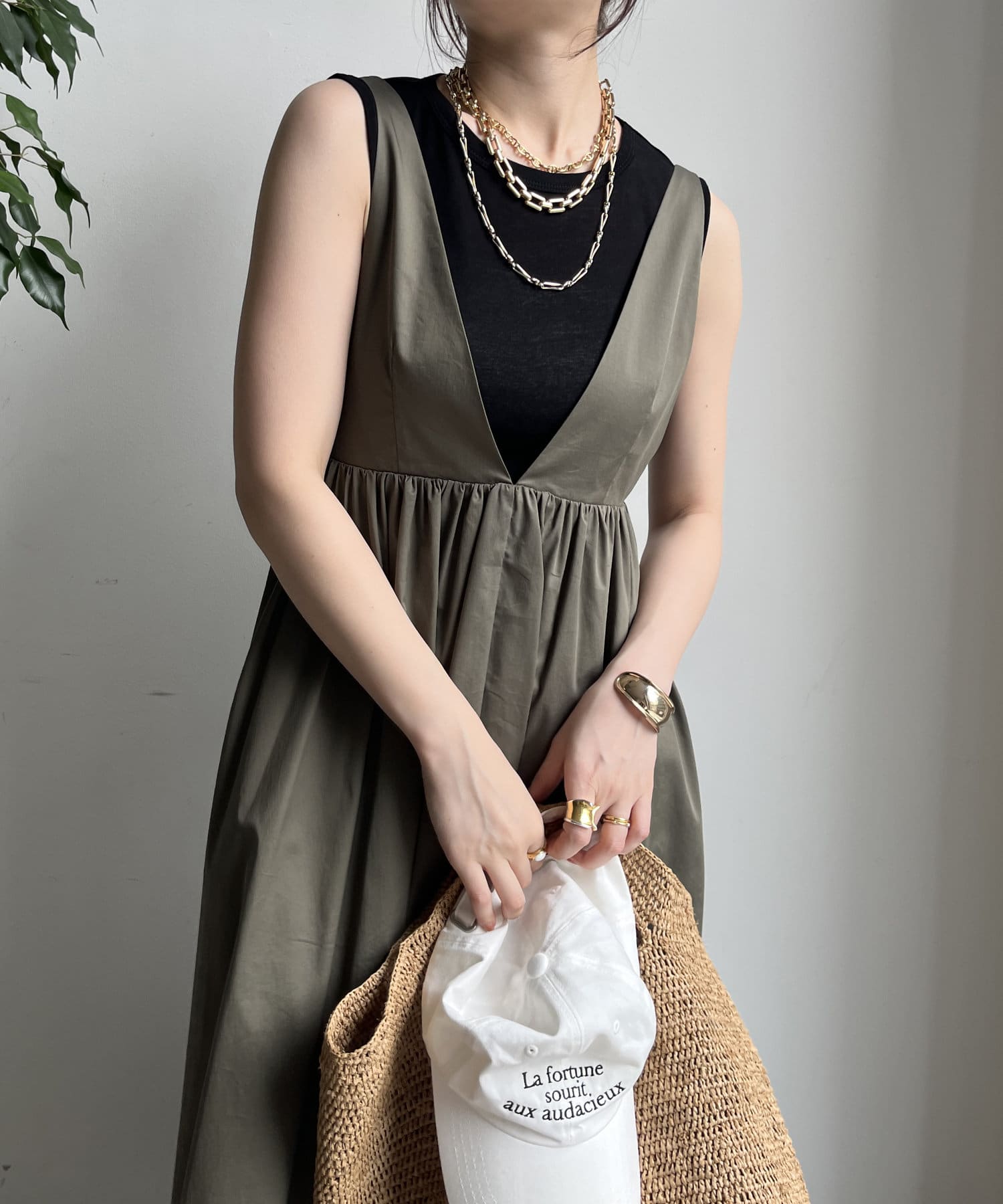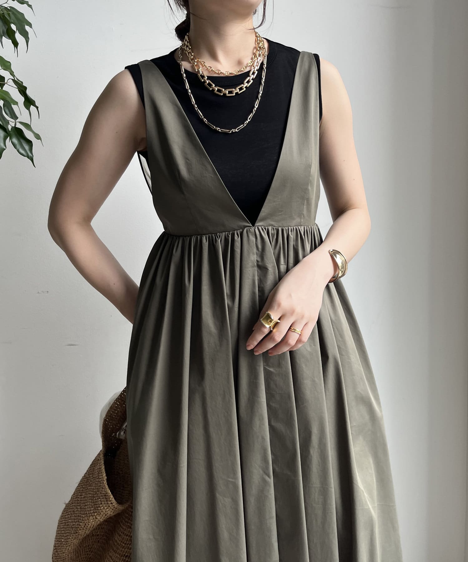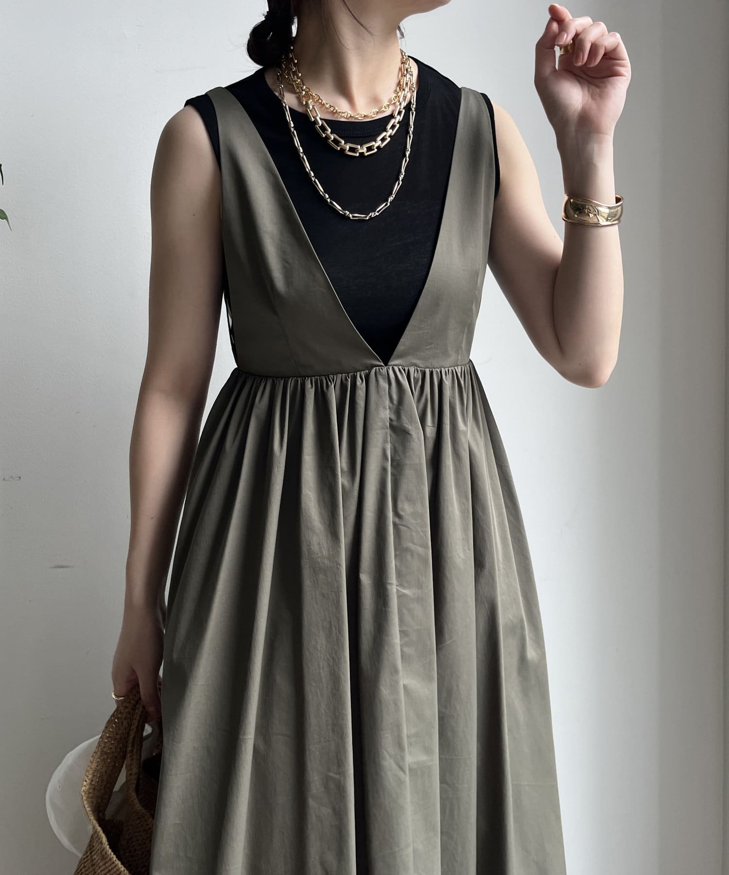 DOUDOU(ドゥドゥ) 深Vタンクボリュームワンピース