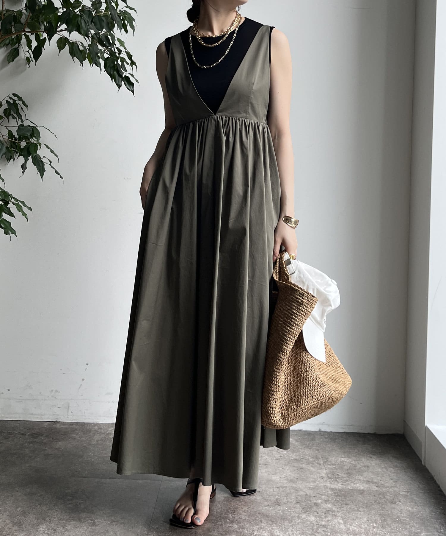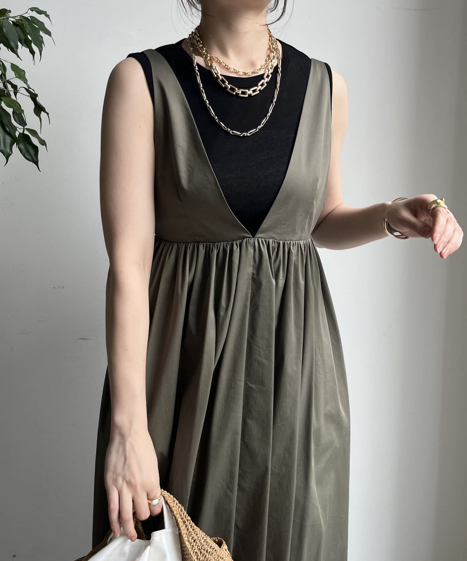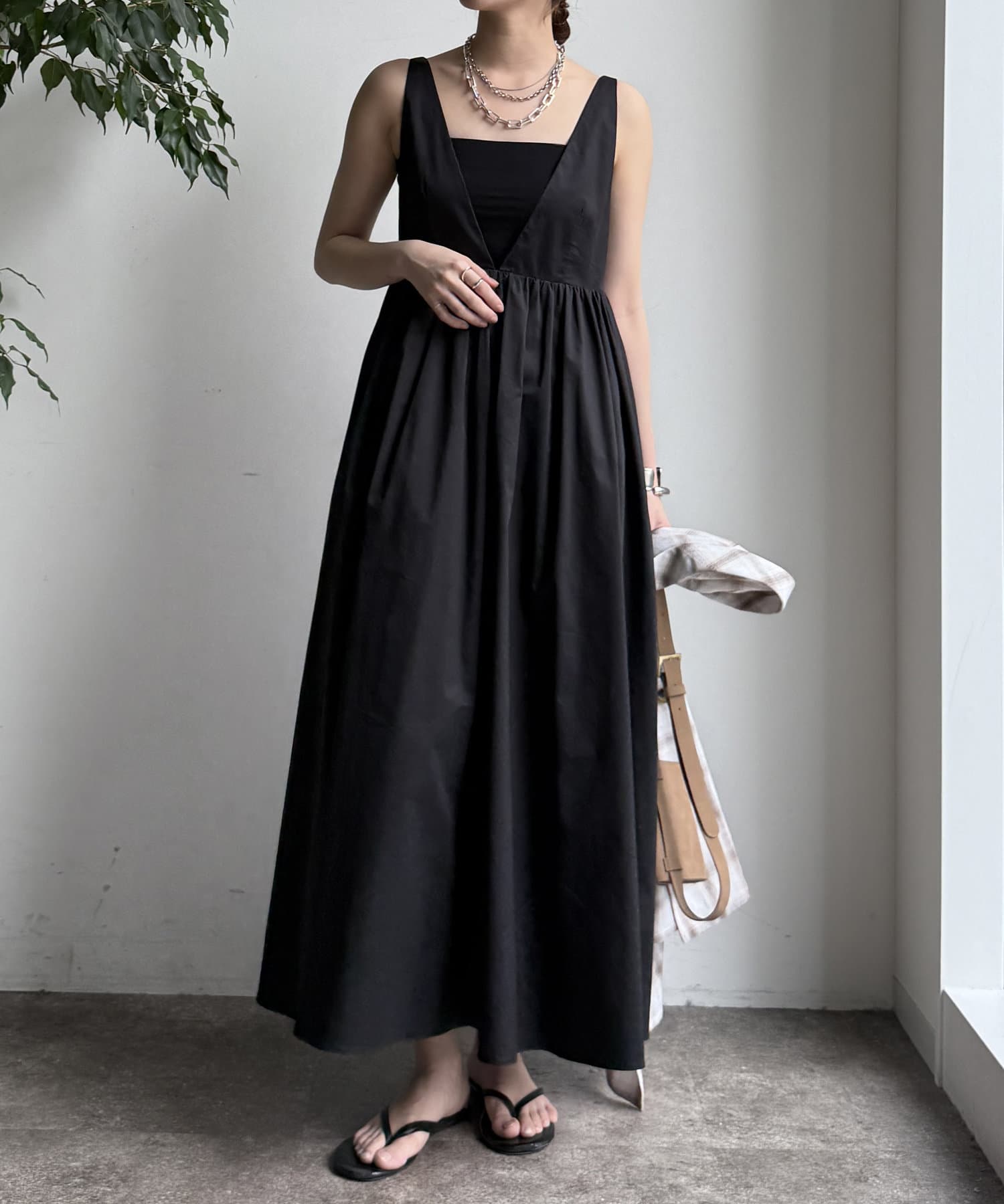 DOUDOU(ドゥドゥ) 深Vタンクボリュームワンピース