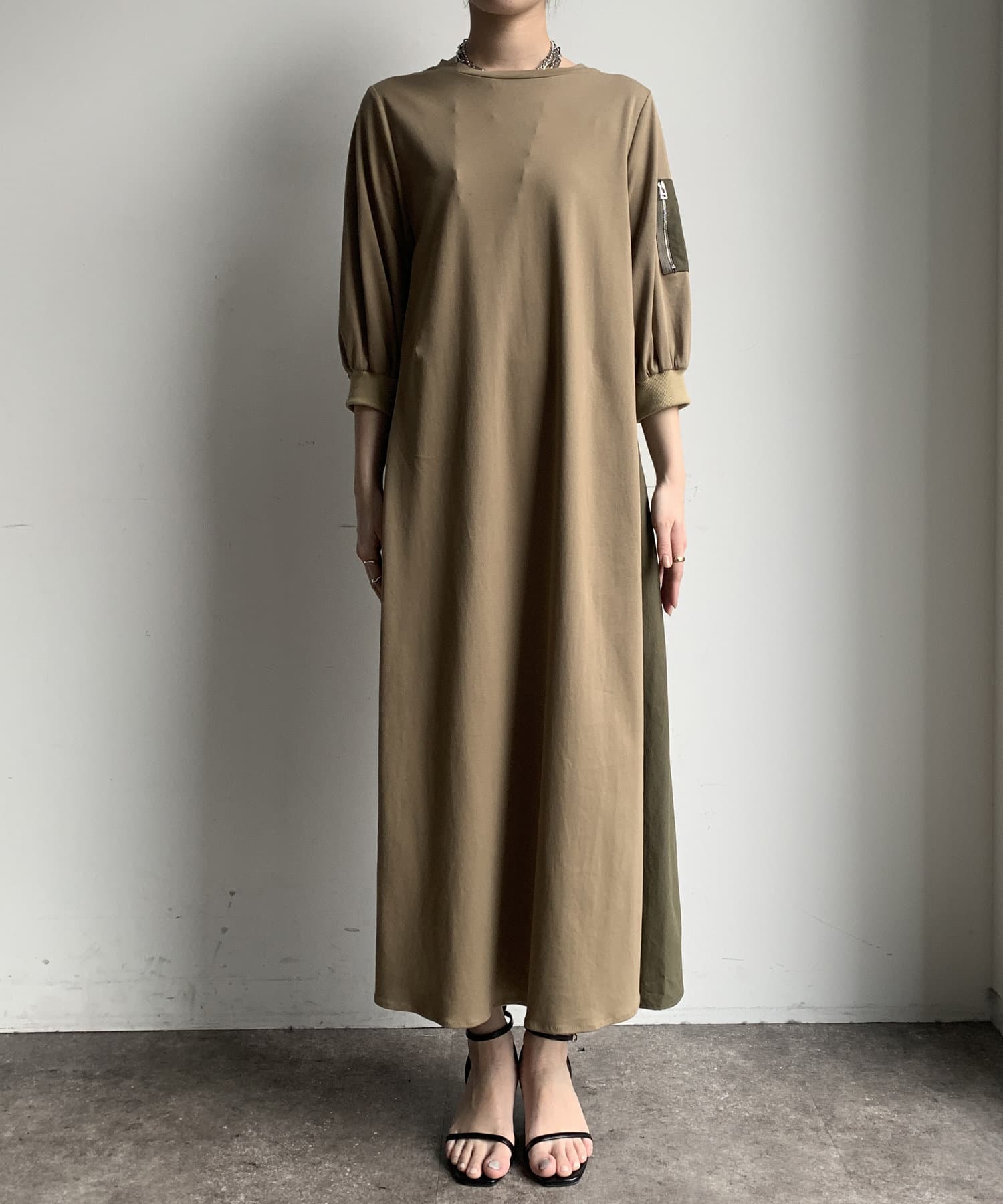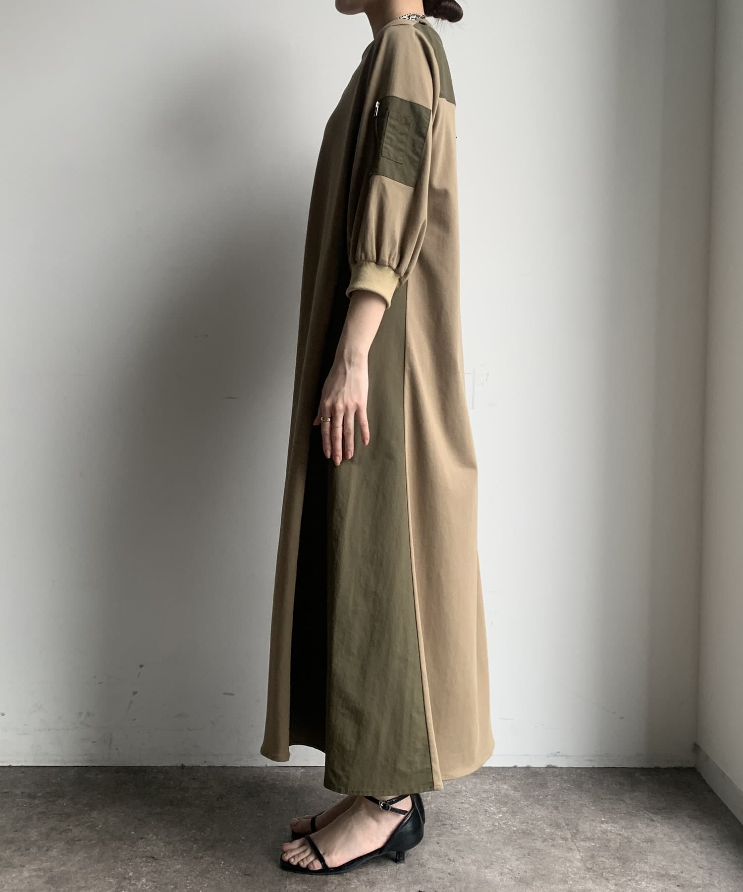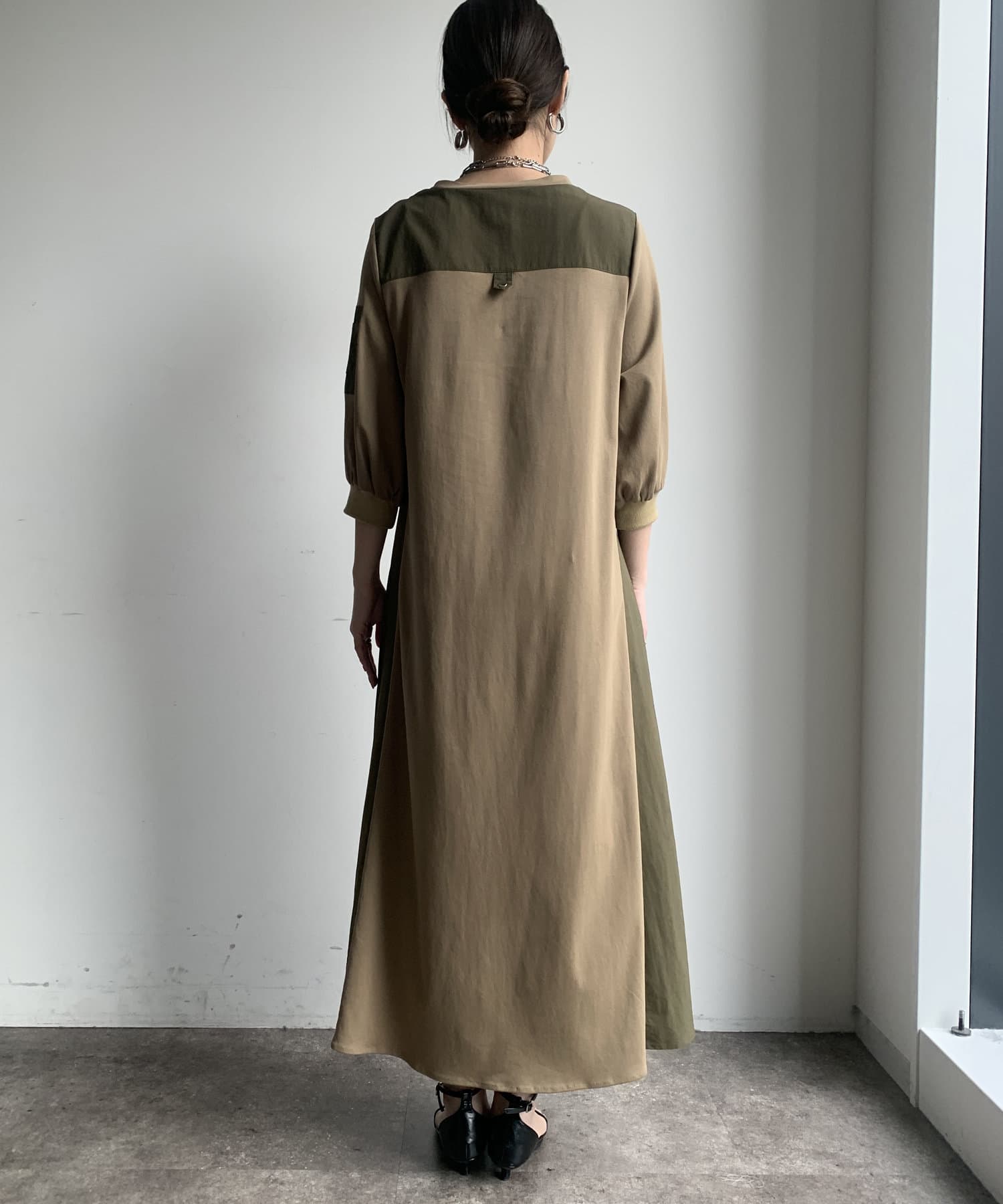 【WEB限定】ミリタリー異素材切替ワンピース