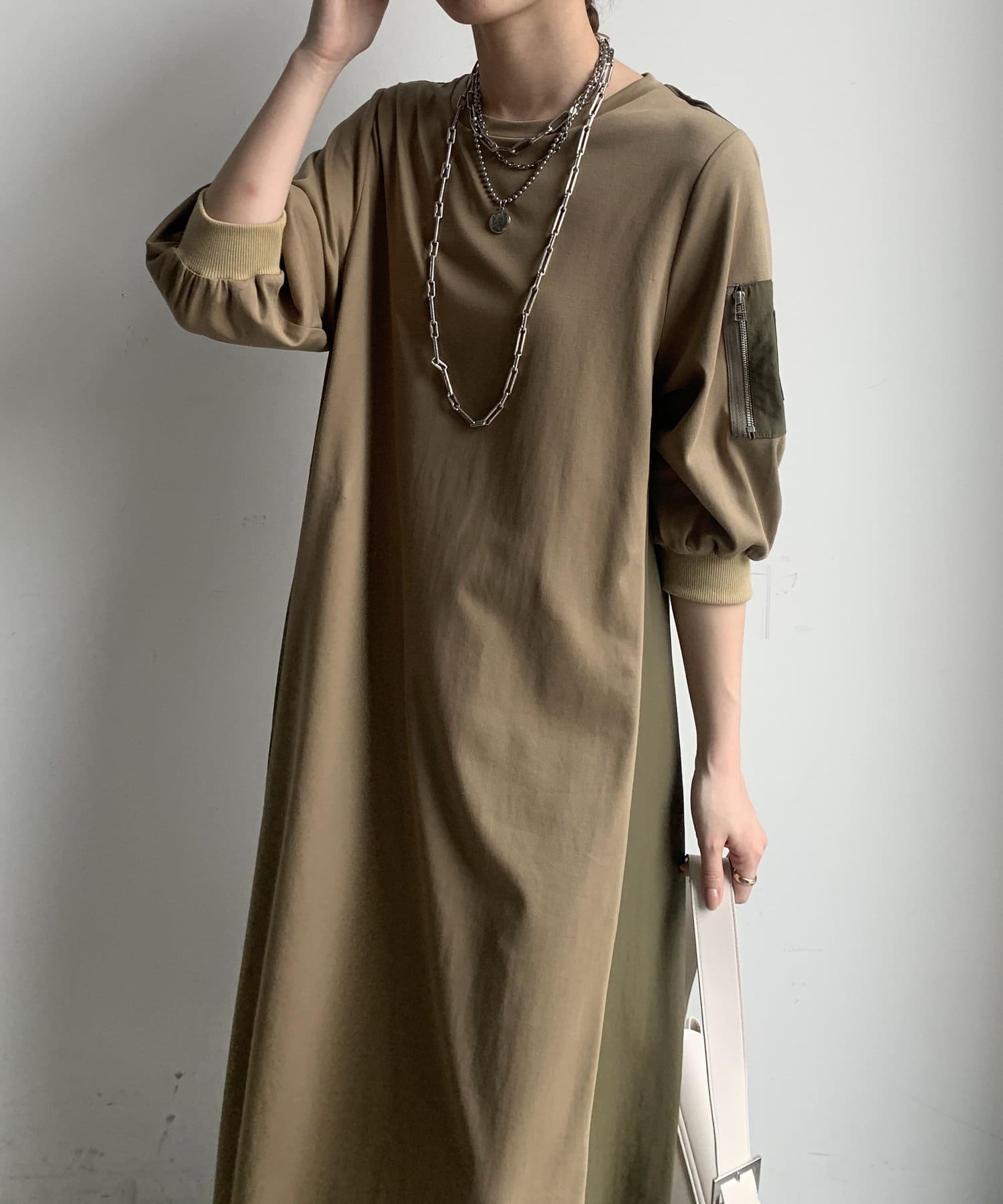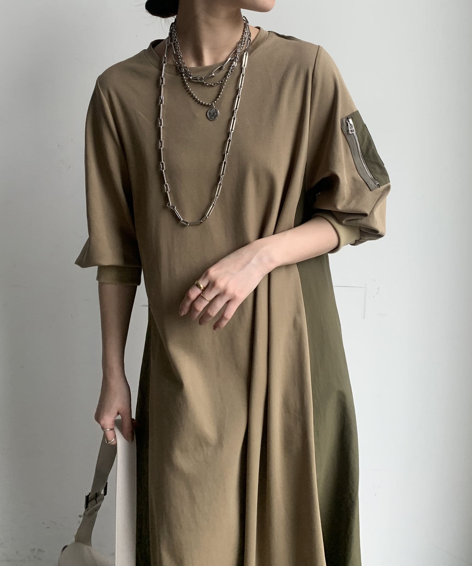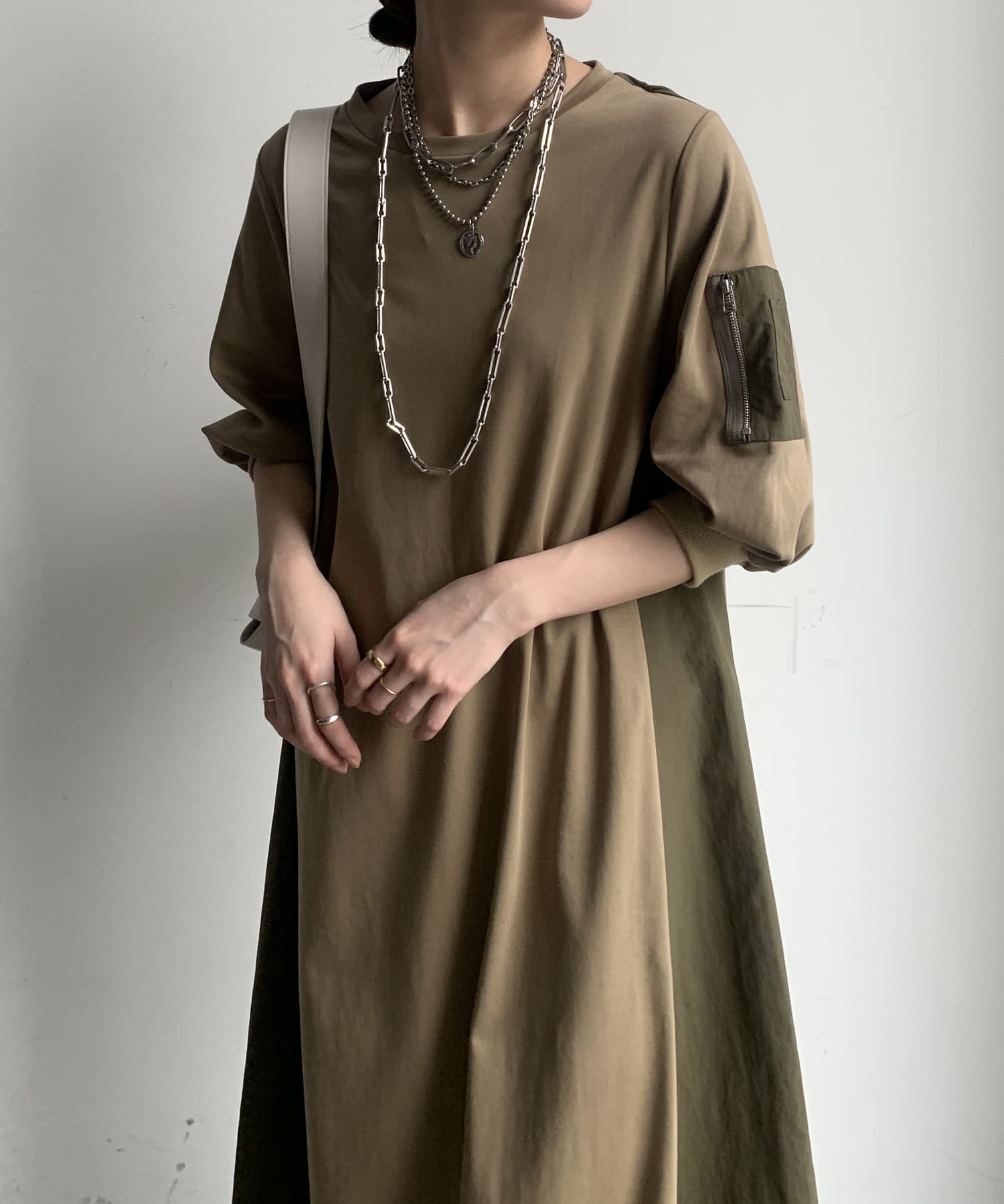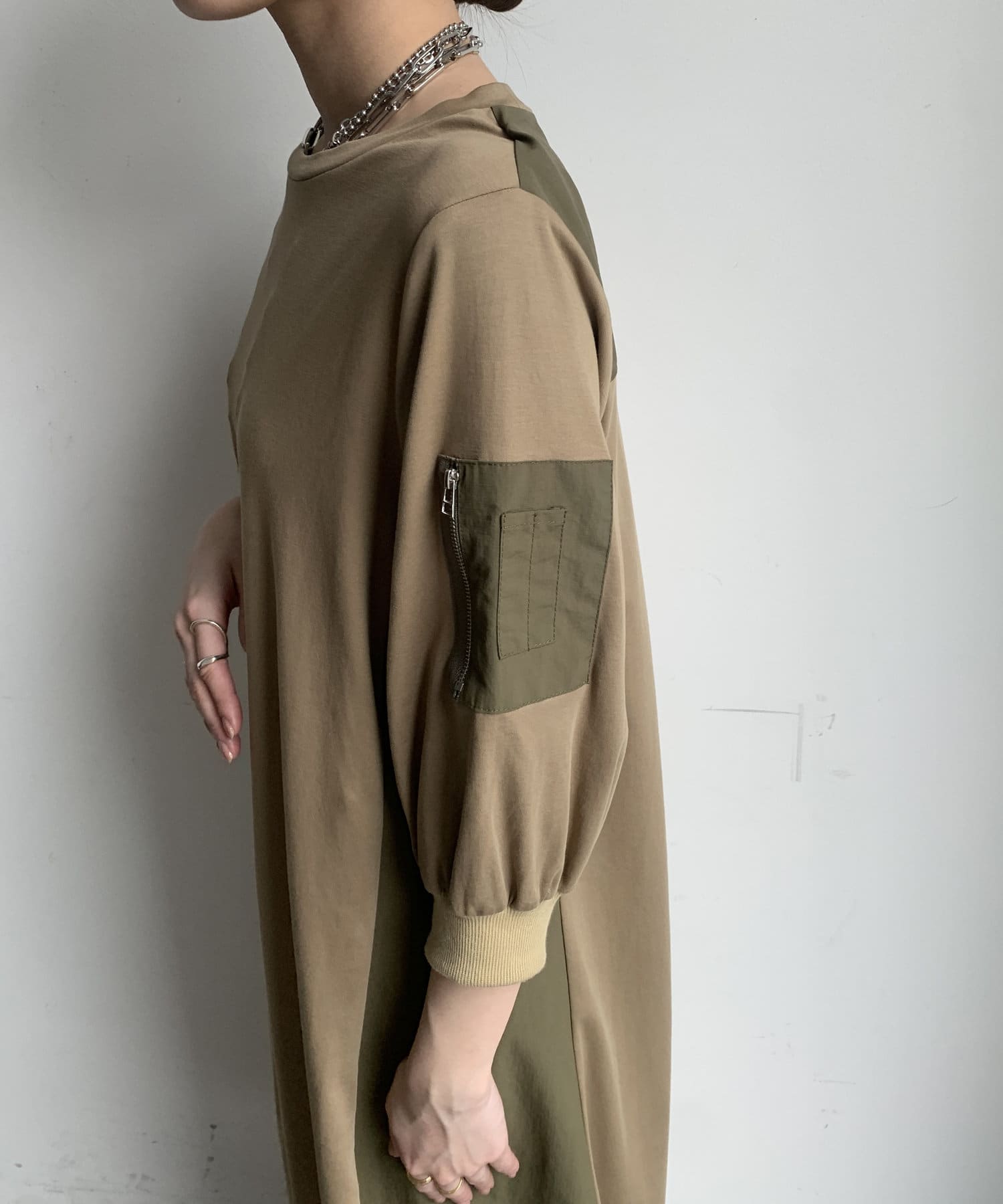 【WEB限定】ミリタリー異素材切替ワンピース